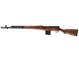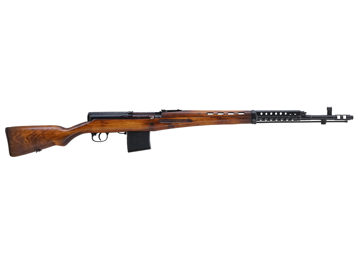 作動方式はショート・ストローク・ピストンによるガス圧利用式で、ティルティング・ボルト方式の閉鎖機構を備えており、モシンナガン小銃と同じ7,62mm×54R弾薬を使用します。 弾薬の装填はマガジン交換の他、モシンナガン小銃用の5発クリップを用いて本体上部から行う事も可能でした。 本銃は使用弾薬の性能や給弾不良等の問題を抱えていた他、モシンナガン小銃に比べて製造コストが高く、更に初歩的な訓練を受けただけの兵士にとっては構造が複雑でメンテナンスが難しい銃でした。 そのため徐々に生産数が減らされ、1945年初頭には生産が終了しました。 SVTには狙撃銃として使用する為、PUスコープを装着出来るバリエーションも約5万挺製造されました。 また、バリエーションとしてフル・オートマチック射撃が可能なセレクティブ・ファイアのAVTが存在しましたが、耐久性等に問題があったため少数の生産に留まりました。