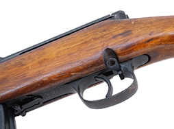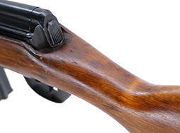 本品は経年の使用感が良い雰囲気のコンディションとなっており、機関部や銃身といった金属部はやや打ち傷や擦れ、錆の跡、一部仕上げが落ちて金属の地肌が表れている箇所が見られますが、全体としては大きな欠損等は見受けられません。 バット・プレートは一部が地金っぽくなっているのが目立ちますが、経年を鑑みれば十分良い状態と言えます。 木製の銃床は、セレクターの両面に刻まれたAVT40用のストックとなっており、ストック右側面印はAVT用を示す「A」のマーキングがやや薄くなっていますが確認できます。 細かな打ち傷や線傷が見られる他、角の部分等に僅かに欠けが見られる他、左側面のアッパー・ハンド・ガードとの接触部、右側面のコッキング・ハンドル付近の修復の跡が見られますが現状馴染んでいます。 アッパー・ハンドガードは少々がたつきがありますが、勝手に脱落してしまうことはありません。 リア・サイトの調整やマガジンの着脱については問題なく行う事が可能です。 付属のマガジンについは本体とコンディションが揃っている印象で、多少の打ち傷や擦れ、若干の表面錆が見られるものの、現状目立った凹みや変形等は見受けられません。