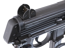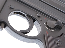 ドイツのワルサー社が1950年代末に開発した短機関銃で、イタリアのルイギ・フランキ社が開発したLF57等と同様のプレス製レシーバー及びL字型ボルトを備えています。コッキング・ハンドルはボルトと独立しており、射撃中に前後しない構造となっている他、セーフティを兼ねたセレクター・レバーは左右どちらからでも操作可能なアンビ・タイプです。ワルサーMPシリーズは銃身長の異なる二つのモデルが生産され、銃身長の長いモデルがMPL、ショート・モデルがMPKと呼ばれます。本銃は戦後のオープン・ボルト式短機関銃としては後発で比較的高コストだった事もあり、競合するHK社製のMP5等にシェアを奪われ、大規模な採用はありませんでした。しかしながら一部ではその高性能が評価され、限定数が西ドイツ警察やメキシコ海軍を始めとする諸外国で採用されました。また、ワルサー社と提携関係があったフランスのManurhin社でもライセンス生産が行われました。 Manurhin社でのライセンス生産品には、機関部左側面にはそれを表すマニューリン社のメーカー・ロゴの他、「MPL MANURHIN MULHOUSE (France)」の刻印が入っています。 MULHOUSEはドイツとフランスの国境の街で、銃本体にはドイツのプルーフ・ハウスの刻印が打刻されています。 (KK Updated)
