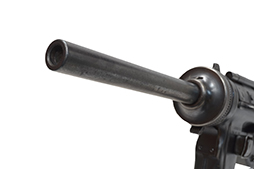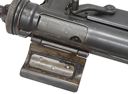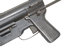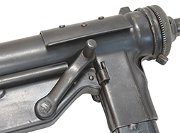 M3短機関銃は元々生産性が高く単純な構造の短機関銃として設計されましたが、その後さらなる構造の簡略化を目指して、改良型が開発される事となりました。 1944年4月に改良型のプロトタイプであるM3E1と呼ばれるモデルがテストされ、同年の12月21日にM3A1短機関銃として採用されました。 M3A1短機関銃では、コッキング方式がクランク式からボルトに直接指をかけて行う方式に変更されました。 その為、エジェクション・ポートがM3に比べ1.5倍ほど長くなり、容易に判別が可能です。 またM1カービンと共用の筒型オイラーの使用を廃し、グリップ内にオイラーを内蔵しています。 ワイヤー・ストックについても改良が行われ、銃身取り外し時のレンチやマガジン・ローダーとして使用する事が可能となりました。 合計606,694挺が生産されたM3短機関銃に比べ、改良型のM3A1短機関銃は第二次世界大戦中にガイドランプで15,469挺、朝鮮戦争中にIthaca Gun Coで33,200挺が生産されたのみで、現存品は非常に少なくなっています。 (KK)