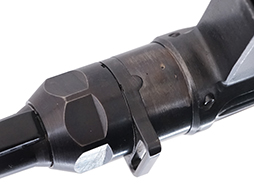 本品のレシーバー・エンド・キャップ上面には「M.P.38」のモデル名刻印に加えて、エルマ社 (Erfurter Maschinenfabrik Gmbh) 製を示す「27」のメーカー・コード及び製造年を示す「1939」の刻印が入っています。 シリアルNo.は、アッパー・レシーバー、マガジン・ハウジング、リア・サイト、リア・サイト・ベース、レシーバー・エンド・キャップ、グリップ・フレーム、ストック、マガジン・キャッチ、バレル・ナット、銃身が(4)101でマッチしています。 その他のシリアルNo.は、ハンドガードが883、フロント・サイト・ガードが1、左側グリップ・パネルが247、右側グリップ・パネルが054となっています。 その他、各部にドイツのヴァッフェン・アムト (WaA) 刻印が確認出来ます。 本品のアッパー・レシーバーには、MP40に見られるボルトを前進位置でロックするための2ピース・タイプのコッキング・ハンドルに対応した切り欠きが追加されています。