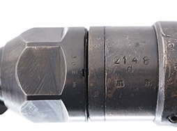 本品のレシーバー・エンド・キャップ上面には「M.P.38」のモデル名刻印に加えて、C.G.ハーネル社 (C.G.Haenel) 製を示す「122」の数字コード及び製造年を示す「1940」の刻印が入っています。 シリアルNo.は、アッパー・レシーバーとリア・サイト・ベース、リア・サイトが(2)148でマッチしています。 その他のシリアルNo.は、フロント・サイトが964、銃身が4599、バレル・ナットが500、マガジン・ハウジングとマガジン・キャッチボタンが376、ロア・レシーバーとグリップ・フレームが1003、ストックが202となっています。 その他、各部にドイツのヴァッフェン・アムト (WaA) 刻印が確認出来ます。 本品のアッパー・レシーバーには、MP40に見られるボルトを前進位置でロックするための2ピース・タイプのコッキング・ハンドルに対応した切り欠きが追加されています。