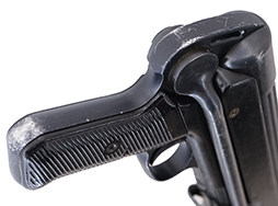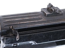 本品の銃身や機関部、ストックといった金属部は、やや打ち傷や擦れ、若干の経年による褪色が見られるものの、大きな欠損等は見られず、ブルー仕上げも比較的残っています。 バレルナットと機関部の間に僅かな隙間が見られますが、バレルナット及び銃身の取り付けにガタつきはありません。 MP38特有のアルミ製のグリップ・フレームは、黒色の塗装仕上げとなっており、やや打ち傷や擦れが散見されるものの、現状目立った腐食等は見受けられません。 ベークライト製のハンドガードとグリップ・パネルは色合いも深い茶色でほぼマッチしており、全体にやや打ち傷や線傷は見られるものの、大きな破損等は見られず、全体としては概ねしっかりとした状態が保たれています。 アッパー・レシーバーとロア・レシーバーの取り付けは、やや遊びが見られます。 折り畳み式のストックについては、展開・収納時にやや遊びが見られますが、十分許容レベルで、ロックもしっかりと掛かります。 マガジンの着脱やリア・サイトの切り替えについては問題なく行う事が可能です。