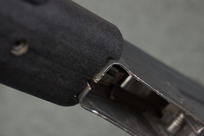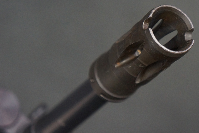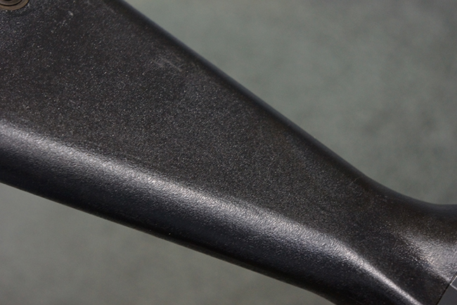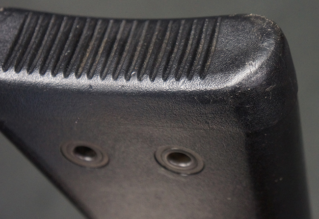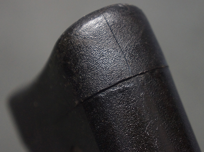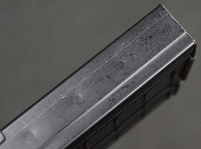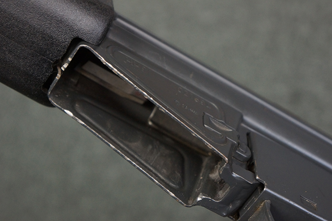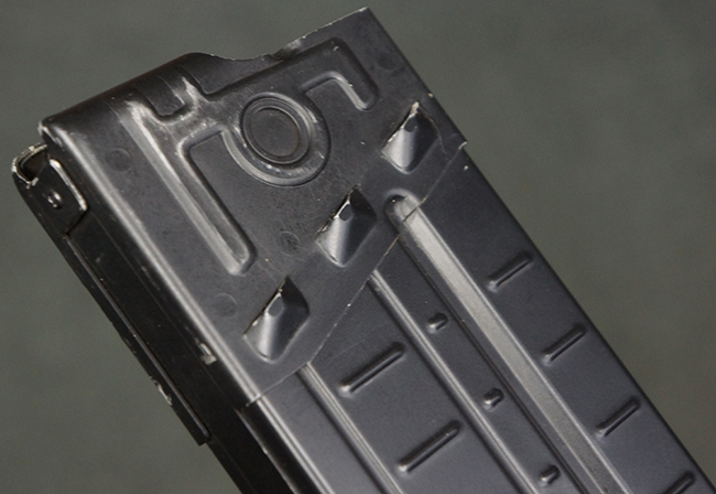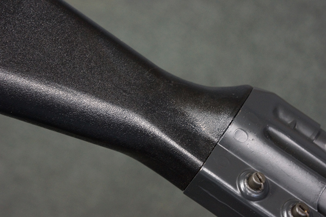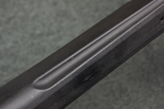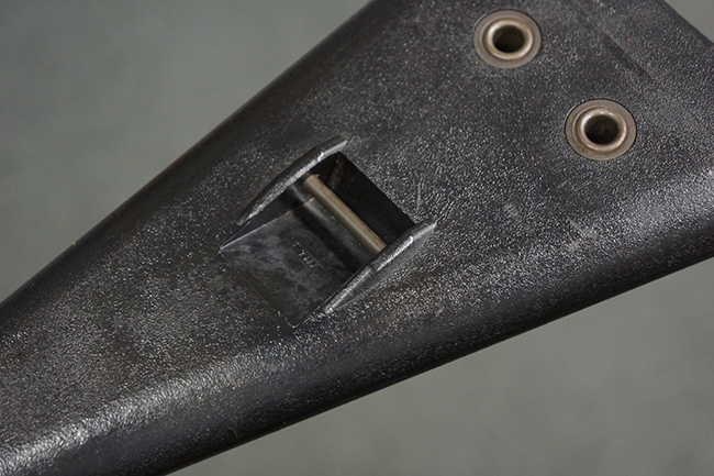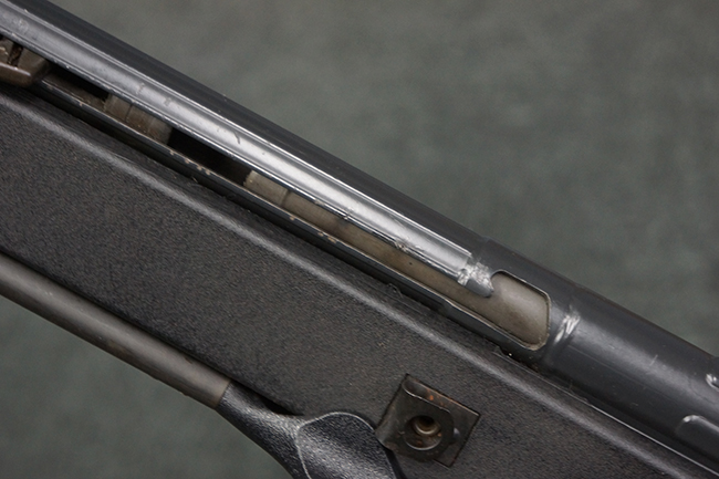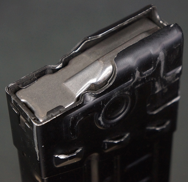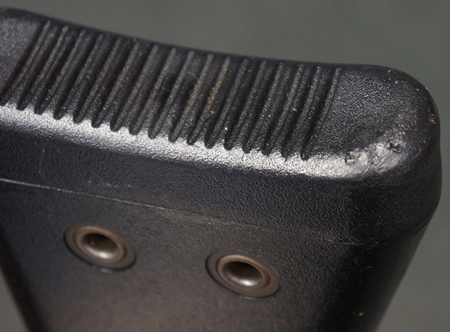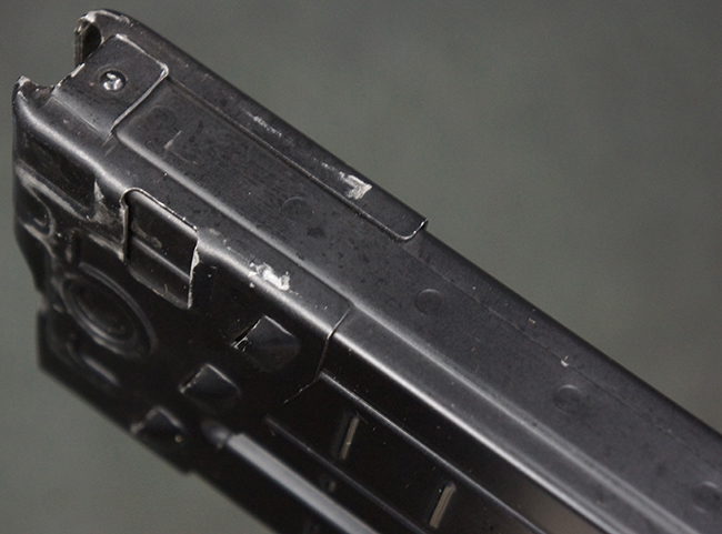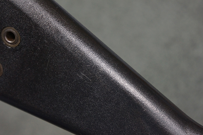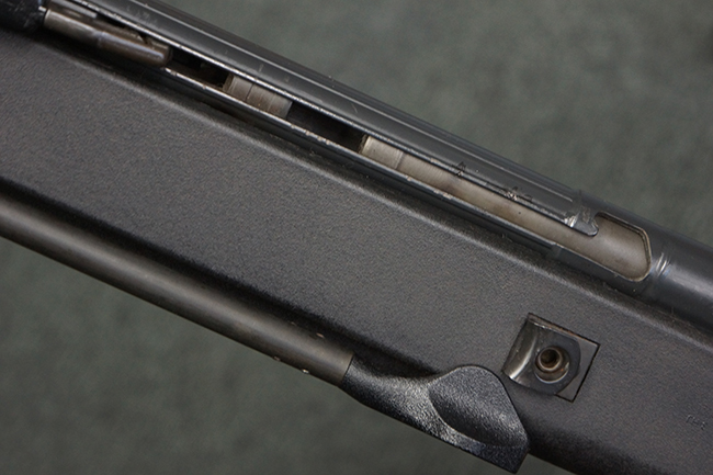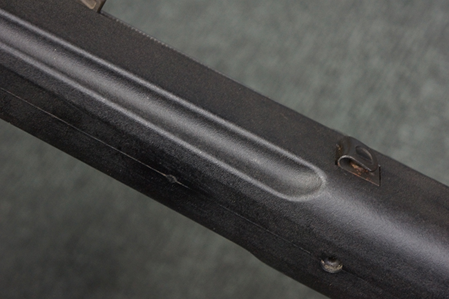 本品の銃身や機関部といった金属部は、若干の打ち傷や擦れ、一部塗装の剥落は見られるものの、目立った欠損等は見られず、オリジナルの焼き付け塗装仕上げも概ね良好に残っています。 樹脂製のハンドガードやグリップ、バット・ストックについても、若干の打ち傷や擦れは見られますが、こちらも大きな破損等は見られず、比較的良好な状態が保たれています。 傷み易いバット・プレートについては、やや打ち傷や擦れが見られる他、上部にヘアライン・クラックが見られますが、強度的には現状しっかりとした状態が保たれています。 リア・サイトの調整やマガジンの着脱、二脚の展開操作については問題なく行う事が可能です。 セーフティ・レバーの切り替えについても問題なく、安全位置でトリガーがロックされます。 付属のアルミ製マガジンは「G3 HK 5/76」の刻印が入ったHK社製で、若干の擦れに加えて一部に凹みが見られますが、大きな変形等は見られず、比較的良好な状態が保たれています。 尚、マガジン・スプリングは入っています。