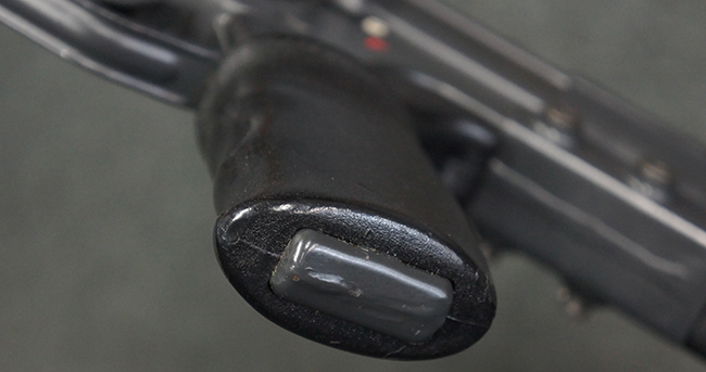 トリガーテンションの有る、ボルトが半分開いた状態で固定された旧加工品です。 (KK)