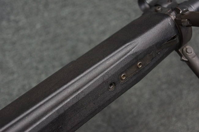 1963年10月に採用されたGew.3A1と呼ばれるモデルでは、木製のハンドガード及びリトラクタブル・ストックが装備されています。 Gew.3A2ではハンドガード前部を固定するピンがバレルとコッキング・ハンドル・チューブの間に挟まった形で固定されていましたが、この構造は銃身に大きな負荷がかかり、連続射撃時の命中精度に悪影響を与えました。 この為、1964年12月に採用されたGew.3A3では、コッキング・ハンドル・チューブ前部の外径を細くし、この部分にハンドガード・ピンを受ける別パーツを追加することにより、銃身への負荷を軽減して命中精度の向上が図られています。 また、Gew.3A3の採用と同時期には、Gew.3A3にスコープを追加したGew.3A3ZFと呼ばれるモデルも採用されました。