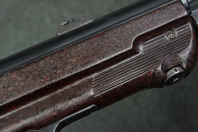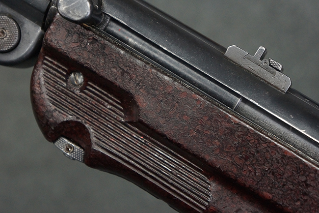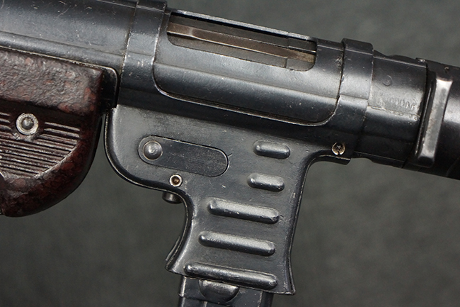 MP40のバリエーションの内、1941~1942年頃にエルマ社、ステアー社、ハーネル社で製造されたタイプは、マガジン・ハウジングの両側面に5本の強化リブが追加されているのが特徴で、これ以降に製造されたタイプでは全てマガジン・ハウジング表面にリブが追加されるようになりました。 グリップ・フレームは初期型と同様に前後二分割でプレス成型したものを溶接で組み合わせて製造されています。コッキング・ハンドルについては、1942年6月以降フォワード・ロック・セーフティ機能を備えたタイプの生産が本格的に開始された為、セーフティ機能付きのコッキング・ハンドルが付いた個体と初期型のフック型コッキング・ハンドルが付いた個体の両方が存在します。