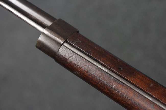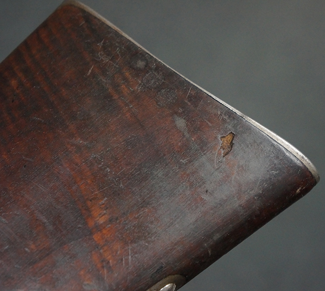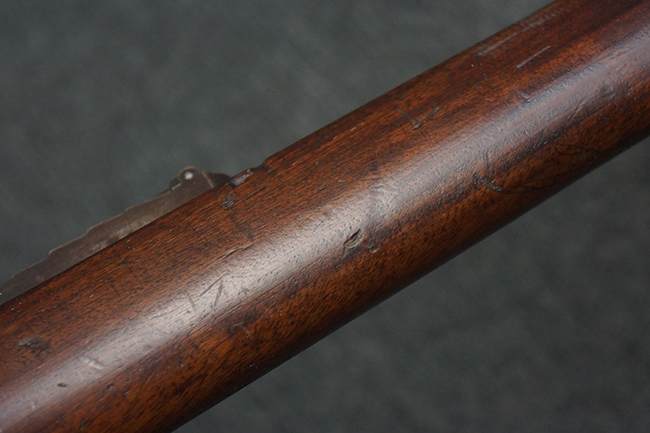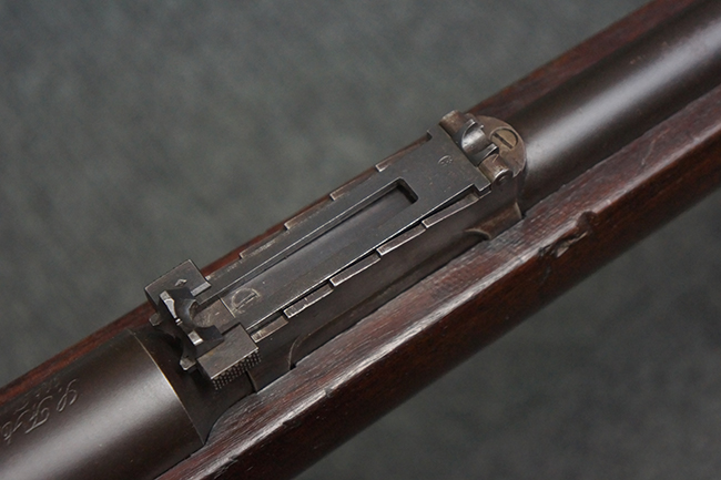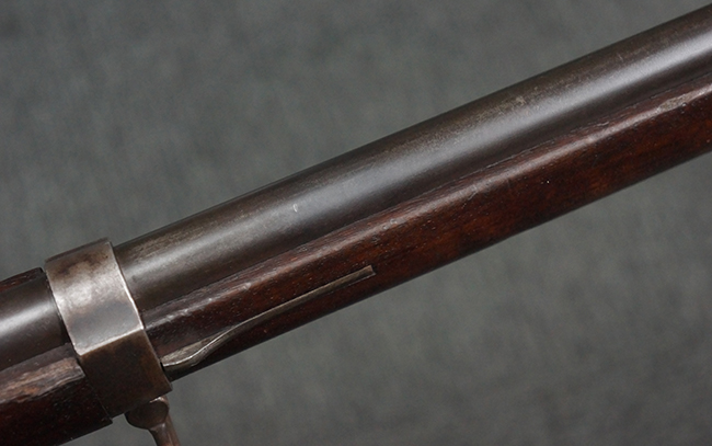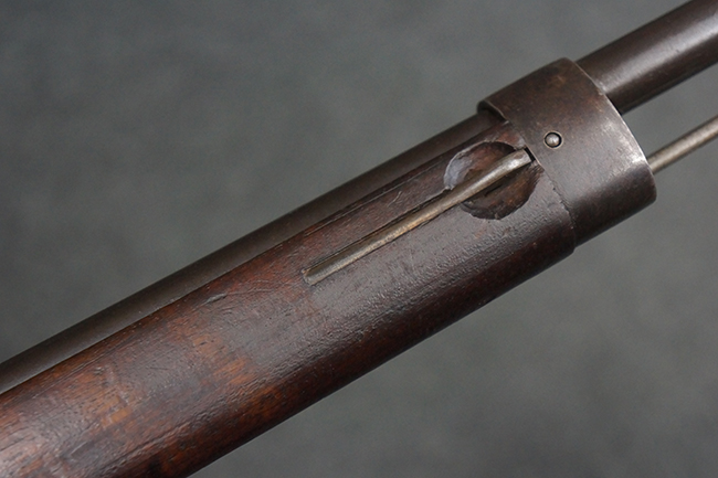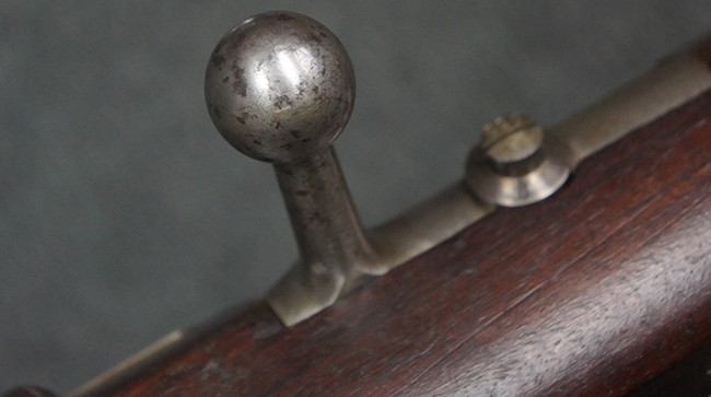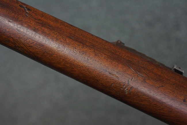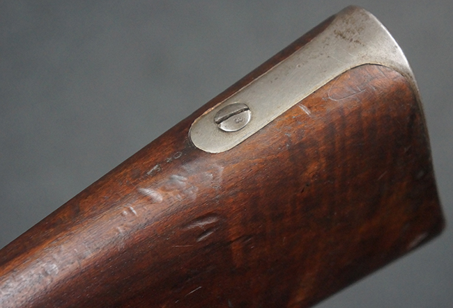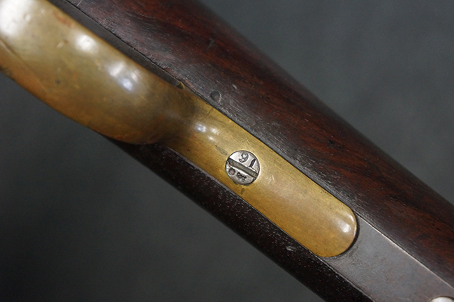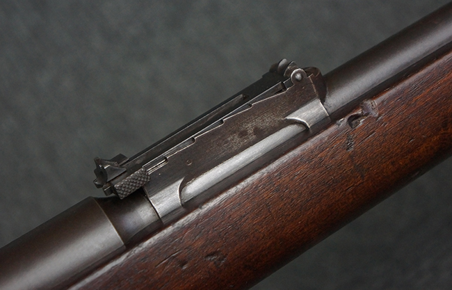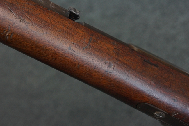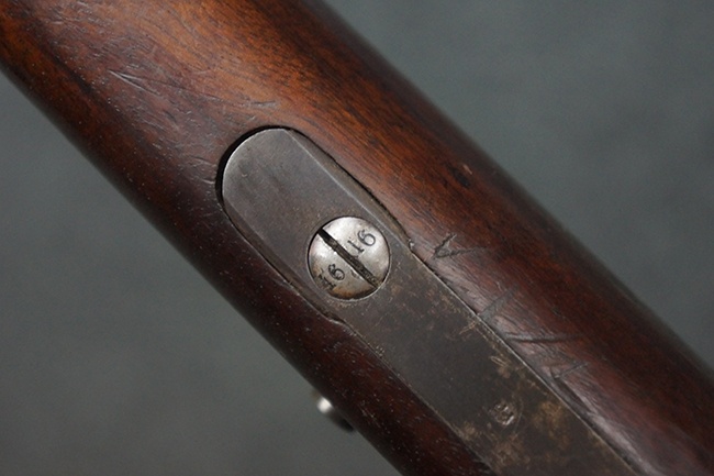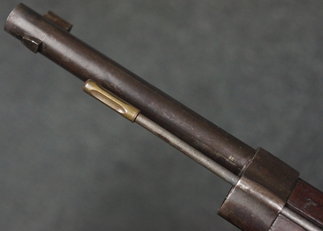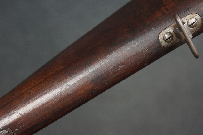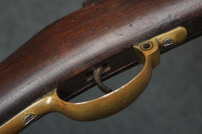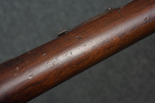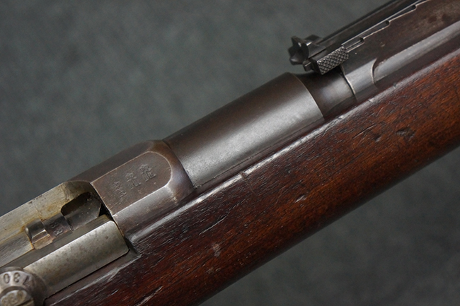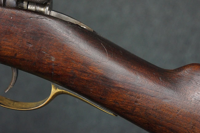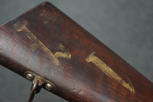 本品は全体に適度な時代が付いた良い雰囲気となっており、銃身や機関部といった金属部は、若干の打ち傷や擦れ、経年による褪色の他、一部表面錆痕は見られるものの、目立った欠損等は見られず、概ねしっかりとした状態が保たれています。 白磨きのボルトについても、やや時代錆は見られるものの、目立った朽ち込み等は見られません。 真鍮製のトリガー・ガードについてもやや打ち傷は見られますが、目立った腐食などは見られず、適度な時代が付いています。 木製銃床については、やや打ち傷や線傷の他、リア・バンド後方の銃床右側面の角などに一部時代の付いた欠けが見受けられ、アッパー・タング後方にあまり目立たないヘアライン・クラックが見られますが、それ以外には大きな破損等は見られず、オリジナルの仕上げも比較的残っています。 バット・ストック右側面には手書きにより17と読める数字が書かれています。 傷み易いバット・プレートについても、若干の時代錆や表面錆痕は見られるものの、目立った変形等は見られず、銃床への取り付けもがたつきもなくしっかりとしています。 リア・サイトの起倒・調整は問題なく行う事が可能です。 クリーニング・ロッドが付属いたします。