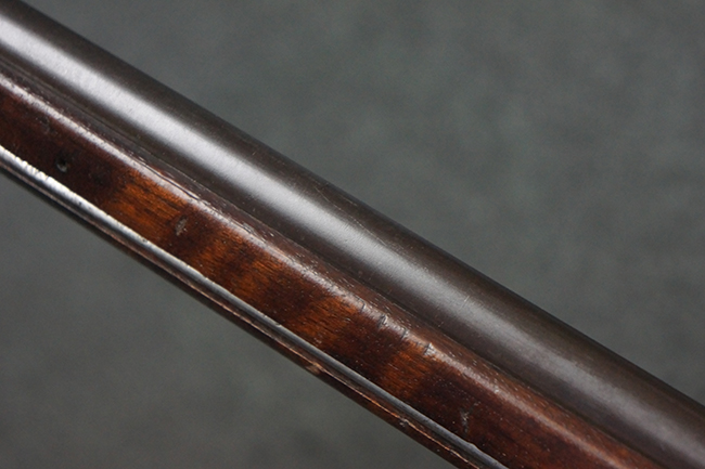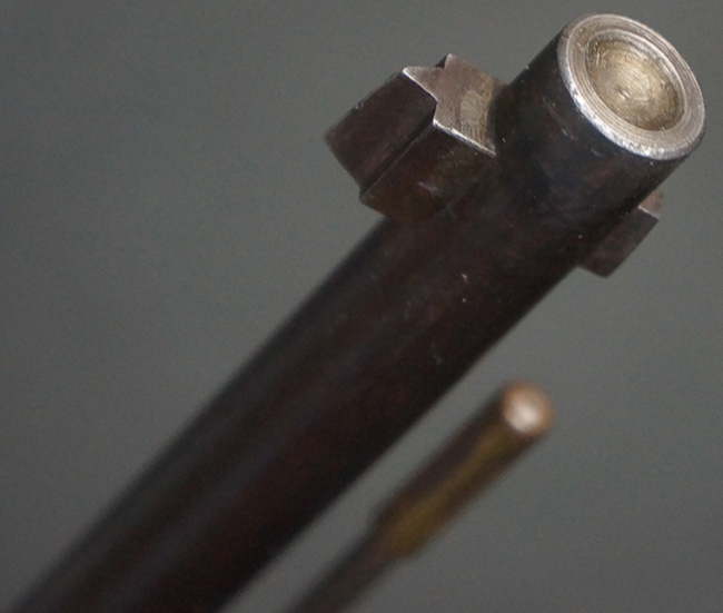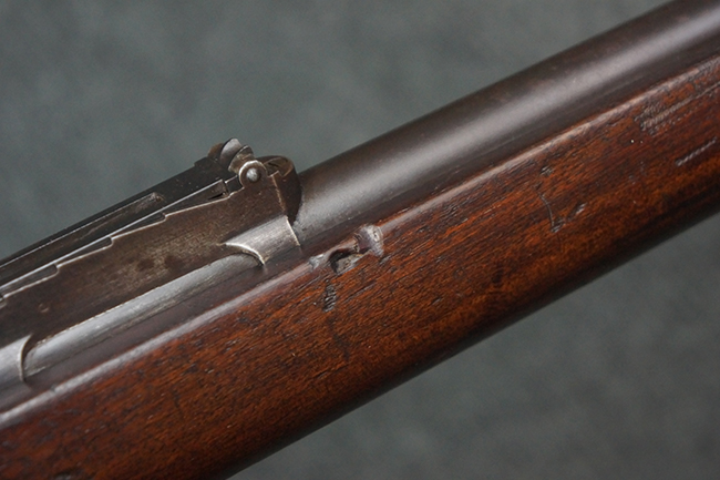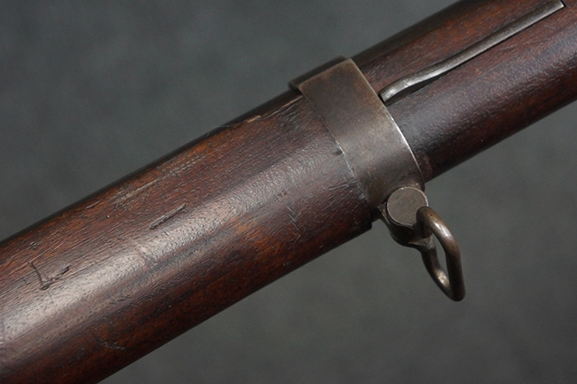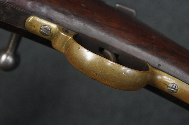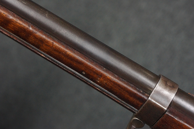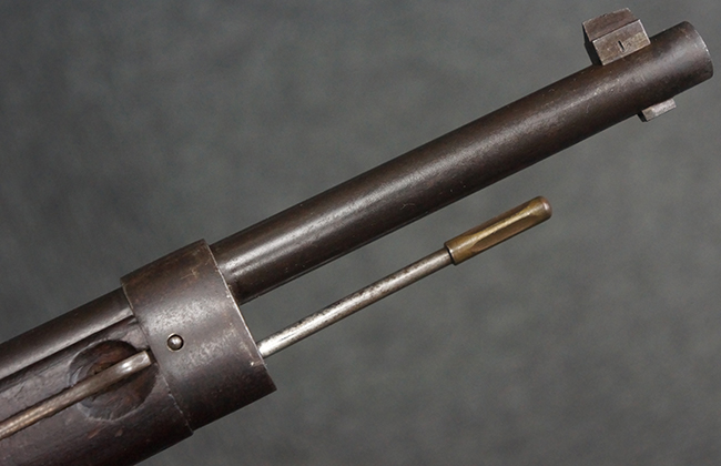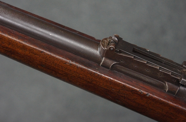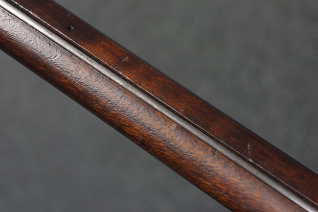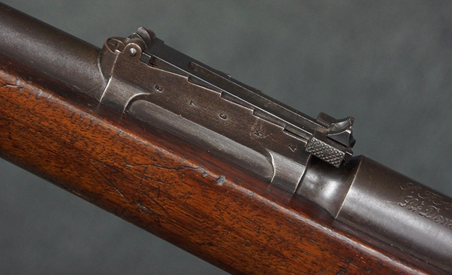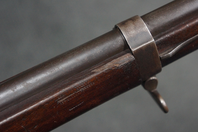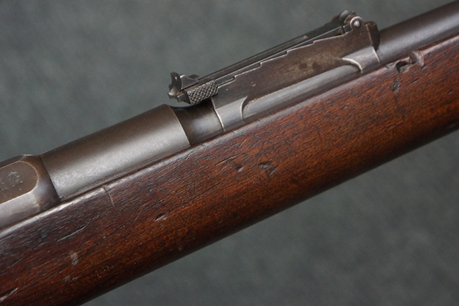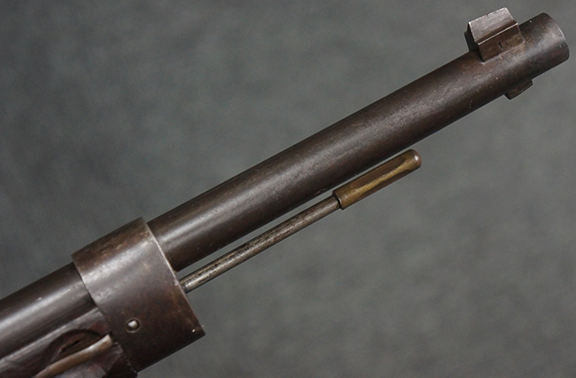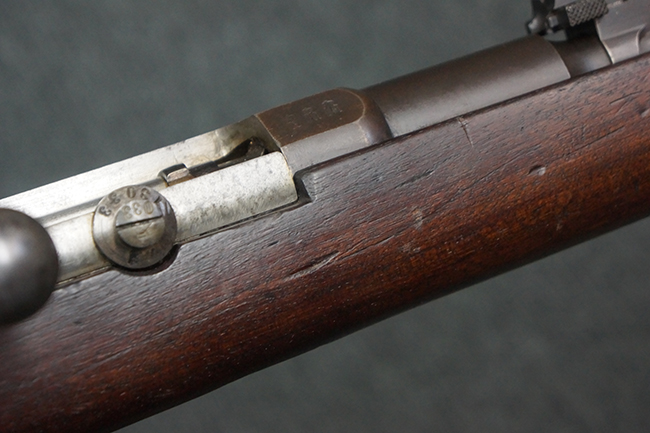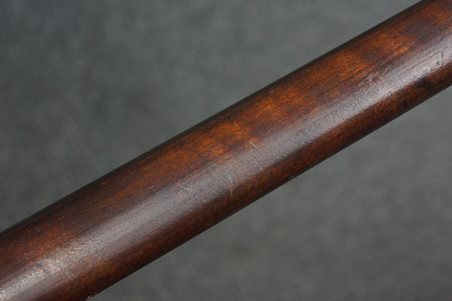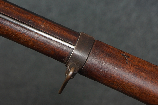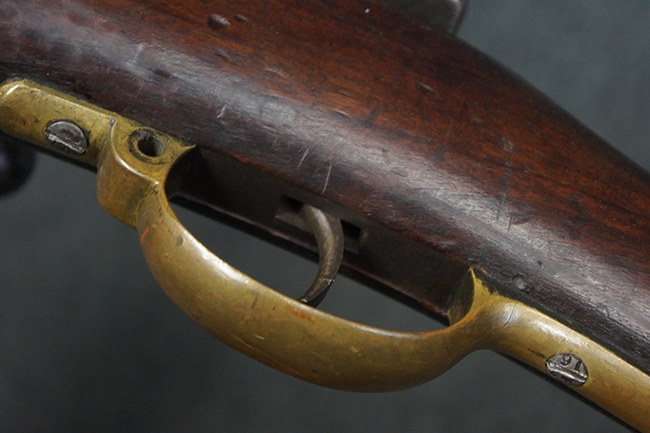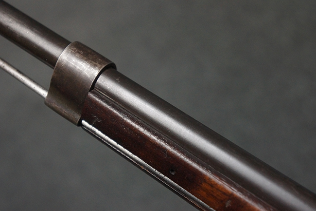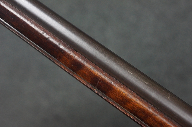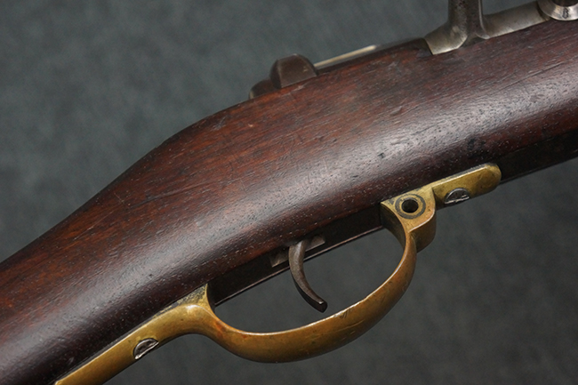 本品は全体に適度な時代が付いた良い雰囲気となっており、銃身や機関部といった金属部は、若干の打ち傷や擦れ、経年による褪色の他、一部表面錆痕は見られるものの、目立った欠損等は見られず、概ねしっかりとした状態が保たれています。 白磨きのボルトについても、やや時代錆は見られるものの、目立った朽ち込み等は見られません。 真鍮製のトリガー・ガードについてもやや打ち傷は見られますが、目立った腐食などは見られず、適度な時代が付いています。 木製銃床については、やや打ち傷や線傷の他、リア・バンド後方の銃床右側面の角などに一部時代の付いた欠けが見受けられ、アッパー・タング後方にあまり目立たないヘアライン・クラックが見られますが、それ以外には大きな破損等は見られず、オリジナルの仕上げも比較的残っています。 バット・ストック右側面には手書きにより17と読める数字が書かれています。 傷み易いバット・プレートについても、若干の時代錆や表面錆痕は見られるものの、目立った変形等は見られず、銃床への取り付けもがたつきもなくしっかりとしています。 リア・サイトの起倒・調整は問題なく行う事が可能です。 クリーニング・ロッドが付属いたします。