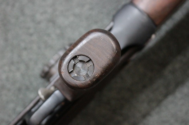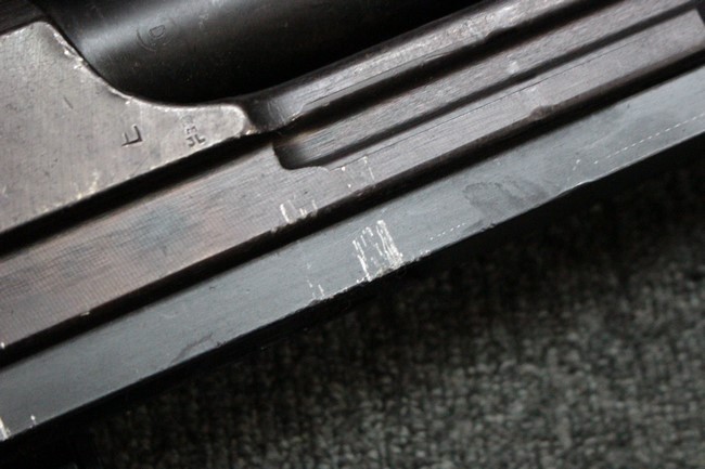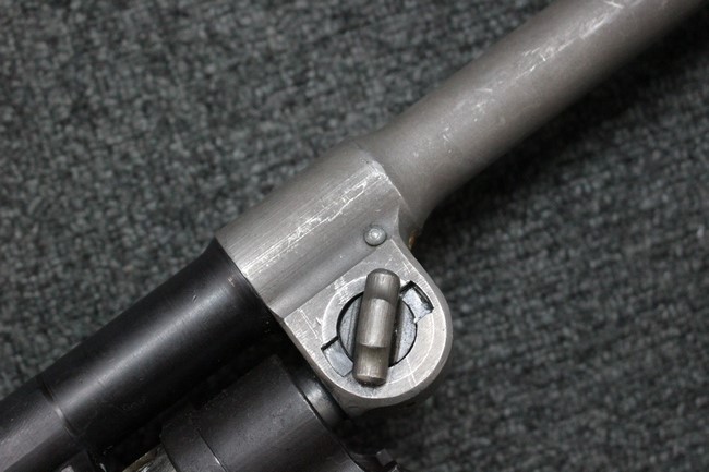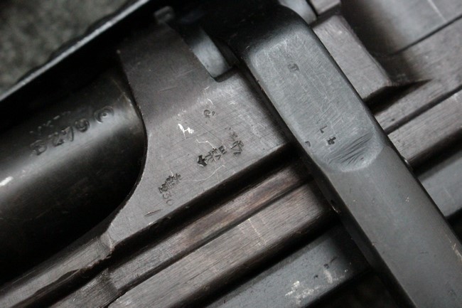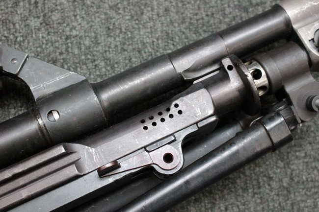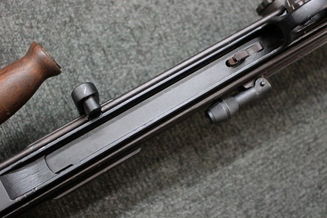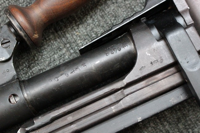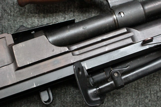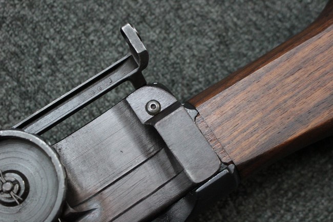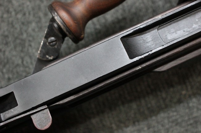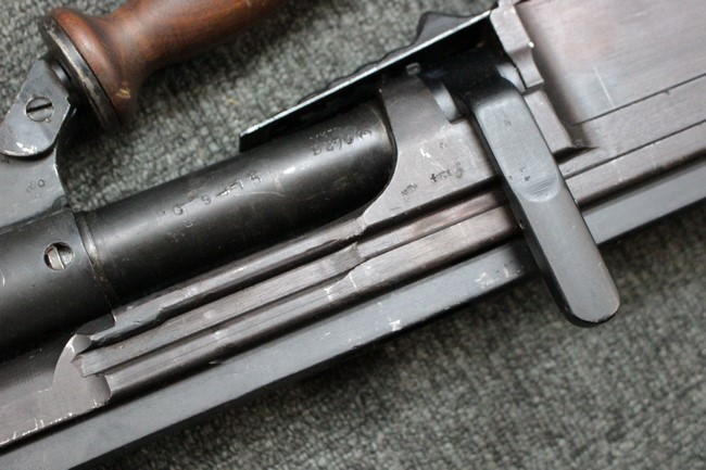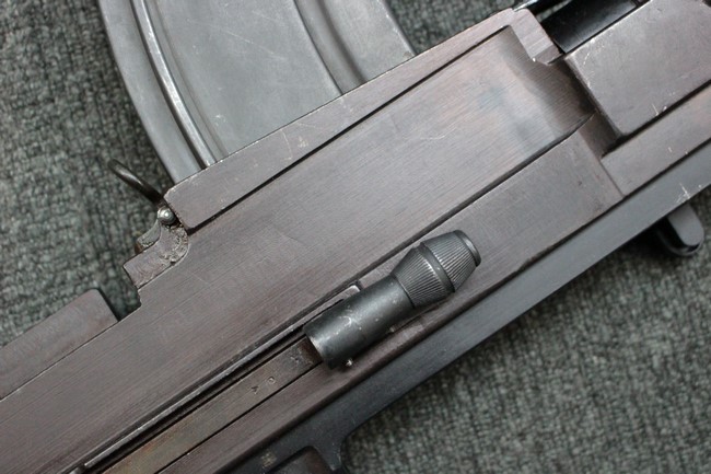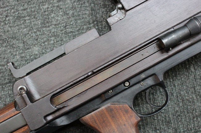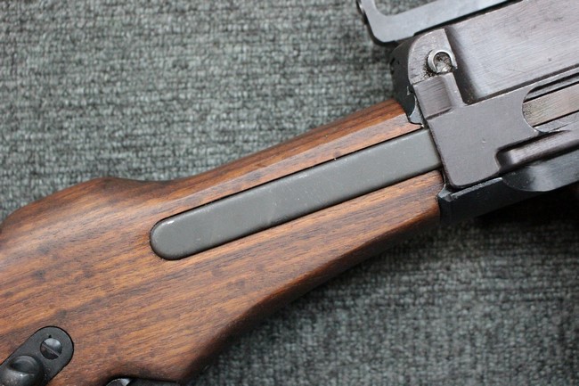 本品の銃身や機関部といった金属部は、やや打ち傷や擦れは見られるものの、目立った欠損等は見られず、表面仕上げも非常に良好に残っています。 グリップやキャリング・ハンドル、バット・ストックといった木部についても、色味はほぼ揃っており、やや打ち傷や線傷が見られるものの、全体としては大きな破損等は見られず、比較的しっかりとした状態が保たれています。