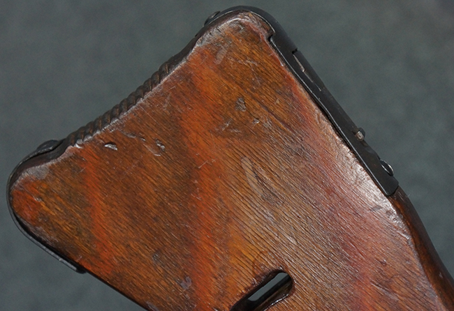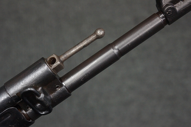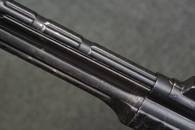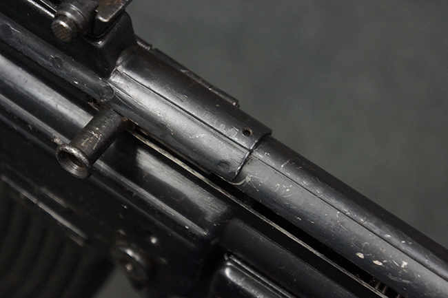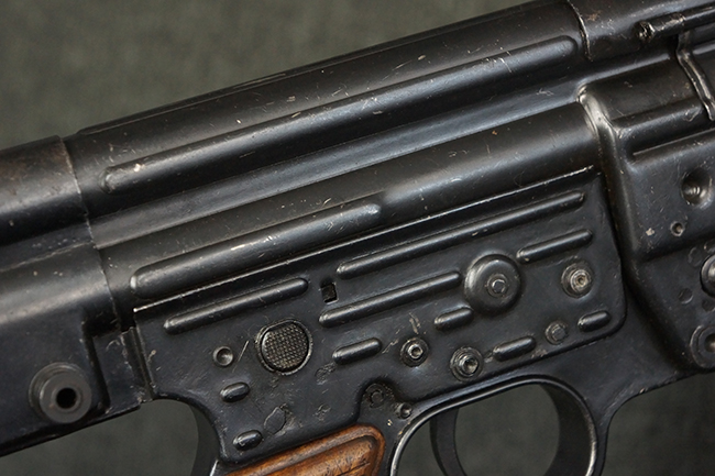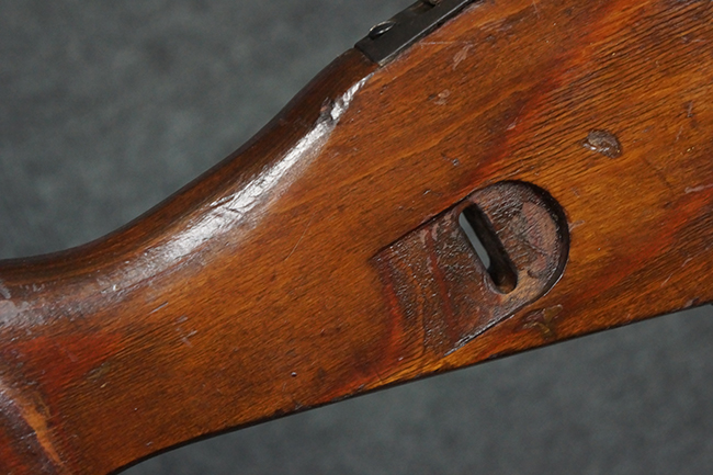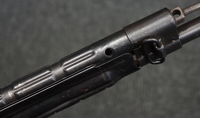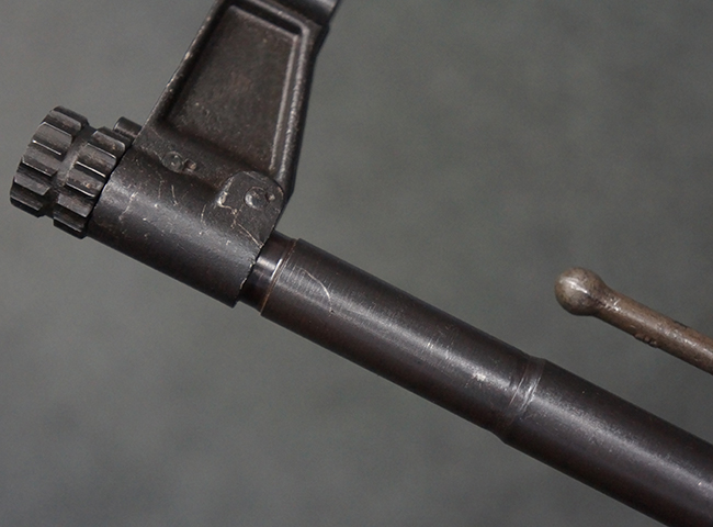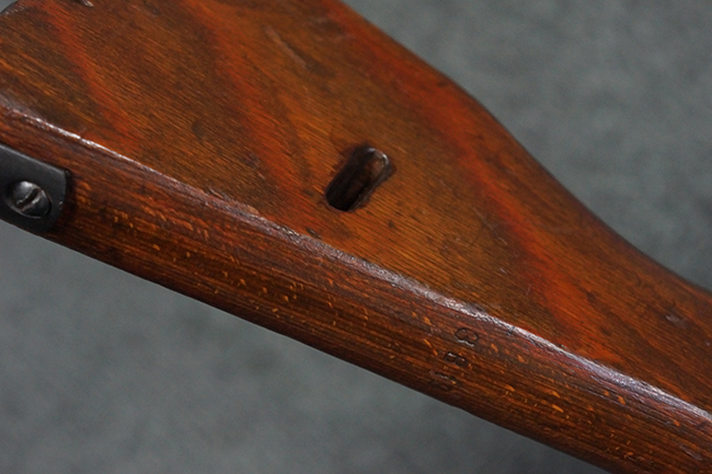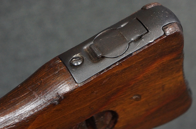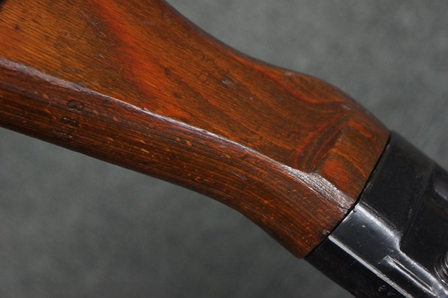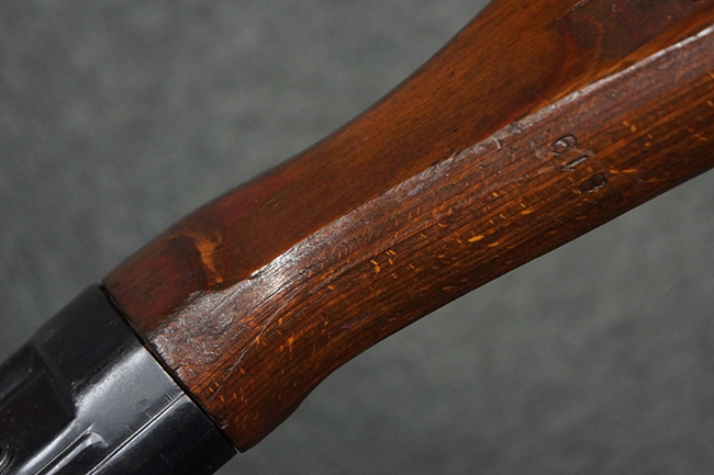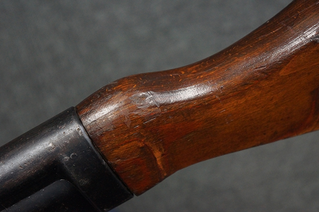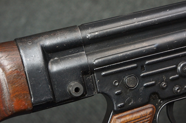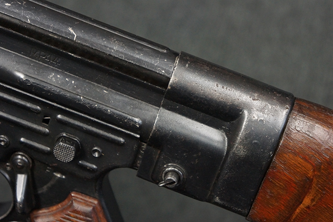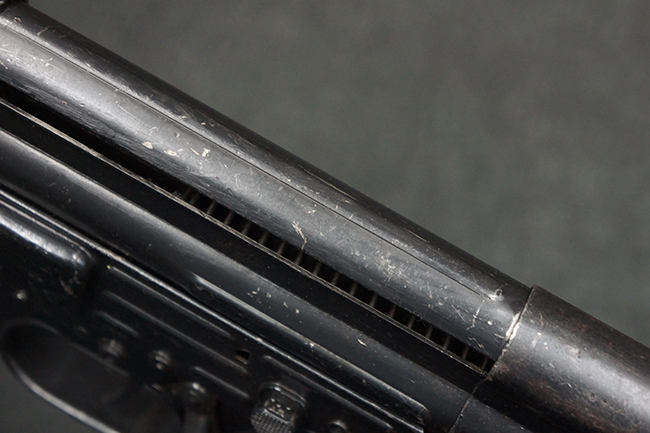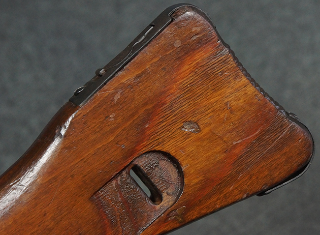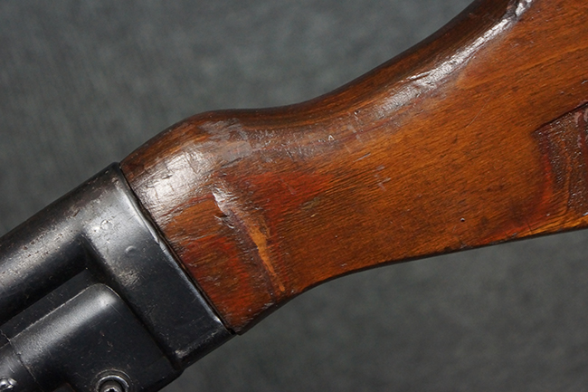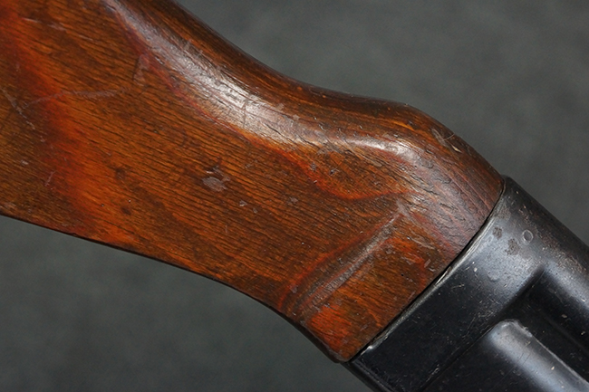 本品の金属部は、やや打ち傷や擦れ、経年による褪色の他、若干の表面錆痕が見られるものの、大きな欠損等は見られず、オリジナルの仕上げも比較的良好に残っています。 唯一、ガス・プラグにやや色落ちが目立つ他、若干の曲がりが見られます。 ハンドガードは前後にやや遊びが見られますが、取り付け自体はしっかりとしており、十分許容レベルです。 木製のバット・ストックやグリップ・パネルについても、やや打ち傷や線傷、擦れ等は見られるものの、現状大きな破損等は見られず、各部の取り付けについても大きながたつき等は見られません。 バット・ストック後部上面のコンパートメントの蓋の開閉については問題なく行う事が可能です。