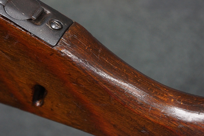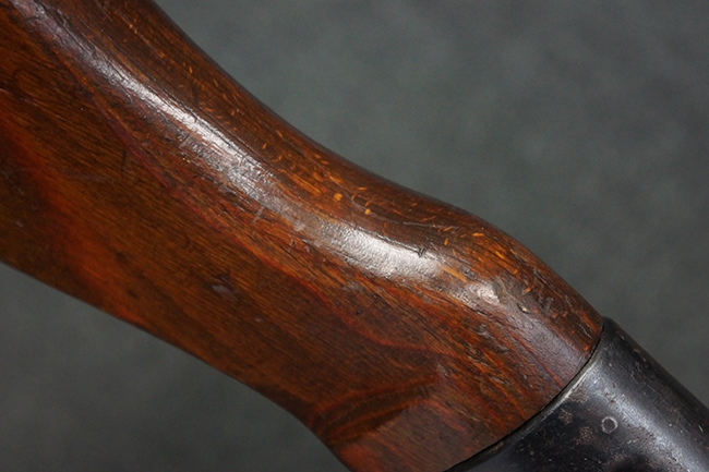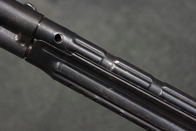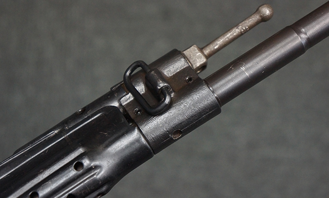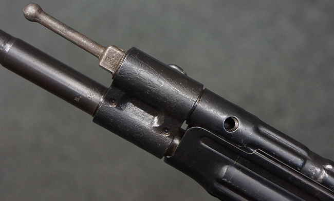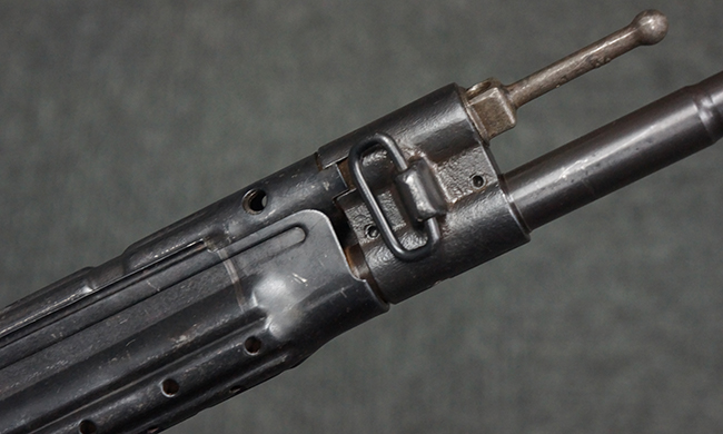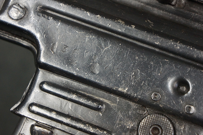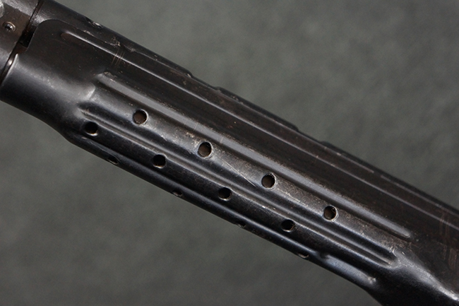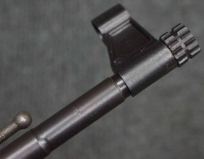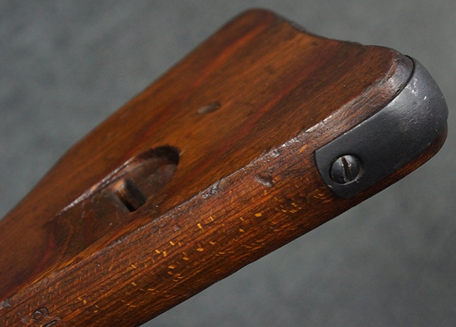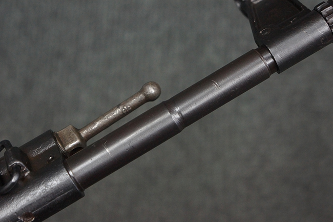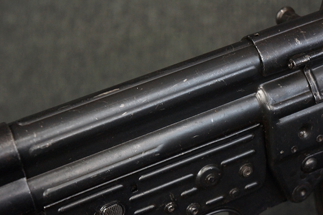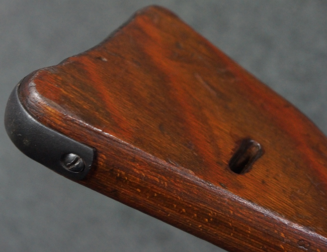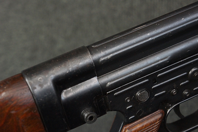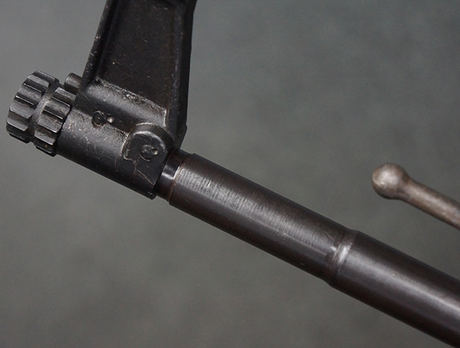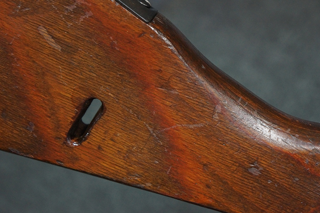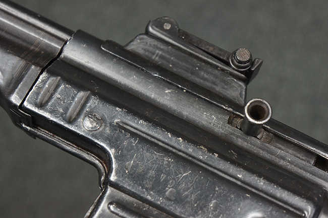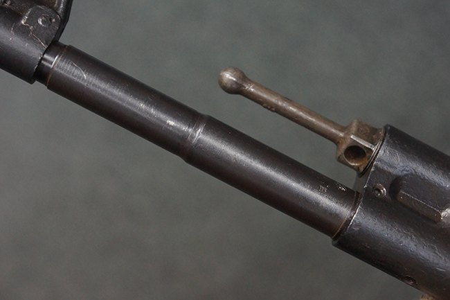 本品の金属部は、やや打ち傷や擦れ、経年による褪色の他、若干の表面錆痕が見られるものの、大きな欠損等は見られず、オリジナルの仕上げも比較的良好に残っています。 唯一、ガス・プラグにやや色落ちが目立つ他、若干の曲がりが見られます。 ハンドガードは前後にやや遊びが見られますが、取り付け自体はしっかりとしており、十分許容レベルです。 木製のバット・ストックやグリップ・パネルについても、やや打ち傷や線傷、擦れ等は見られるものの、現状大きな破損等は見られず、各部の取り付けについても大きながたつき等は見られません。 バット・ストック後部上面のコンパートメントの蓋の開閉については問題なく行う事が可能です。
