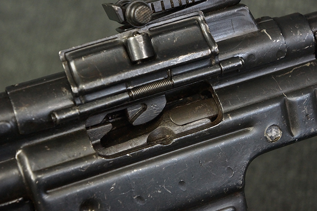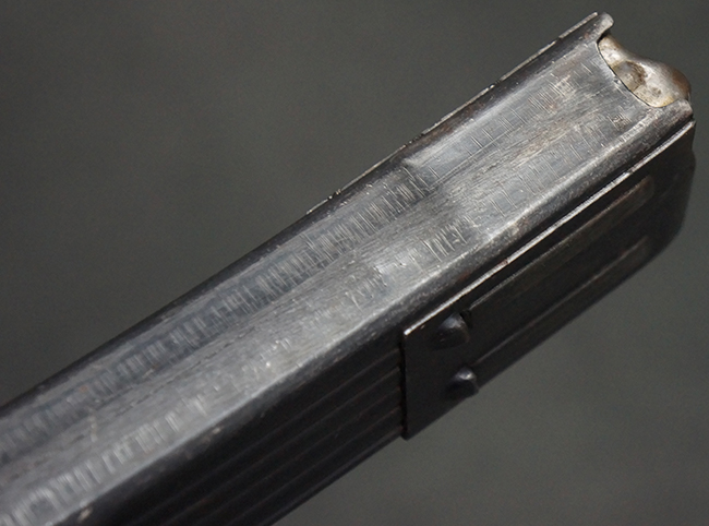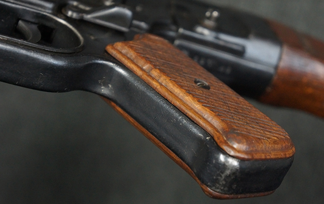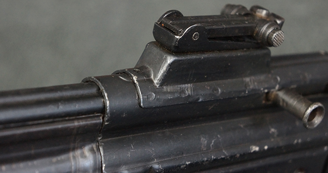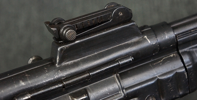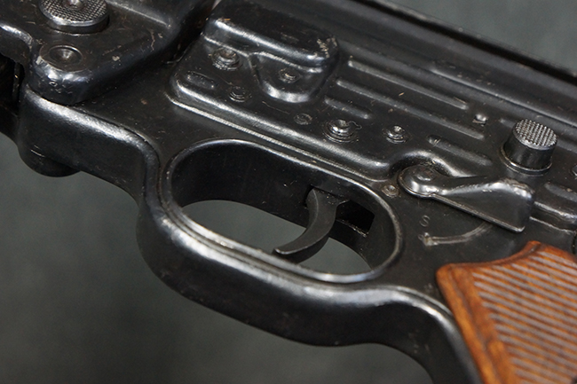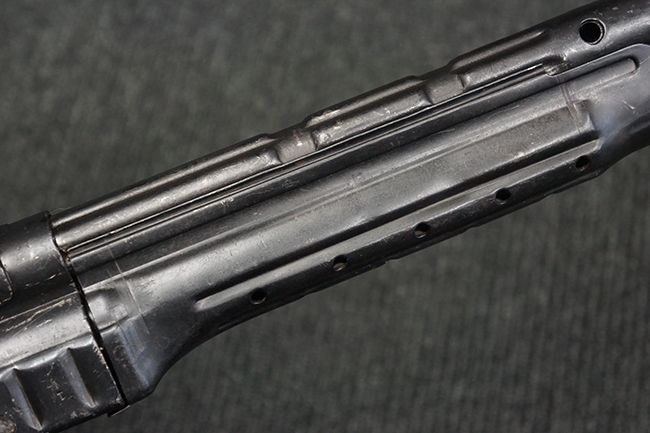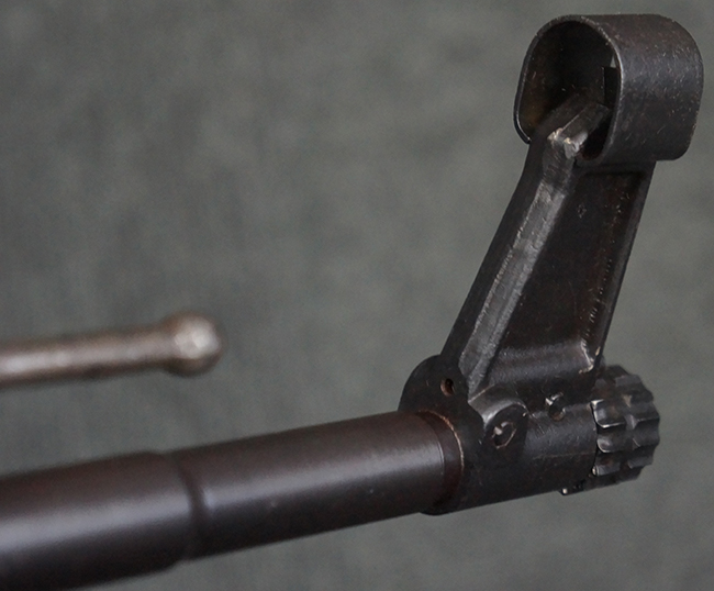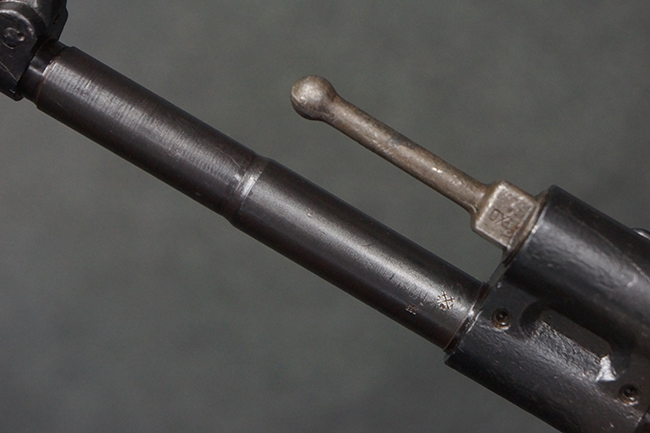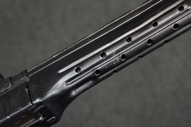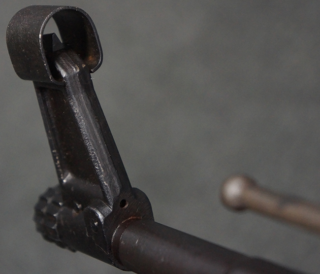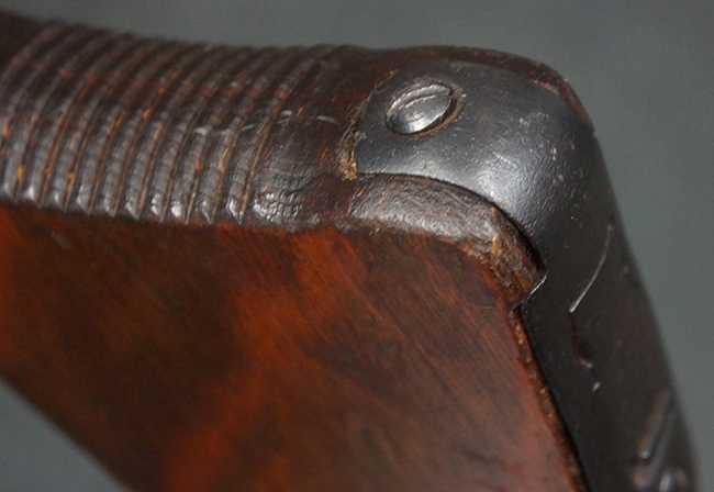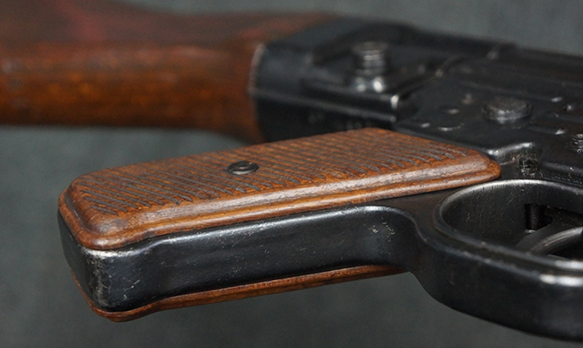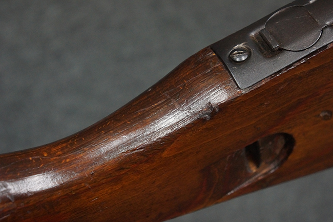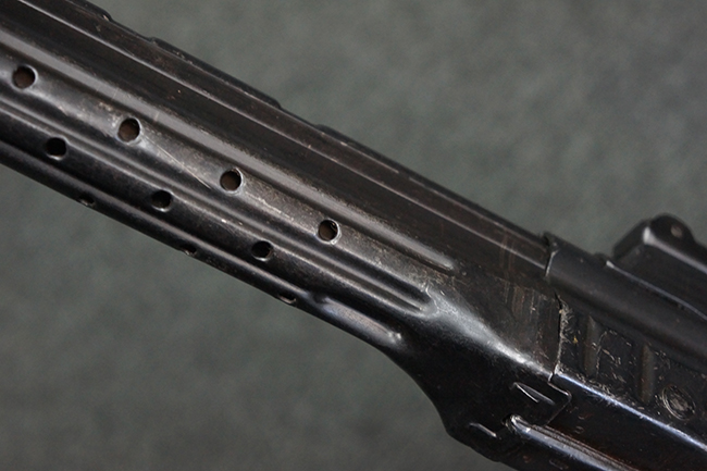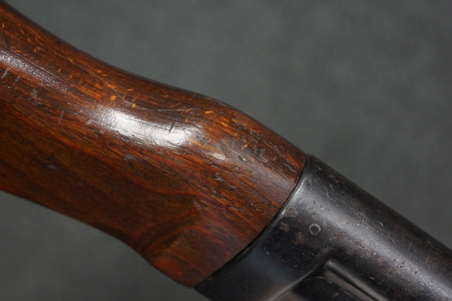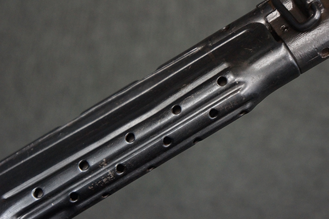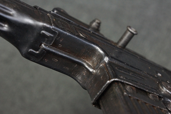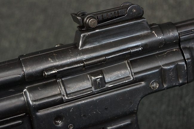 本品の金属部は、やや打ち傷や擦れ、経年による褪色の他、若干の表面錆痕が見られるものの、大きな欠損等は見られず、オリジナルの仕上げも比較的良好に残っています。 唯一、ガス・プラグにやや色落ちが目立つ他、若干の曲がりが見られます。 ハンドガードは前後にやや遊びが見られますが、取り付け自体はしっかりとしており、十分許容レベルです。 木製のバット・ストックやグリップ・パネルについても、やや打ち傷や線傷、擦れ等は見られるものの、現状大きな破損等は見られず、各部の取り付けについても大きながたつき等は見られません。 バット・ストック後部上面のコンパートメントの蓋の開閉については問題なく行う事が可能です。