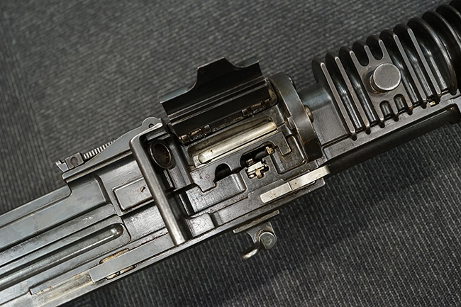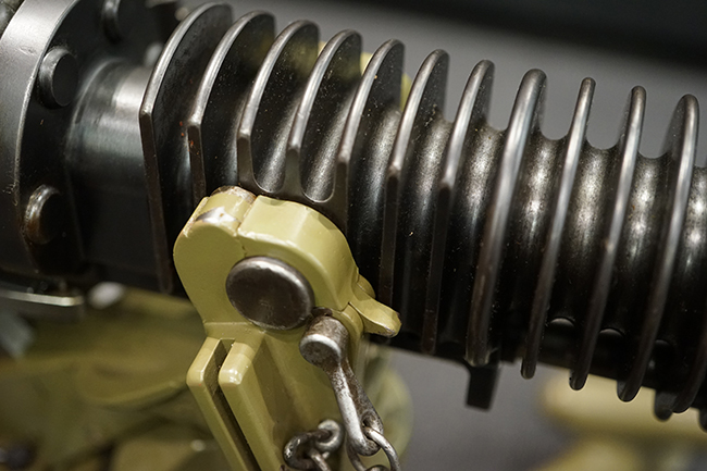 それ以前の三八式機関銃が銃身の冷却に悩まされたことから、本銃では銃身に大型の冷却フィンが付属しています。 弾薬塗油装置を兼ねたフィード・カバーが特徴です。