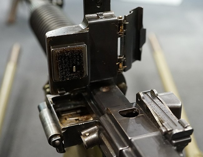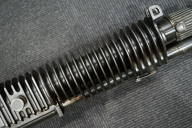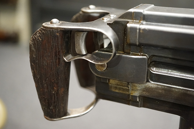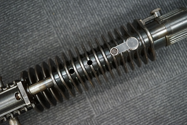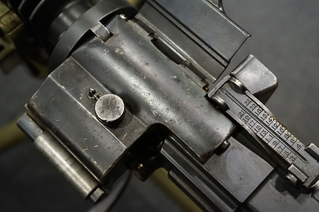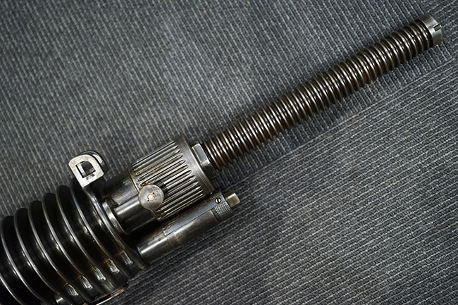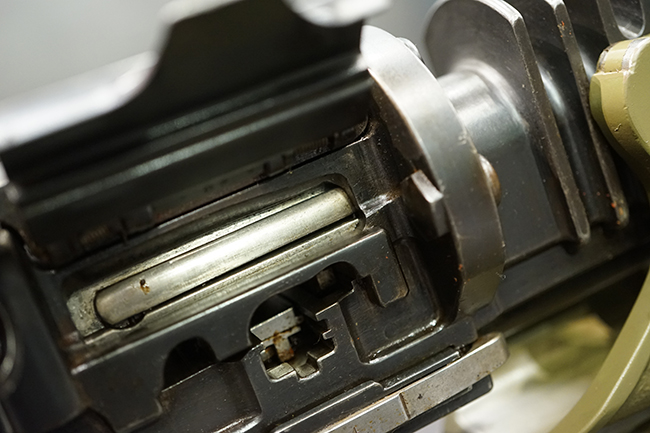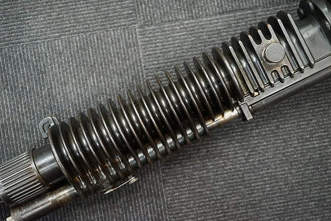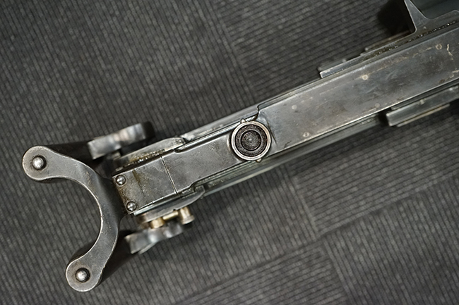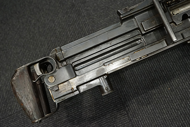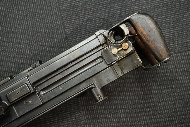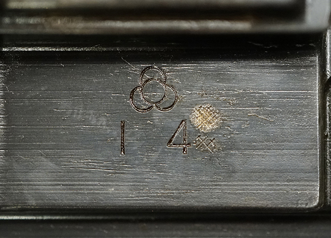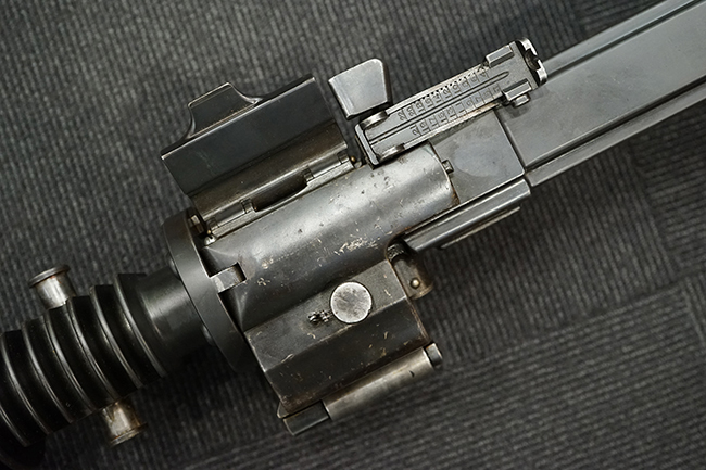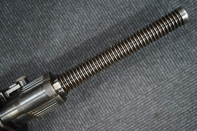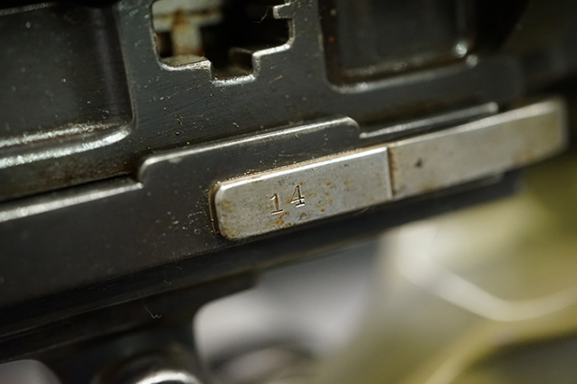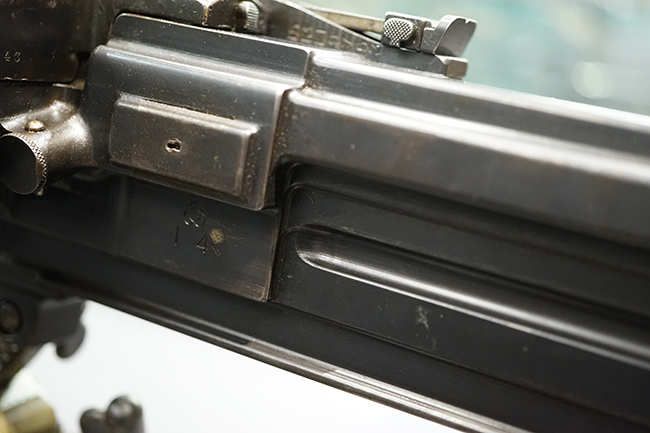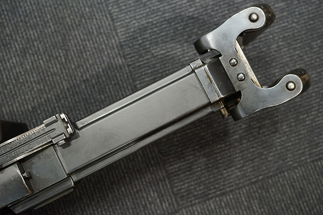 シリアルの14は各部に確認できますが、フィード・カバーは43となっております。金属部はフィードカバー上面とコッキン・ハンドルとそのガイド、グリップ周辺にやや擦れ見られ地金が出ている部分も見受けられますが、全体的にブルー仕上げが非常に良く残っており、朽ち込み等も殆ど見られません。最終生産品でも80年以上前に製造されていることを考えると、非常に良好な状態であるといえるでしょう。