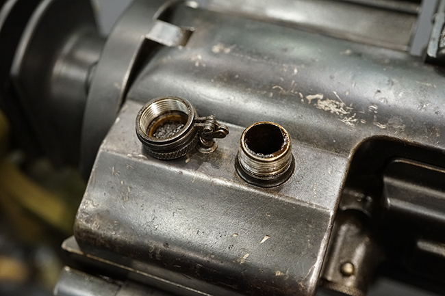 フィードカバーは容易に開閉でき、内部のブラシの毛も綺麗に整った状態で残っています。 また、欠損し易い給油口蓋も綺麗な状態で残っており、スムーズに取外しすることが可能です。