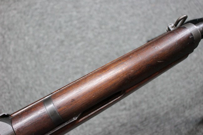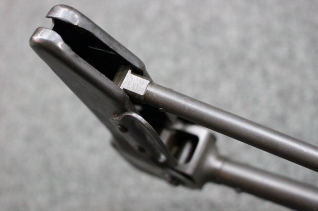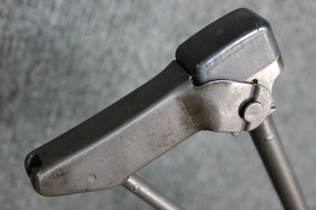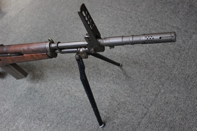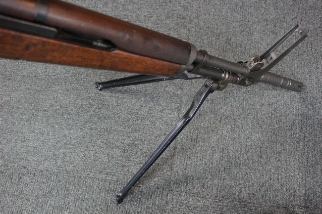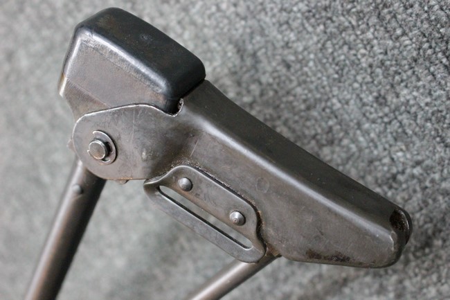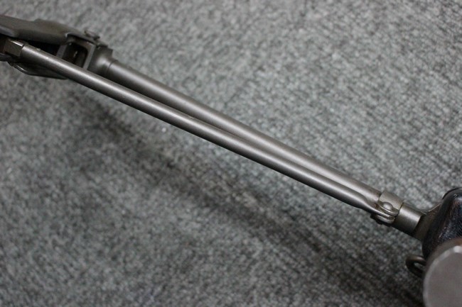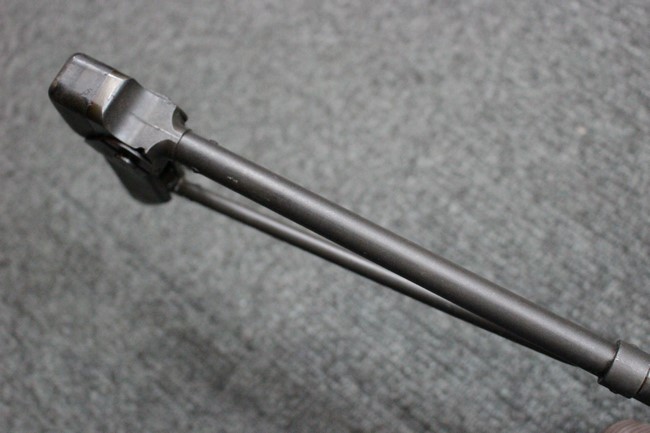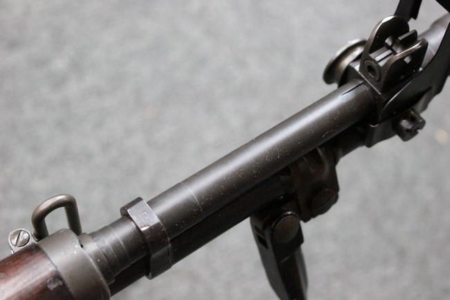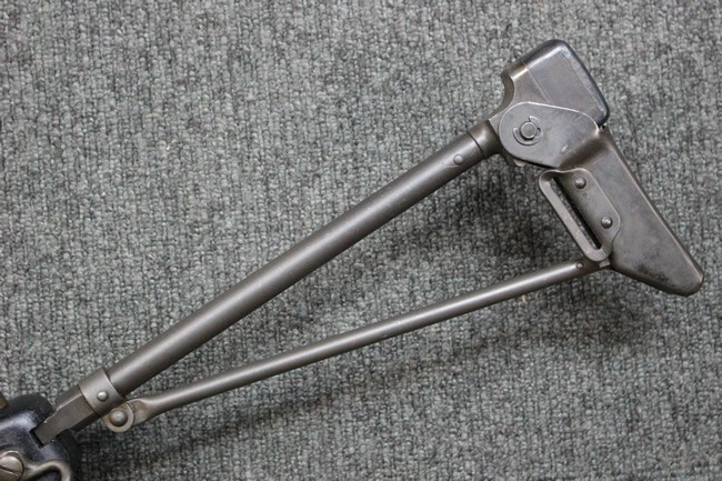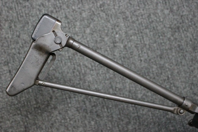 金属部は一部でパーカー仕上げと黒の焼付け塗装が使い分けられており、パーカー仕上げの機関部・銃身・ストックはコンディションが揃っており、多少の小傷は見受けられますがパーカー仕上げが鮮やかに残っています。 折畳みストックの基部、二脚は黒の焼付け塗装となっており、やはりこれらも多少の小傷こそ見られるものの、全体的に塗装が残っています。
