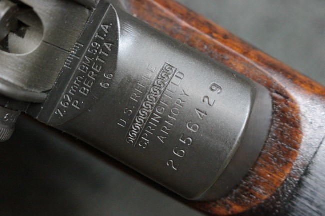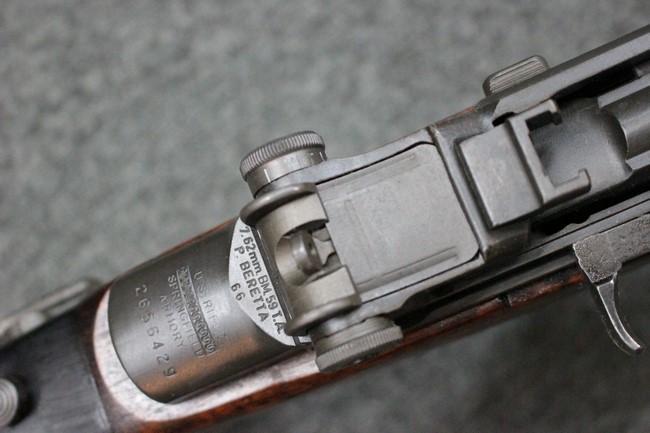 本品はイタリア国家憲兵カラビニエリからの放出品です。金属部、木部共に若干の使用感は見られるものの、目立つ欠点の無い、良好な状態と言えます。 レシーバーは戦後、アメリカより供与されたM1ガーランドをベレッタ社が改造した個体でSPRINGFIELD ARMORYの刻印が打たれていています。 その他、薬室部上面には「P」の刻印が薄っすらと確認できる他、リアサイト基部付近には「7.62mm BM59 TA P BERETTA 66」 の刻印、ストック左側面には「BM59 TA PB」の刻印が見られます。