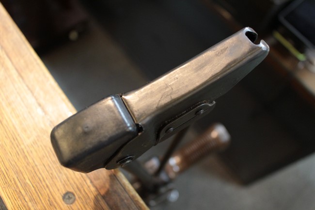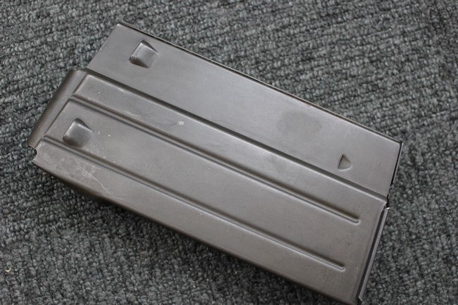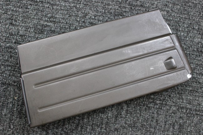 付属の鉄製20連マガジンには表面に細かな擦れが見られる程度で、大きな腐食や変形は見られず、全体的にパーカー仕上げが残った状態が保たれています。 ガス・カット兼用のライフル・グレネード・サイトの起倒、アルミ製二脚の展開/収納、ウインター・トリガーやセーフティの操作、グリップ底面コンパートメントの開閉、マガジンの着脱に関しては問題なく行う事が可能です。