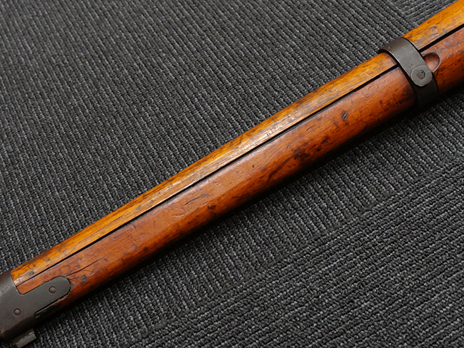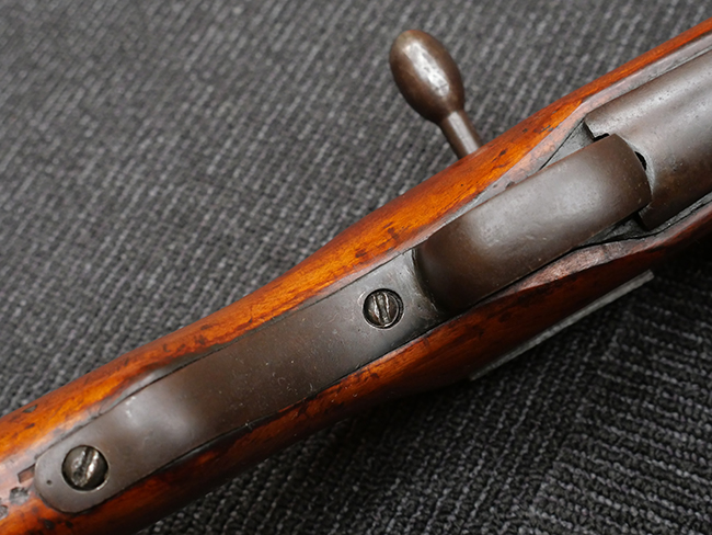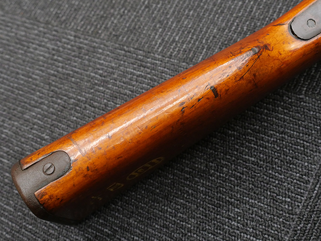 本品は機関部、用心鉄、照尺座などに可鍛鋳鉄の部品が多用されており、他の旧軍小銃とは一線を画す品です。 また前後の背負止は無く遊底覆を装着する溝もありません。