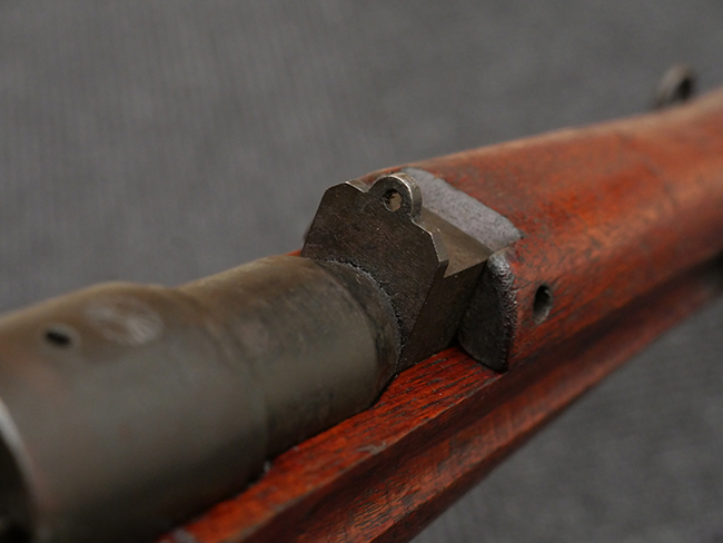 末期型は当時の国状により各部の製造工程を簡略化された仕様で、初期型と比べると同じ九九式とは思えないような品質の違いがあります。九九式の中では最多の生産数といわれており、正規工廠以外の民間企業で生産された九九式の多くが末期型になります。そのため細部に多くの仕様があり、最もバリエーションに富んだモデルです。弊社での末期型定義は照尺(リア・サイト)が固定式の仕様の品を末期型としております。