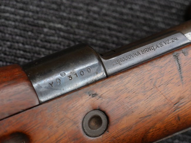 本品の機関部左側面には「ZBROJOVKA BRNO, A.S. VZ.24.」のメーカー名及びモデル名刻印が入っています。
