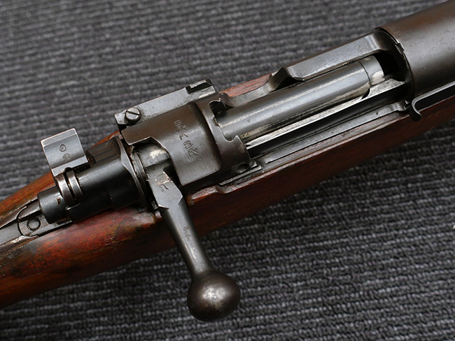使用弾薬の変更に伴い、タンジェント型リア・サイトの射程を定める角度も変わったため、 45/66式ではリア・サイトの高さが46式に比べて低いものに変更されました。 尚、弾薬はケースが約2mm長いだけでほぼ同じサイズのため、45式と45/66式は装弾口の大きさに違いは見られず、このリア・サイトの違いで判別が可能となっています。 更に、より強力な新型弾に耐えられるよう、46/66式のレシーバー後部の上下タング部分には延長部品が追加されています。 アッパー・タングとロア・タングには、それぞれ約6,5cmと約5,0cmの延長部品が旧軍の三十年式や三十五年式小銃のロア・タング延長部と同様に追加されています。