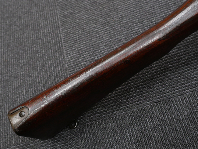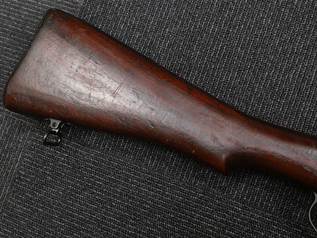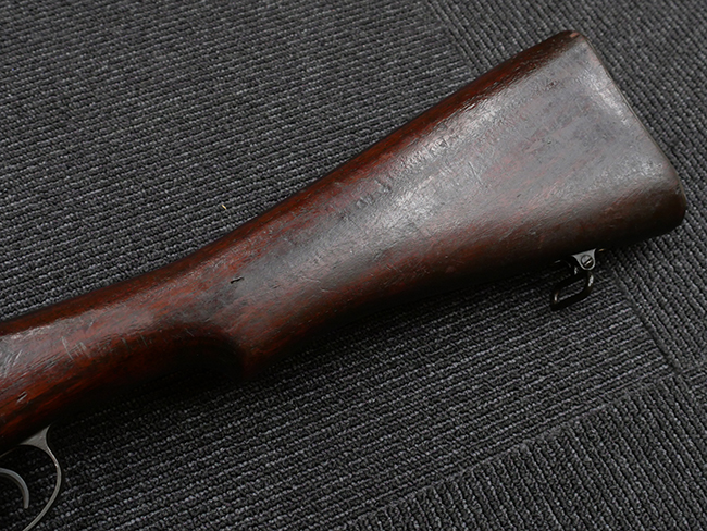 本品はエディストーン小銃工場製で、銃身や機関部といった金属部については、やや打ち傷や経年による褪色の他、一部表面錆等が見られる場合がございますが、大きな欠損等は見られず、概ねしっかりとした状態が保たれています。 木製銃床については、やや打ち傷や線傷の他、一部にひびや若干の欠け、補修痕等が見られる場合がございます。 リア・サイトの調整やストック内コンパートメントの蓋の開閉については問題なく行う事が可能です。