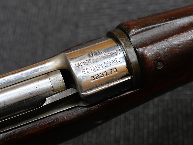 アメリカが第一次世界大戦に参戦した際、同国はM1903 スプリングフィールド 小銃の生産不足に直面しており、これを補う形で、P14 小銃の設計を.30-06 スプリングフィールド弾仕様に改修したM1917 エンフィールド 小銃がP14 小銃と同じ3社により大量に生産されました。 M1917 小銃の弾倉容量は6発 (クリップは5発) となっています。 リア・サイトは400ヤード固定式のピープ・サイトと、200~900ヤード (100ヤード刻み)、900~1600ヤード (50ヤード刻み) 対応の跳ね上げ式ラダー・サイトで、P14 小銃と同様の頑丈なガードを備えています。 フロント・サイトはガードの付いたポスト・タイプで、組立時に左右調整され固定されます。 これらの設計は、M1903A3 スプリングフィールド 小銃やM1 ガーランド ライフルなど、後の米軍小銃にも受け継がれました。 また、M1917 小銃には刃長16,5インチの専用銃剣が用意され、後にトレンチガンにも転用されました。 M1917 エンフィールド 小銃は、第一次世界大戦ではM1903 スプリングフィールド 小銃と併用されながらも生産数と配備数でM1903を上回り、終戦時にはアメリカ遠征軍の約75%がM1917を装備していました。 戦後は化学迫撃砲部隊や州防衛隊に配備された他、民間へも放出され、レミントン社では民間用にモデル 30 (Model 30) として製造が続けられました。 第二次世界大戦では、訓練、予備兵器、本土防衛、レンドリース供与など幅広く用いられ、英国ホームガード、中国国民党軍、自由フランス軍、カナダ軍など多くの同盟国に供給されました。 また、戦後もデンマークやノルウェーに供与され、朝鮮戦争では中国人民志願軍や各地のゲリラ部隊が使用しています。 現在でも、M1917は米軍の儀礼用小銃として使用されるほか、デンマークのシリウス犬ぞりパトロール隊が北極圏での野生動物対策用として「Gevar M/53(17)」の名称で運用しています。 その堅牢な構造、優れた遠距離精度、6発装填可能な大容量弾倉と信頼性の高さにより、M1917 エンフィールド 小銃は、第一次世界大戦から現代に至るまで、高く評価され続けています。