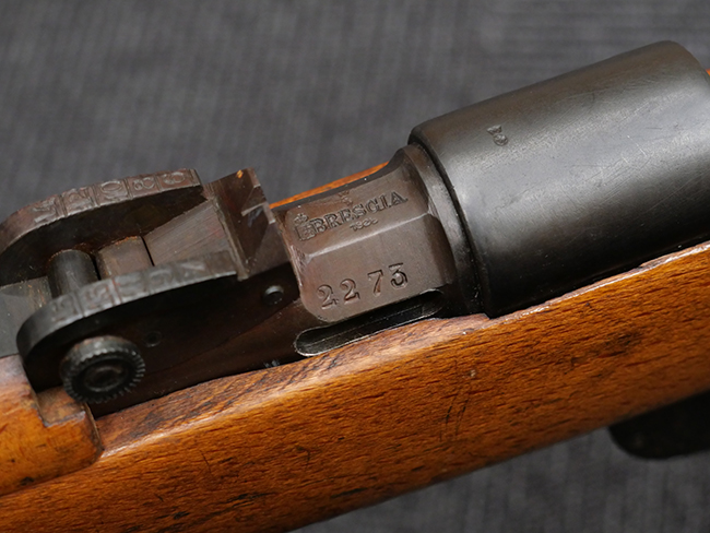 本品の銃身基部にはシリアルNo.の他、N.e.V.C. Brescia (Napoleone & Vittorio Castelli - Brescia) を示す刻印が入っています。 同社は1928~30年にかけて、軍から放出されたM1891 TS 短小銃を入手し、金属部品や銃床の再整備を行った上で販売していた事が知られており、本品についてもその1挺と考えられます。