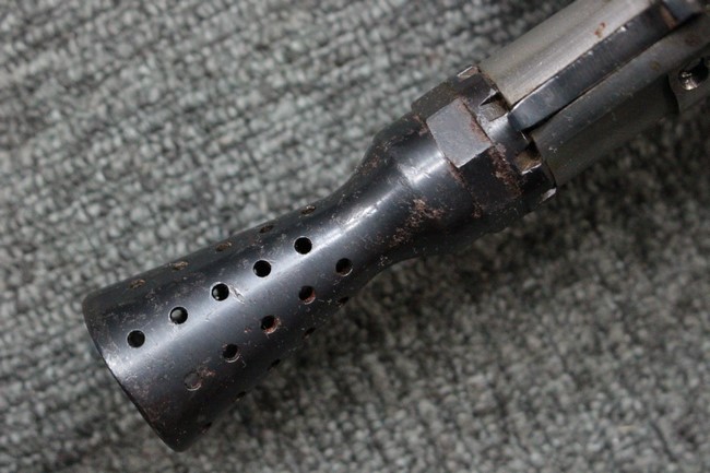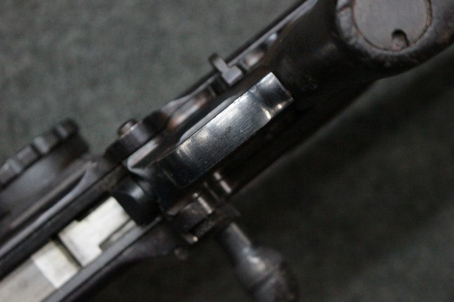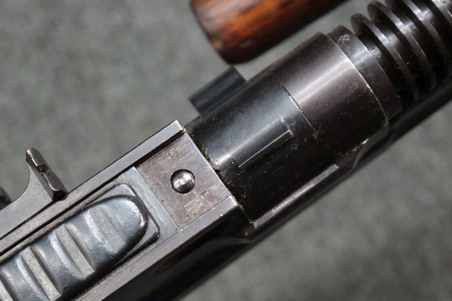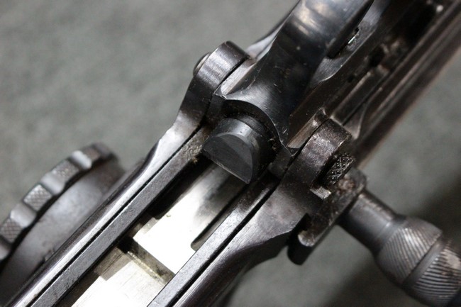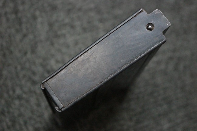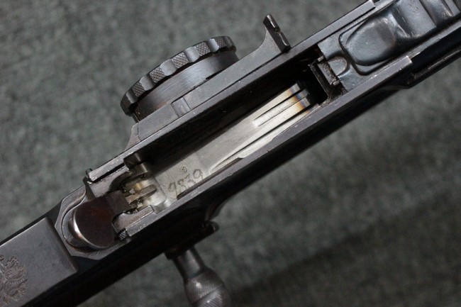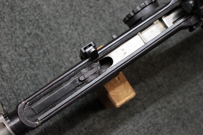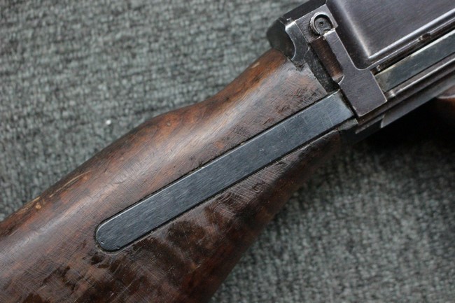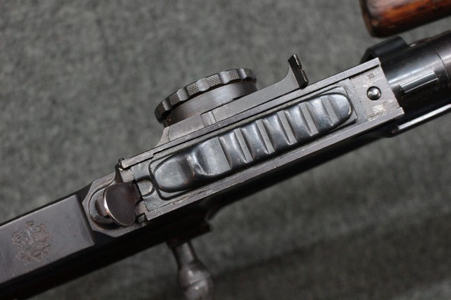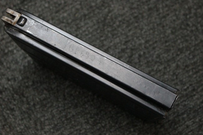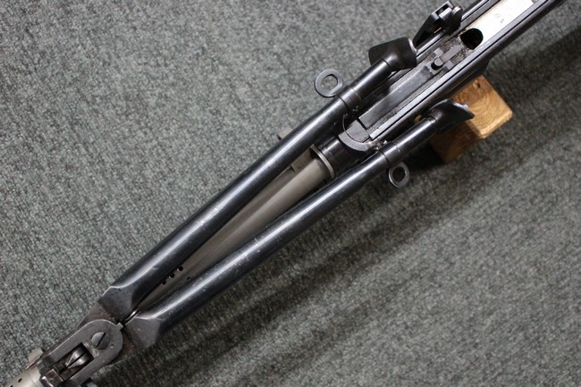 本品のレシーバーや銃身といった金属部は、若干の小傷や小錆、擦れ等は見られるものの、全体にオリジナルのブルー仕上げが比較的良好に残った状態が保たれています。 木製のグリップやバット・ストックについても、若干の打ち傷や線傷を除いて大きな破損や欠損等は見られません。 バット・プレート部についても、やや小傷や擦れ、若干の表面錆は見られるものの、目立った変形等は見られません。 排莢孔後方のケース・ディフレクターについても、目立った経年劣化等は見受けられず、適度な弾力が保たれています。 マガジン挿入孔及び排莢孔カバーの開閉、二脚やショルダー・レストの展開操作については問題なく行う事が可能です。 リア・サイトをカチカチと調整する際に目盛りの数字の一部が隠れ気味ですが機能に問題はありません。 また二脚の伸縮についてはスムーズで、捻じ込みによるロックは掛かります。 セレクター・レバーの切り替えについても問題なく行う事が可能ですが、トリガーとの連動はありません。 付属のマガジンは背面には〇にHKの刻印やケガキにより08979と書かれている他、フォロワー先端にはアムト刻印が確認出来ます。 マガジンは若干の小傷や擦れ、打ち傷等は見られるものの、目立った変形等は見られず、オリジナルのブルー仕上げも良好に残っています。 マガジン・スプリングは入っています。