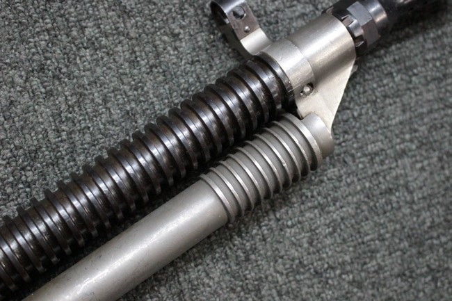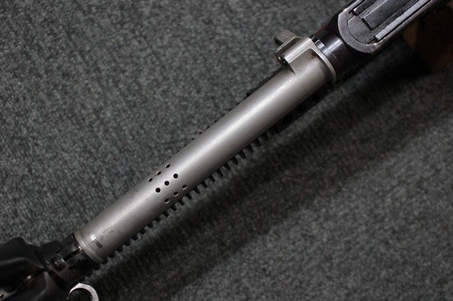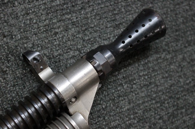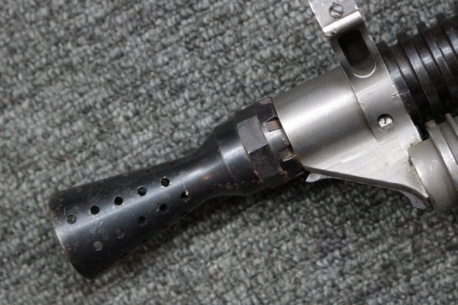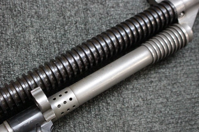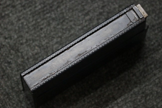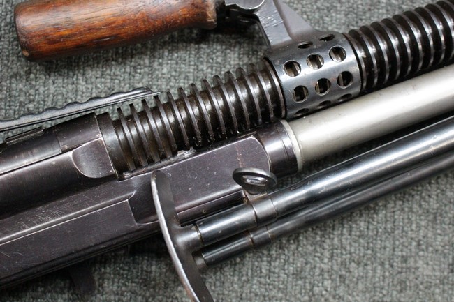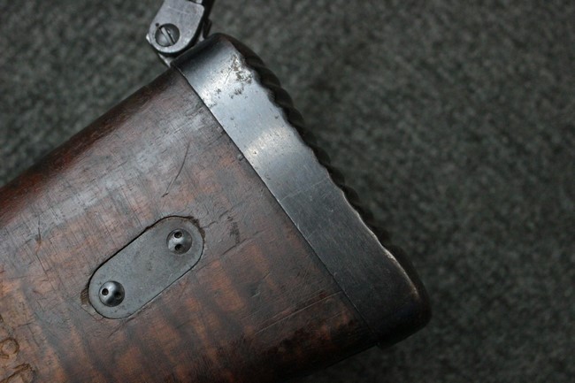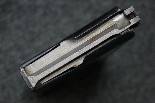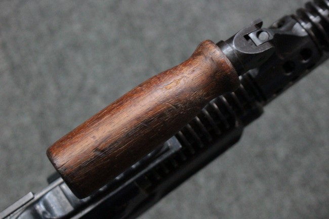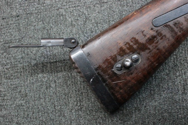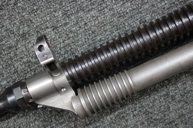 本品のレシーバーや銃身といった金属部は、若干の小傷や小錆、擦れ等は見られるものの、全体にオリジナルのブルー仕上げが比較的良好に残った状態が保たれています。 木製のグリップやバット・ストックについても、若干の打ち傷や線傷を除いて大きな破損や欠損等は見られません。 バット・プレート部についても、やや小傷や擦れ、若干の表面錆は見られるものの、目立った変形等は見られません。 排莢孔後方のケース・ディフレクターについても、目立った経年劣化等は見受けられず、適度な弾力が保たれています。 マガジン挿入孔及び排莢孔カバーの開閉、二脚やショルダー・レストの展開操作については問題なく行う事が可能です。 リア・サイトをカチカチと調整する際に目盛りの数字の一部が隠れ気味ですが機能に問題はありません。 また二脚の伸縮についてはスムーズで、捻じ込みによるロックは掛かります。 セレクター・レバーの切り替えについても問題なく行う事が可能ですが、トリガーとの連動はありません。 付属のマガジンは背面には〇にHKの刻印やケガキにより08979と書かれている他、フォロワー先端にはアムト刻印が確認出来ます。 マガジンは若干の小傷や擦れ、打ち傷等は見られるものの、目立った変形等は見られず、オリジナルのブルー仕上げも良好に残っています。 マガジン・スプリングは入っています。