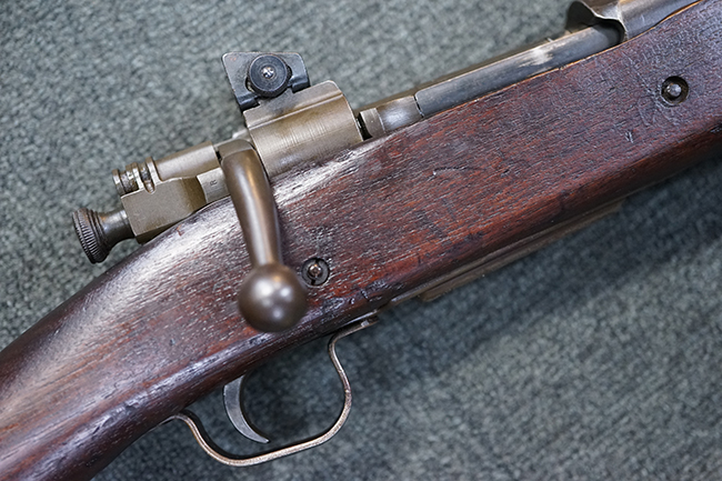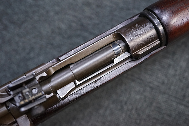 M1903A3はM1903ライフルの簡易生産型で、大戦中に開発されました。 トリガー・ガード・ハウジングが従来の削り出しからプレス加工に変更された他、リア・サイトがM1カービンの後期型に似た形状となりレシーバー・エンドに移されました。 省力化はライフリングにも及び、M1903A3では生産途中から2条のみに減らされました。