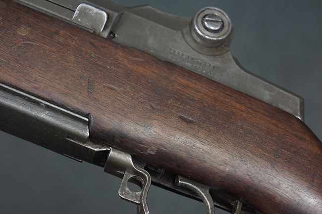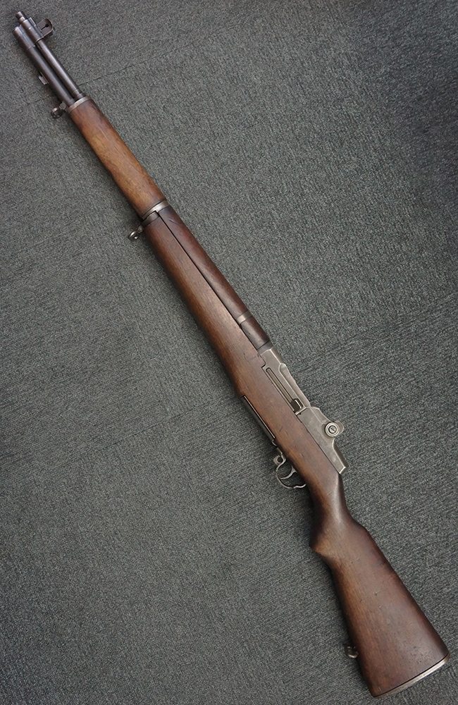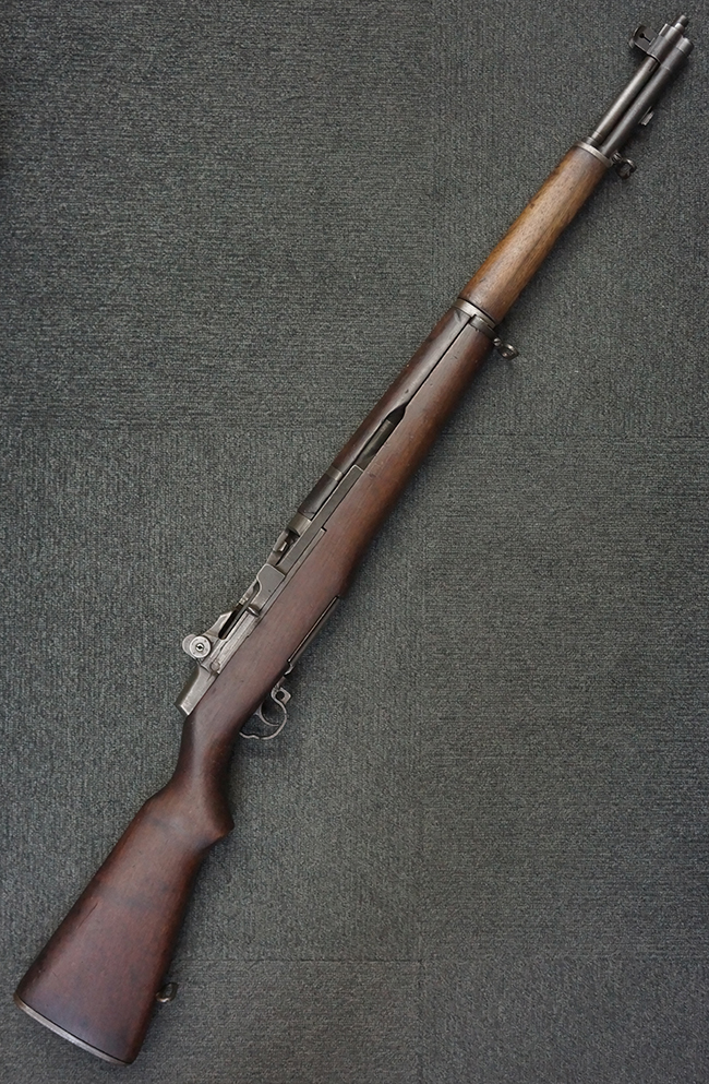 M1 ガーランドは、1936年に米軍制式となった自動小銃で、開発者ジョン・C・ガーランドの名前から「ガーランド・ライフル」と呼ばれています。 着脱式のマガジンではなく、8発の弾丸をまとめた特殊な装弾子 (エンブロック・クリップ) をそのまま装填する機構や、最終弾発射後にクリップが特有の金属音とともに自動排出されるシステムなど、自動小銃の黎明期から完成期への過渡期ならではの独創的かつ堅牢なメカニズムを備えていました。 M1 ガーランドの生産は1937年から始まりましたが、工作精度の要求が高かった事もあり、実際に量産体制が整ったのは1940年頃からです。 しかしながら、卓越した工業力を背景に1945年の第二次世界大戦終結までにスプリングフィールド造兵廠およびウィンチェスター社で計400万挺以上が製造され、大戦中の米軍歩兵部隊における圧倒的な火力を支えました。 更にその後の朝鮮戦争時にはインターナショナル・ハーベスター (International Harvester) 社やハーリントン & リチャードソン (Harrington & Richardson (H&R)) 社も加わり、約140万挺が追加製造されました。 当時、世界的にボルトアクション・ライフルが主力であった時代に、自動小銃を全軍に配備できたのはアメリカの強大な国力の象徴といえます。