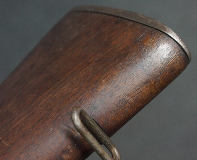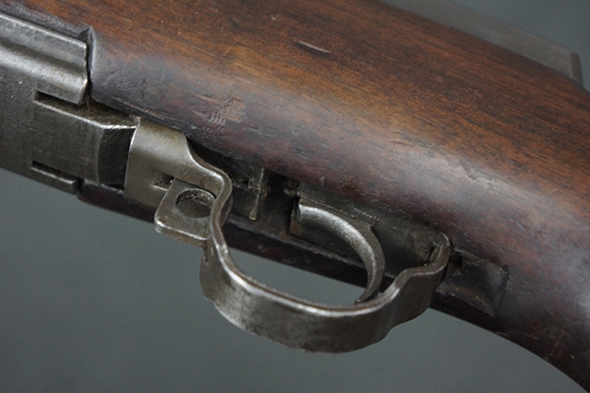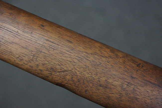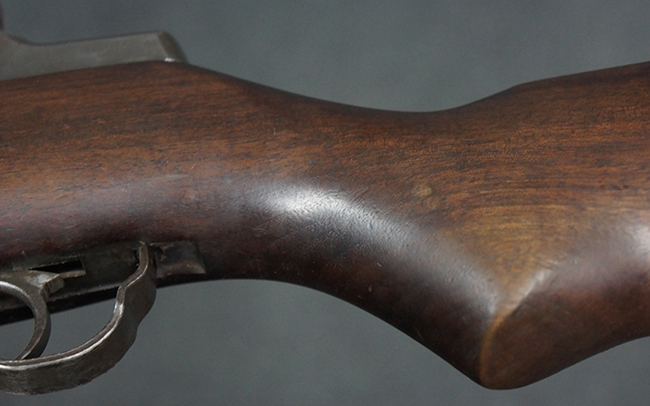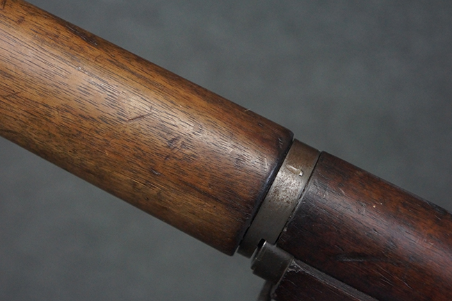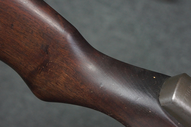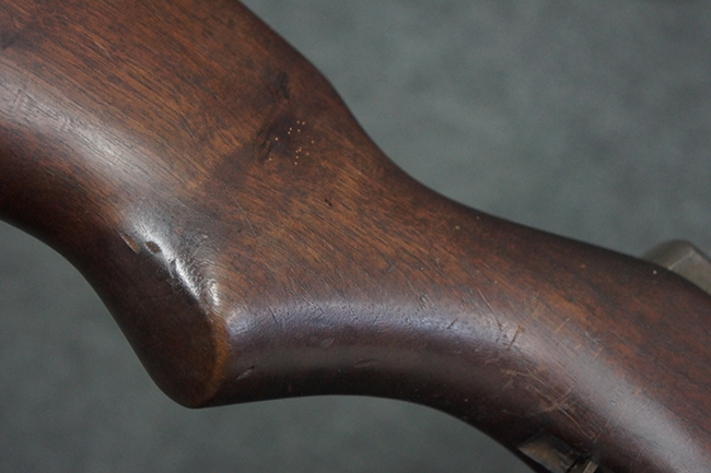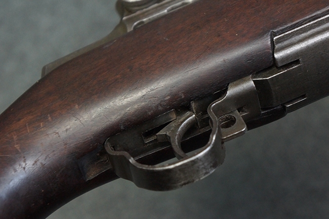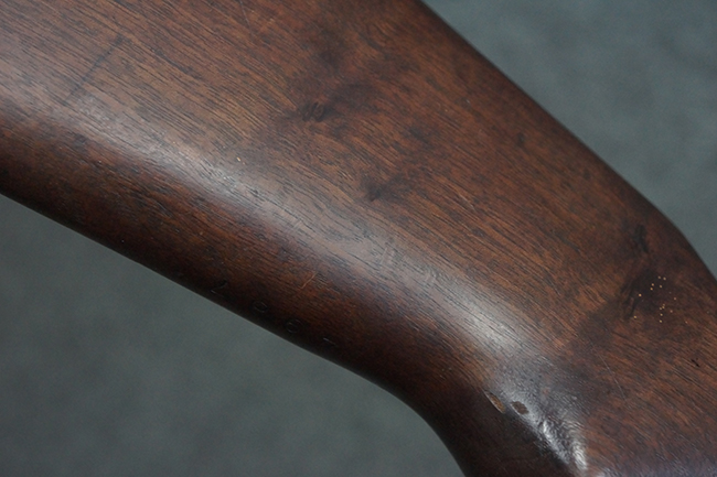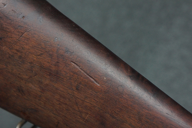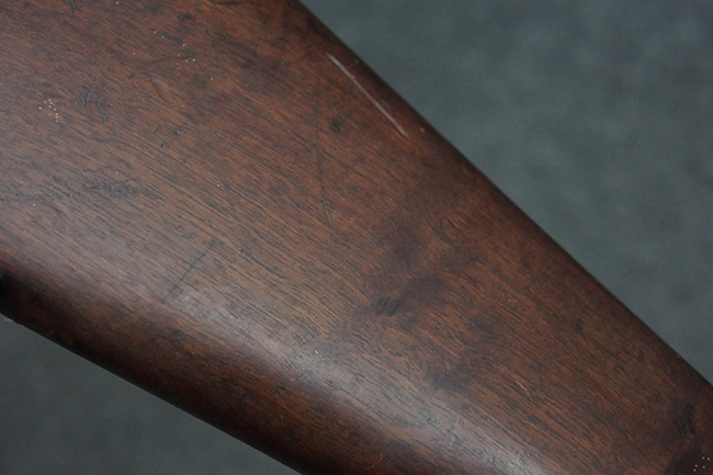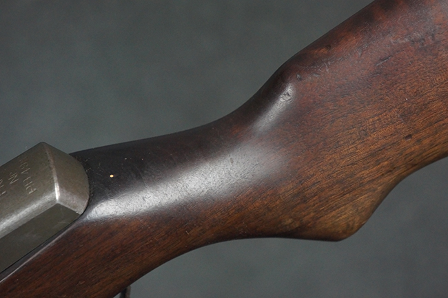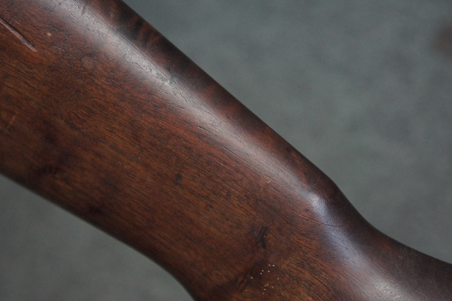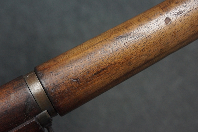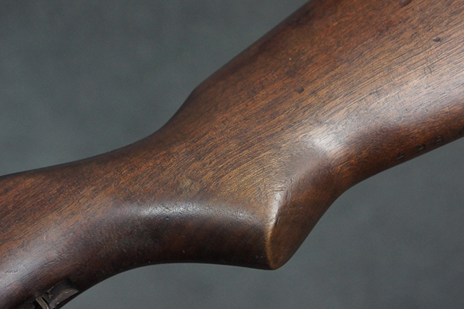 本品は全体にやや使用感が見受けられ、金属部は打ち傷や経年による褪色、表面錆の他、一部に仕上げが落ちて金属の地肌が合われている箇所が見受けられるものの、現状目立った欠損等は見受けられず、概ねしっかりとした状態が保たれています。 木製銃床についても、やや打ち傷や線傷が見られる他、フロント・ハンドガード下部等に僅かな欠けが見受けられるものの、全体としては大きな破損等は見られません。 各部の取り付けについては現状目立ったがたつき等は見られません。 傷み易いバット・プレートは全体に仕上げが落ちて、やや打ち傷や時代錆が表れているものの、大きな変形などは見られず、ストック内コンパートメントの蓋の開閉についても問題なく行う事が可能です。 リア・サイトの調整については問題なく行う事が可能です。 セーフティ・レバーの切り替えも可能ですが、トリガーとの連動等はありません。