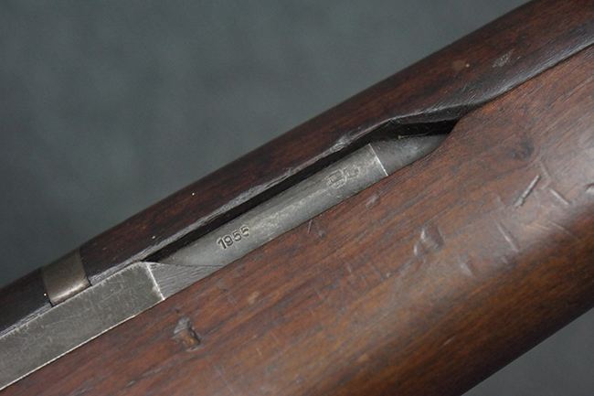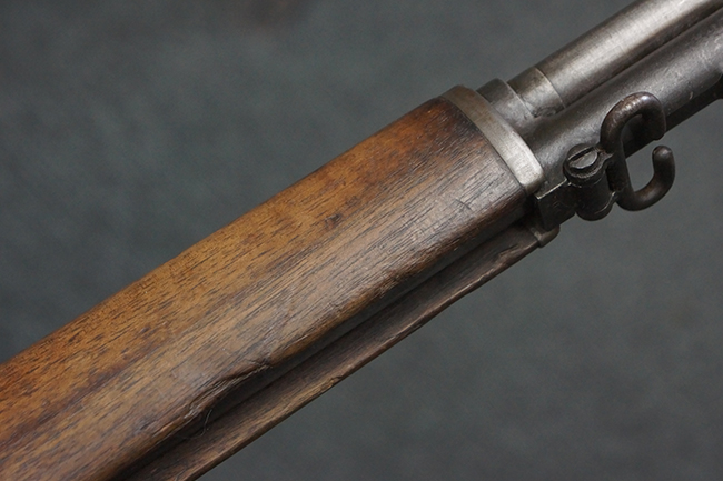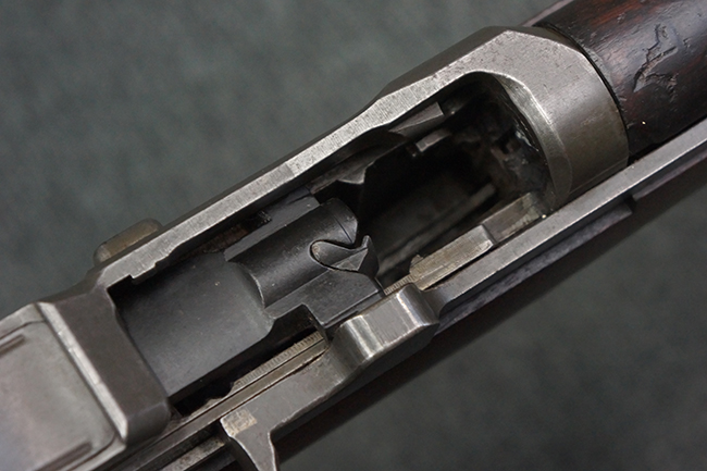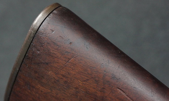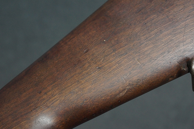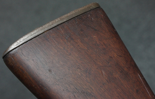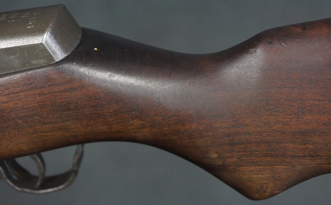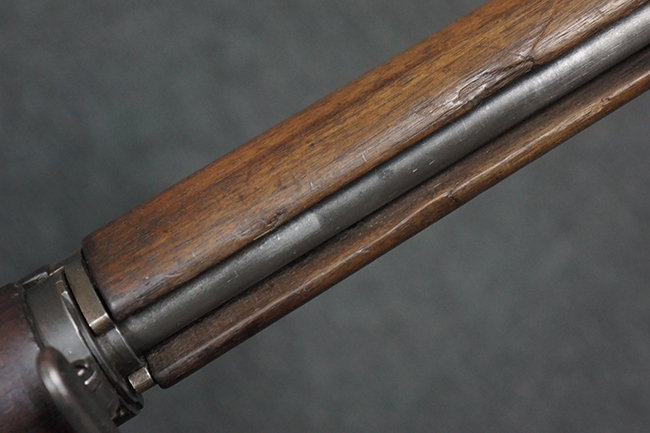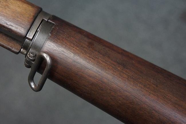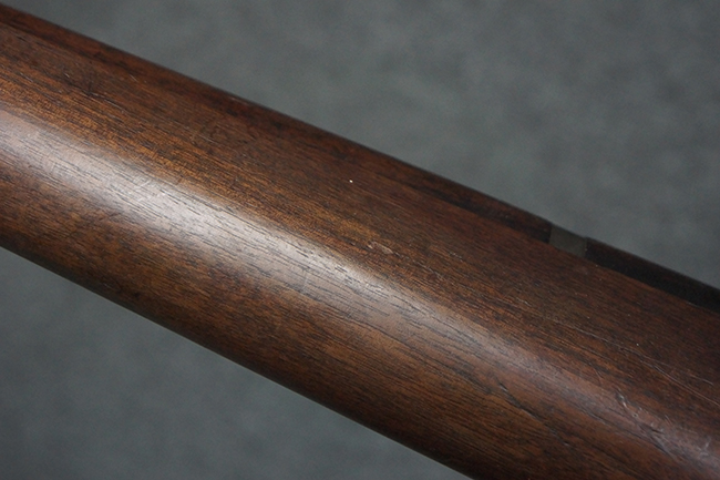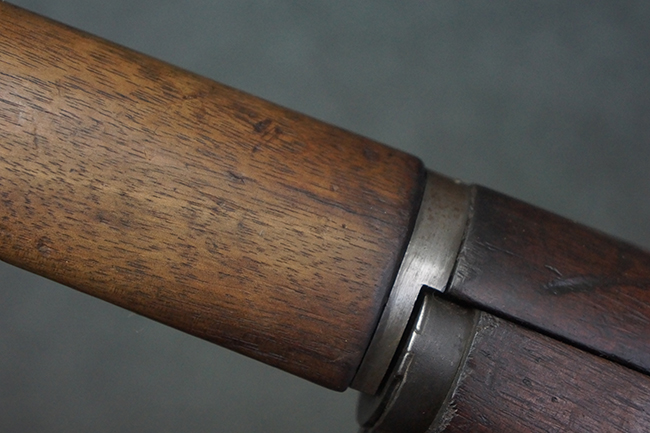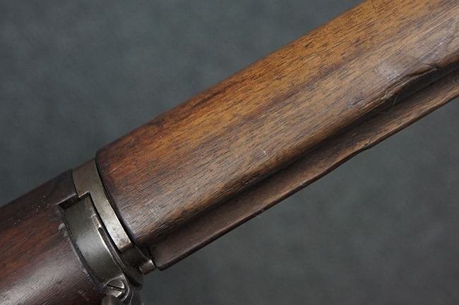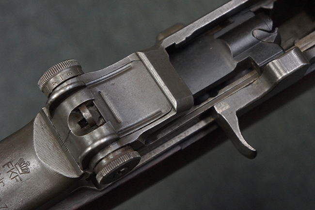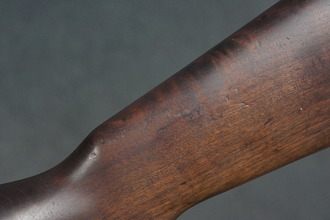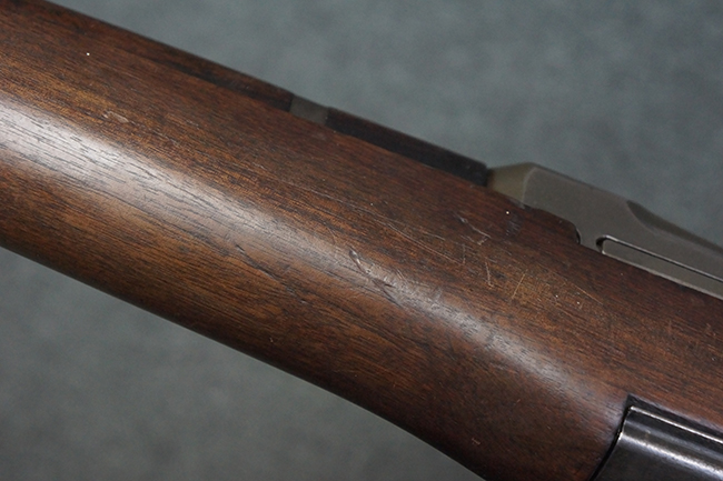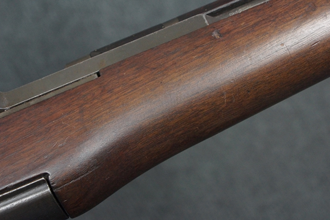 本品は全体にやや使用感が見受けられ、金属部は打ち傷や経年による褪色、表面錆の他、一部に仕上げが落ちて金属の地肌が合われている箇所が見受けられるものの、現状目立った欠損等は見受けられず、概ねしっかりとした状態が保たれています。 木製銃床についても、やや打ち傷や線傷が見られる他、フロント・ハンドガード下部等に僅かな欠けが見受けられるものの、全体としては大きな破損等は見られません。 各部の取り付けについては現状目立ったがたつき等は見られません。 傷み易いバット・プレートは全体に仕上げが落ちて、やや打ち傷や時代錆が表れているものの、大きな変形などは見られず、ストック内コンパートメントの蓋の開閉についても問題なく行う事が可能です。 リア・サイトの調整については問題なく行う事が可能です。 セーフティ・レバーの切り替えも可能ですが、トリガーとの連動等はありません。