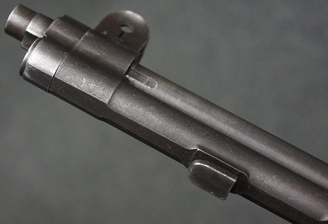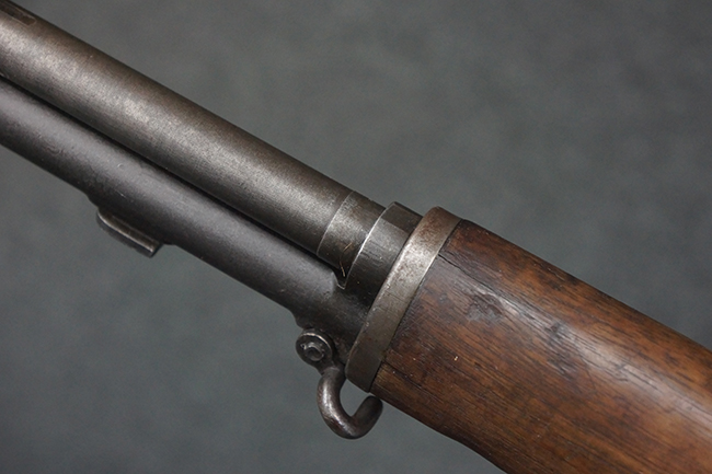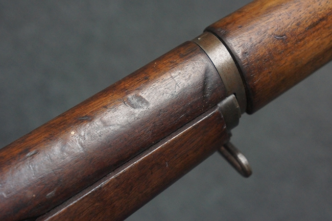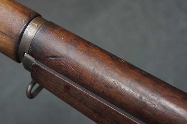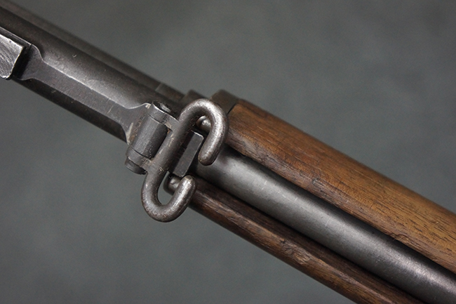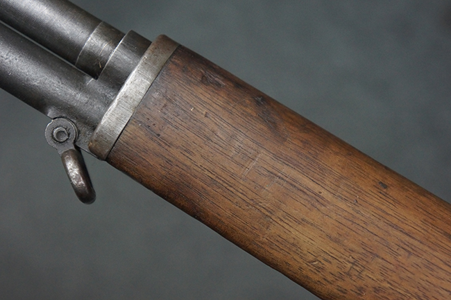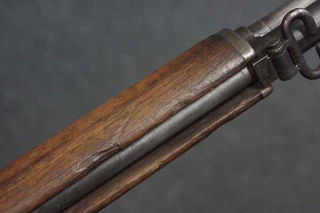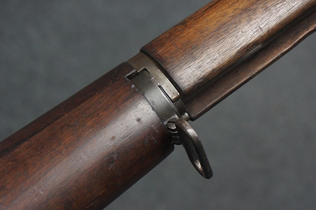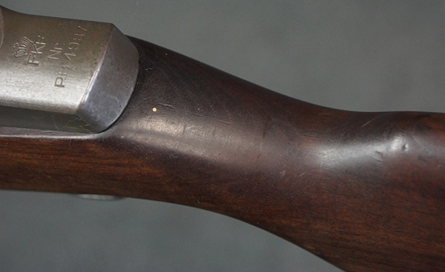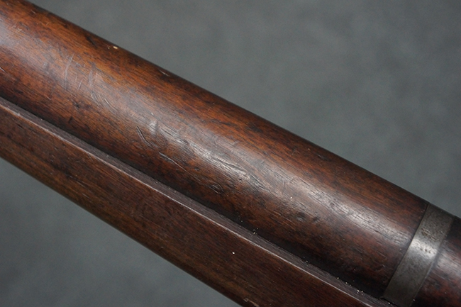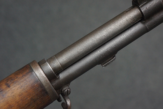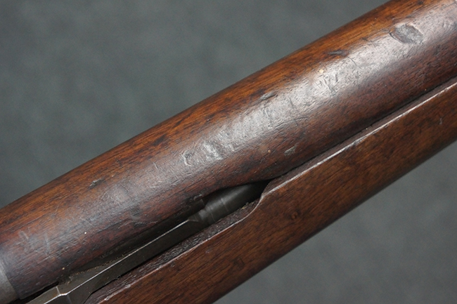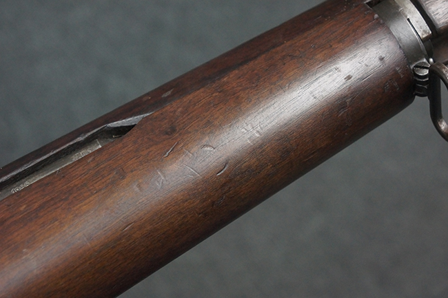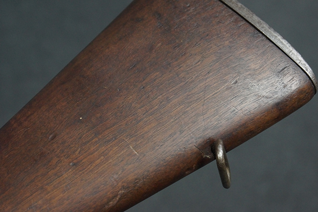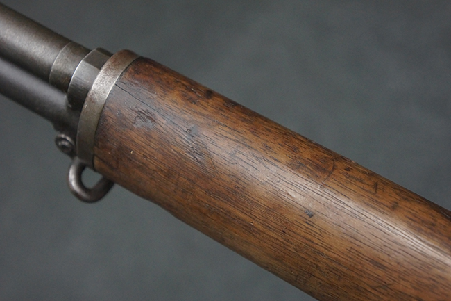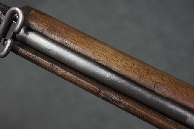 本品は全体にやや使用感が見受けられ、金属部は打ち傷や経年による褪色、表面錆の他、一部に仕上げが落ちて金属の地肌が合われている箇所が見受けられるものの、現状目立った欠損等は見受けられず、概ねしっかりとした状態が保たれています。 木製銃床についても、やや打ち傷や線傷が見られる他、フロント・ハンドガード下部等に僅かな欠けが見受けられるものの、全体としては大きな破損等は見られません。 各部の取り付けについては現状目立ったがたつき等は見られません。 傷み易いバット・プレートは全体に仕上げが落ちて、やや打ち傷や時代錆が表れているものの、大きな変形などは見られず、ストック内コンパートメントの蓋の開閉についても問題なく行う事が可能です。 リア・サイトの調整については問題なく行う事が可能です。 セーフティ・レバーの切り替えも可能ですが、トリガーとの連動等はありません。