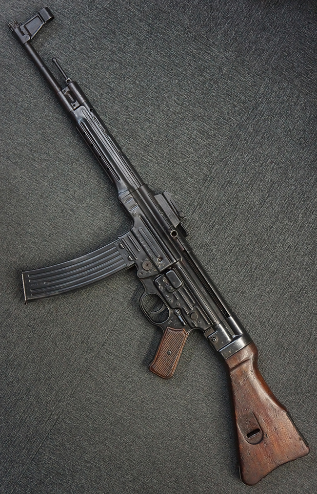 第二次世界大戦中のドイツで開発された、セミ/フル・オートマチック射撃の切り替えが可能な自動小銃です。