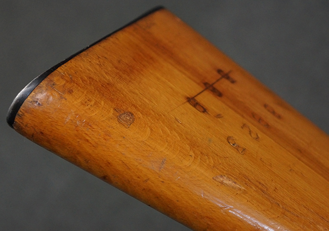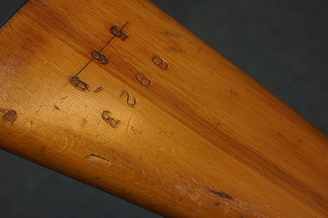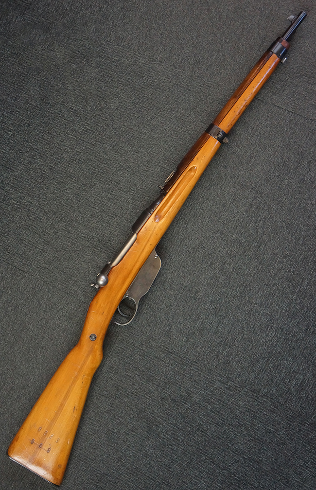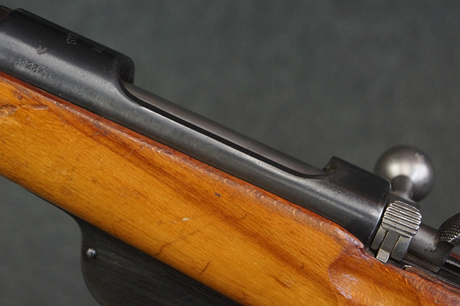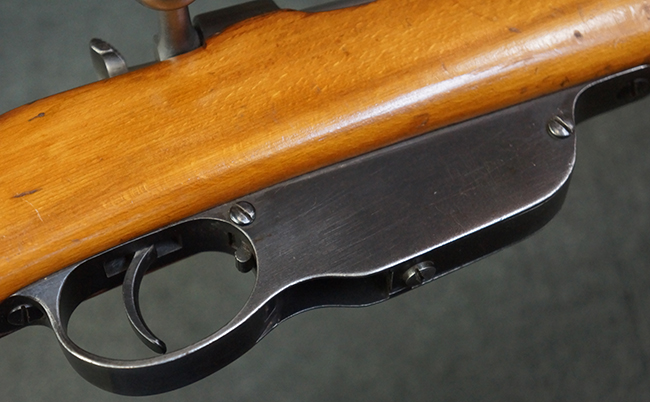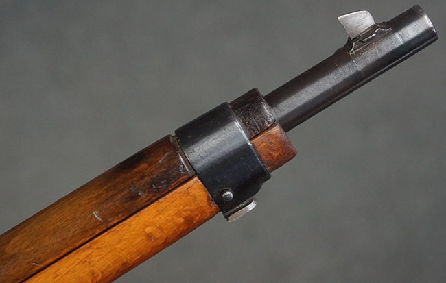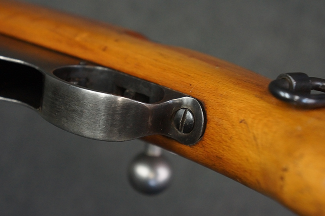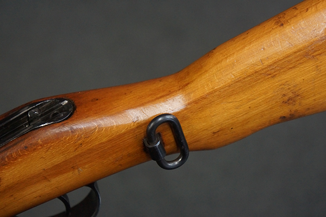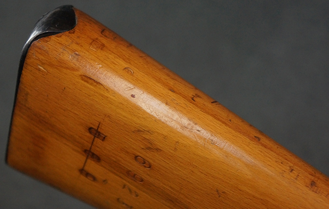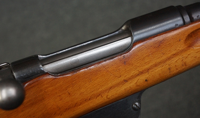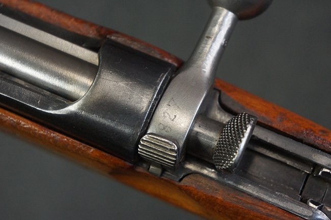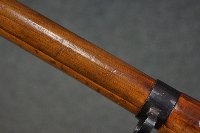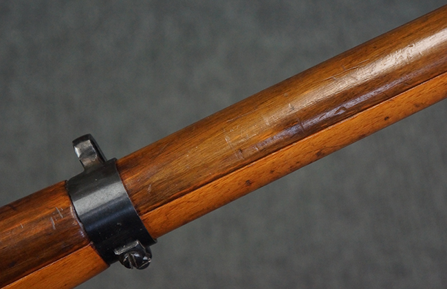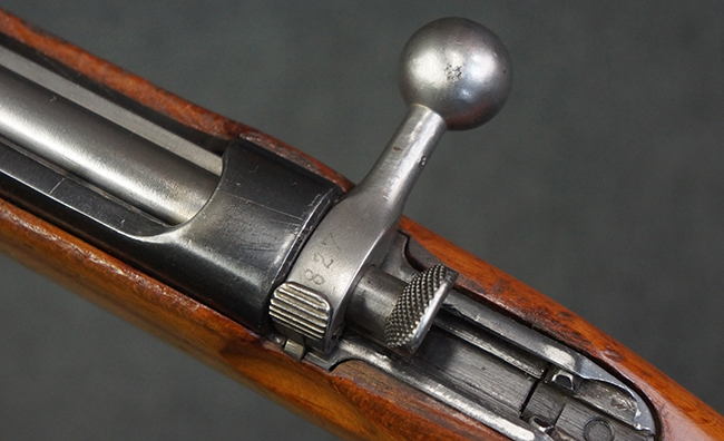 本品はステアー・マンリッカー M95 騎兵銃ベースのM95/30 騎兵銃で、薬室上面に尖頭弾仕様である事を示す「S」の刻印が打刻されています。 機関部上面には「STEYR」の刻印及び「M.95」の刻印が入っています。 また、薬室上面にはWiener-Neustadtを示す「W-n」と「19」と思われる数字を組み合わせた軍の受領刻印が入っています。 シリアルNo.は、機関部、銃身が6923Xでマッチしており、バット・ストックも打ち直しにより6923、フロント・バンドが23、ボルト・ハンドルは手書きにより827となっています。