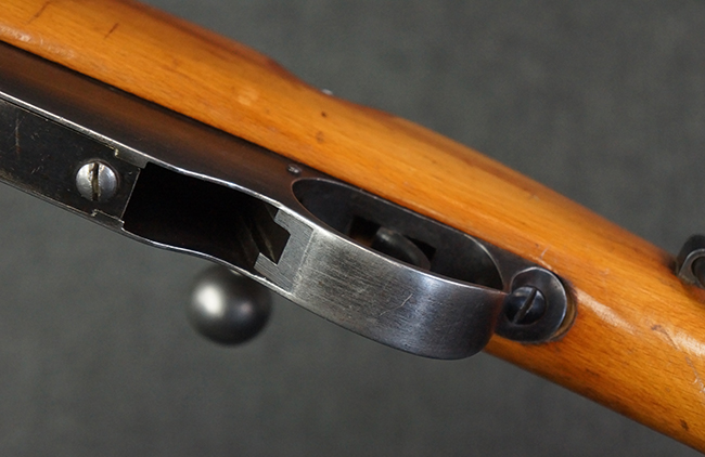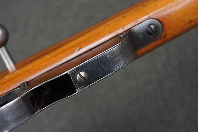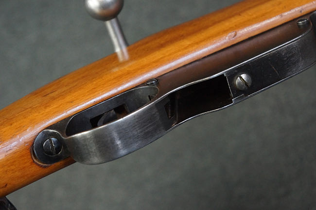 マンリッカー M95 小銃は、一般的な回転式のボルト・アクション機構ではなくストレート・プル式を採用しており、弾薬装填は5発の8mm×50R弾をクリップごと機関部上部から装填するユニークな構造となっていました。 弾薬をクリップと共に装填すると、クリップ・キャッチにより上方へのクリップの戻りが防止され、残弾が有る間は弾薬を送弾するスプリングのテンションによりクリップが保持されます。 本体内に残弾が無くなると、クリップにバネのテンションが掛からなくなり、本体下部のクリップ排出孔から落下するシステムとなっていました。