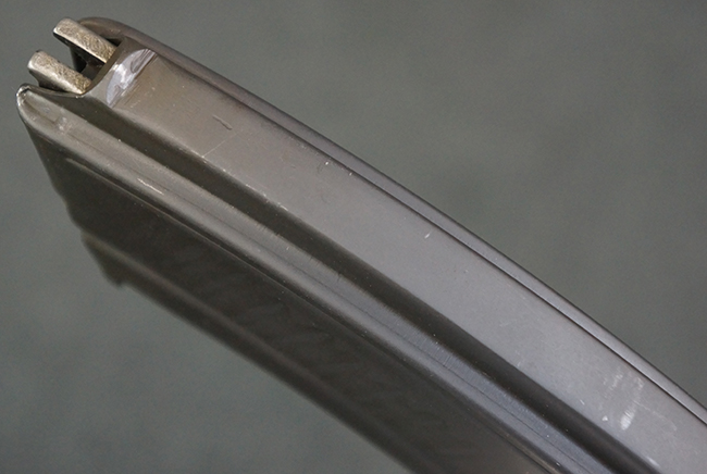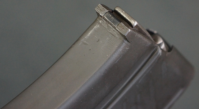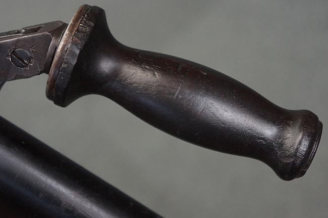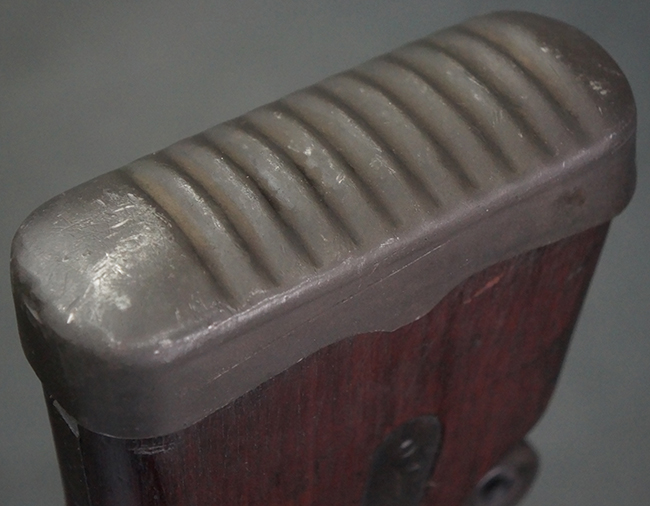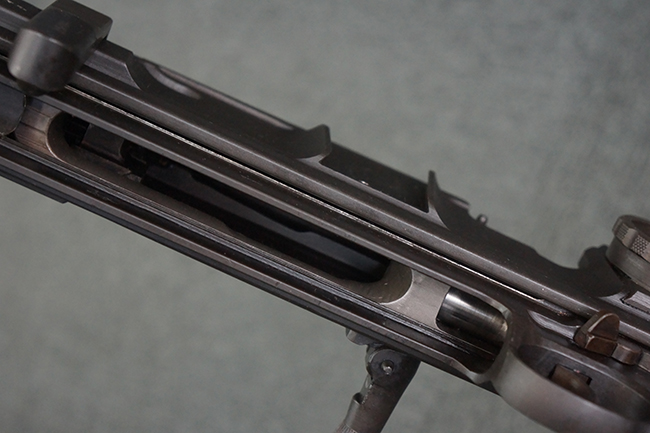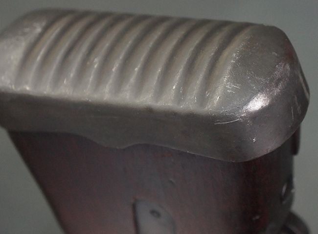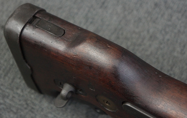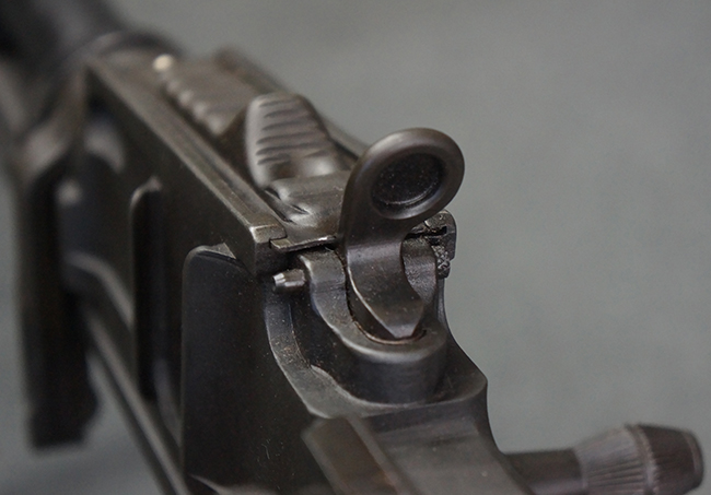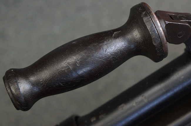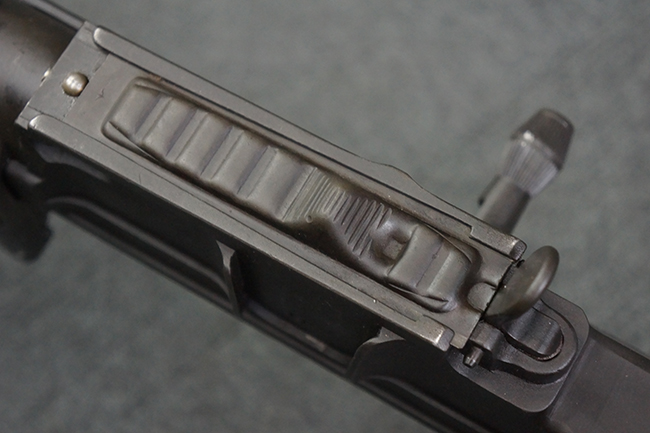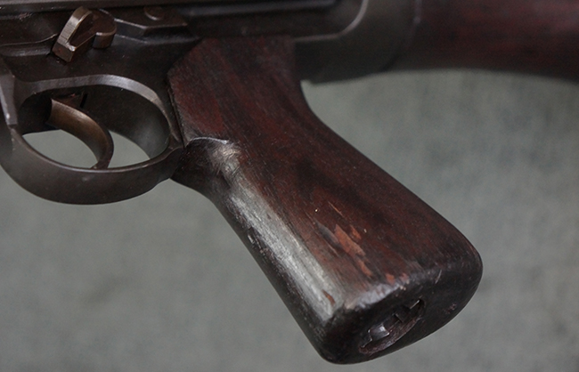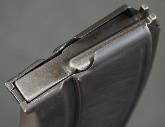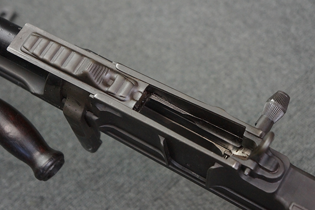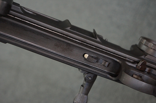 本品の機関部は再整備時のものと思われるパーカー仕上げとなっており、やや小傷や擦れは見られるものの、目立った欠損等は見られず、概ねしっかりとした状態が保たれています。 銃身は黒色焼き付け塗装仕上げとなっており、やや打ち傷や部分的な塗装の剥落が見受けられます。 木製のキャリング・ハンドルやグリップ、バット・ストックについては、やや打ち傷や線傷、表面的な欠けが見られる他は大きな破損等も見られず、比較的良好な状態が保たれています。 二脚の展開/伸縮やダイヤル・サイトの調整、排莢孔及びマガジン取り付け部のダスト・カバーの開閉、キャリング・ハンドルの角度変更、セレクター・レバーの切り替え、マガジンの着脱については問題なく行う事が可能です。 付属のマガジンについては、若干の小傷や擦れを除いて目立った凹みや変形等は見受けられず、概ね良好な状態が保たれています。 尚、マガジン・スプリングは入っています。