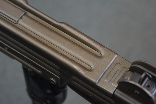 この方式はテレスコーピング・ボルトと呼ばれ、1948年にチェコで登場したVz.23 (24/25/26) 短機関銃のデザインをそのまま借用した物でしたが、西側諸国でのVzシリーズの知名度が全く無かった事も幸いし、それまでにない革新的な短機関銃として、世界各国の軍、法務執行機関の関心を惹き、各種の改良を加えられながら現在に至るまで90ヶ国以上に輸出、採用されています。