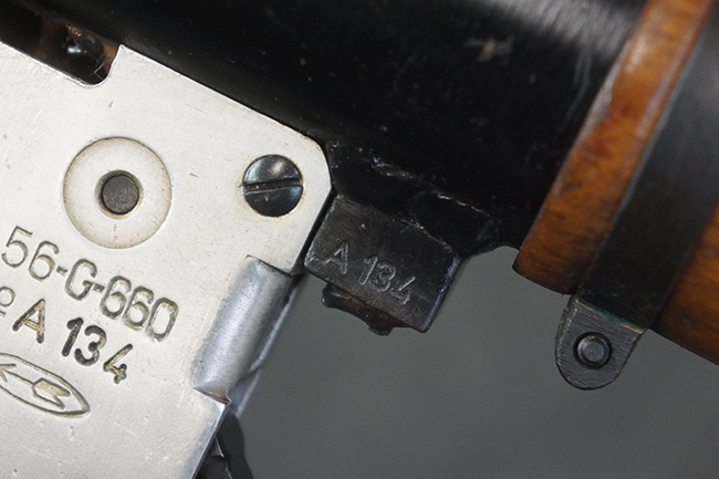 本品のトリガー・ハウジング左側面にはシリアルNo.A134の刻印が入っています。