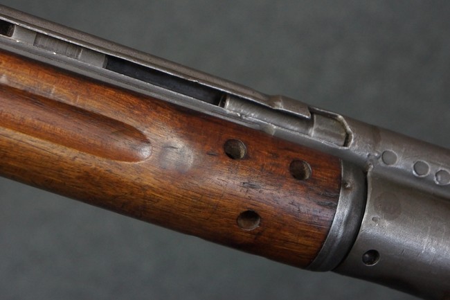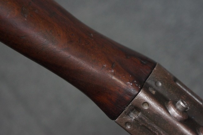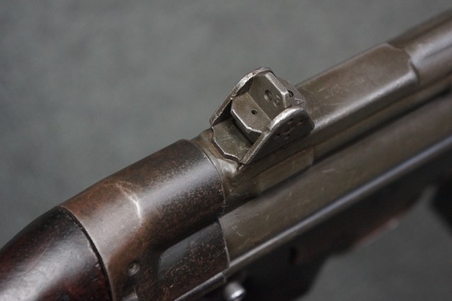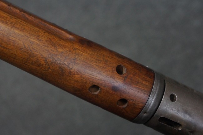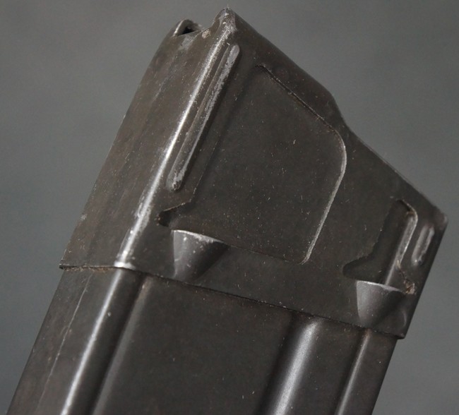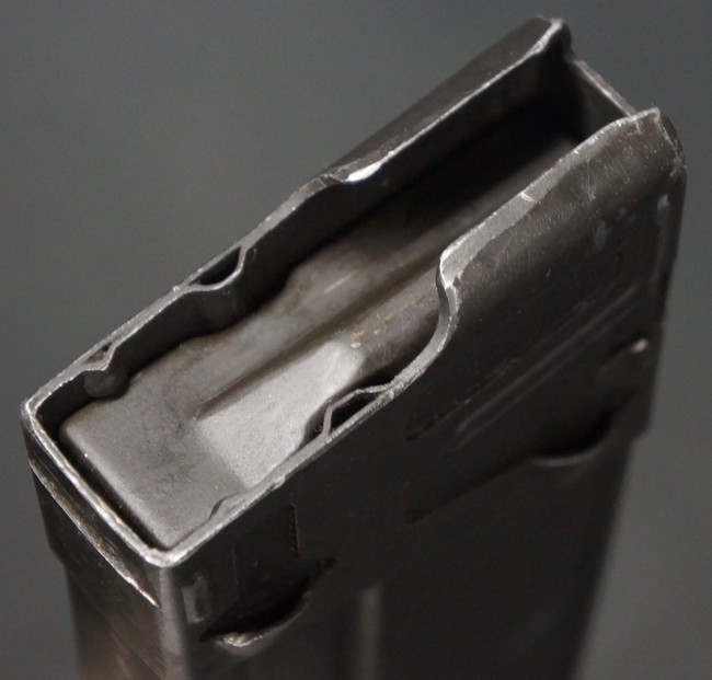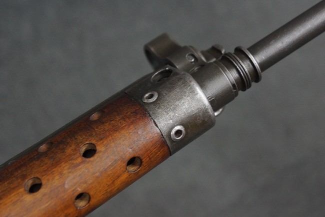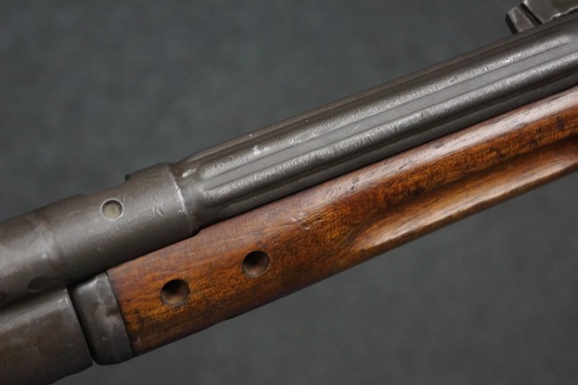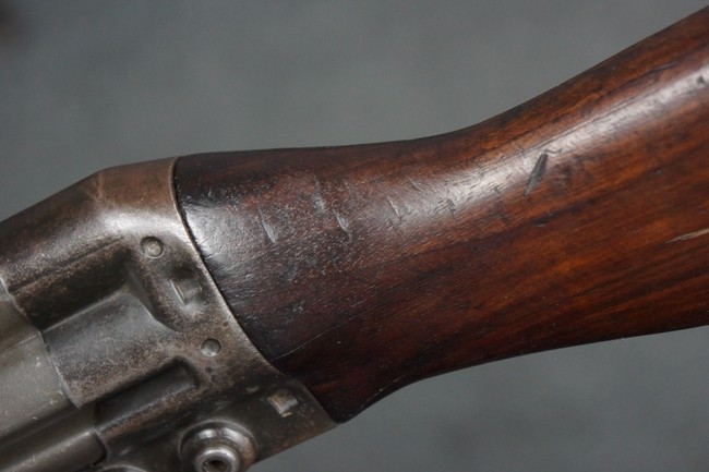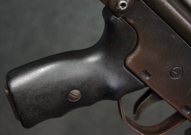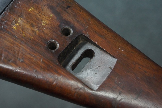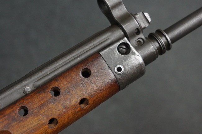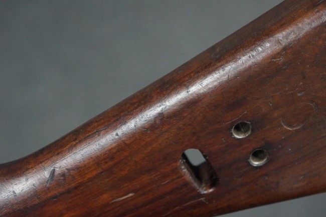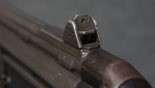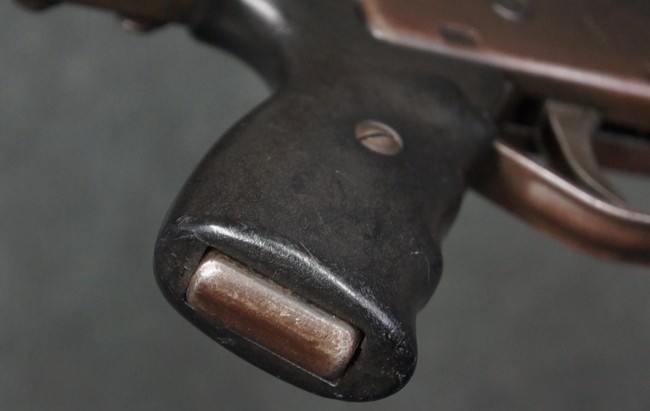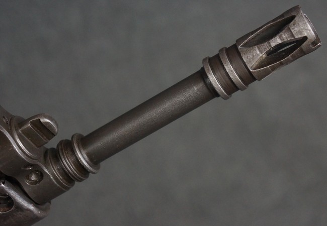 本品は全体に使い込まれたコンディションとなっており、銃身や機関部といった金属部は、全体にやや仕上げが薄くなり、打ち傷や経年による褪色の他、仕上げが落ちて金属の地肌が表れている箇所や若干の表面錆が見られますが、大きな欠損等は見られず、概ねしっかりとした状態が保たれています。 木製のハンドガードやバット・ストックについても、やや打ち傷や線傷が見られる他、バット・ストック基部周辺にヘアライン・クラックが複数見受けられますが、強度的には比較的しっかりとした状態が保たれており、各部の取り付けについても現状目立ったがたつき等は見られません。 傷み易いゴム製のバット・プレート部については、やや打ち傷や若干の摩耗等が見られますが、大きな経年劣化は見受けられません。 樹脂製のグリップについてもやや小傷や擦れは見られるものの、大きな破損や欠損は見られず、取り付けについてもがたつきもなくしっかりとしています。 リア・サイトの切り替えやマガジンの着脱については問題なく行う事が可能です。 付属のマガジンについてもやや小傷や擦れは見られるものの、目立った凹みや変形等は見られず、オリジナルの仕上げも比較的残っています。 尚、マガジン・スプリングは入っていません。 マガジンは取り付け時にやや遊びが見られるものの、ロック自体はしっかりと掛かります。 セレクターの切り替えも可能ですが、トリガーとの連動等は有りません。