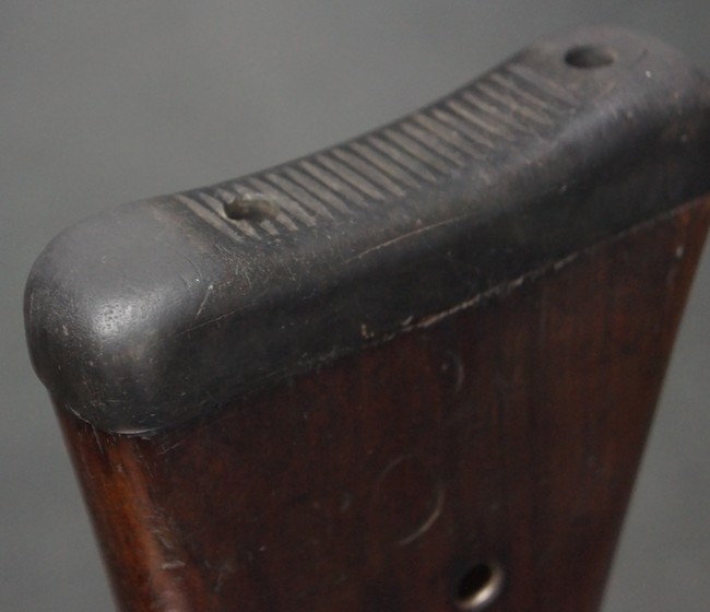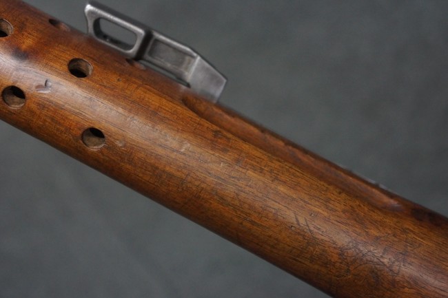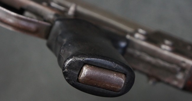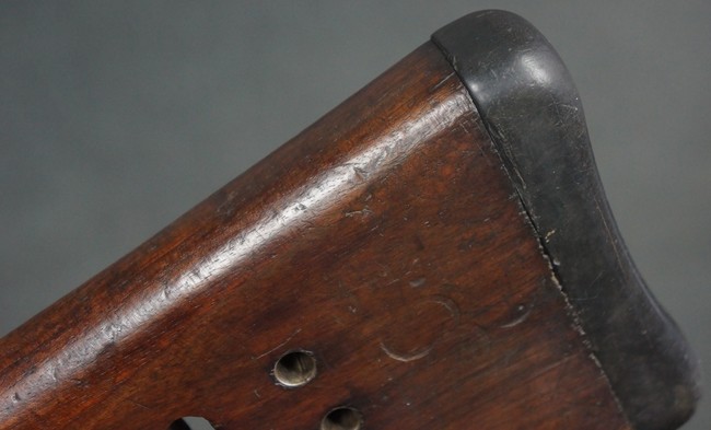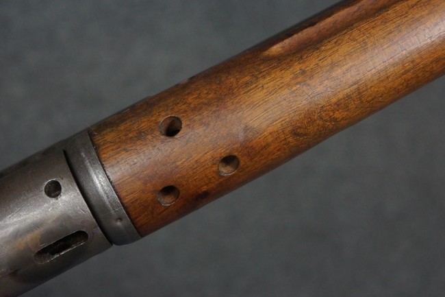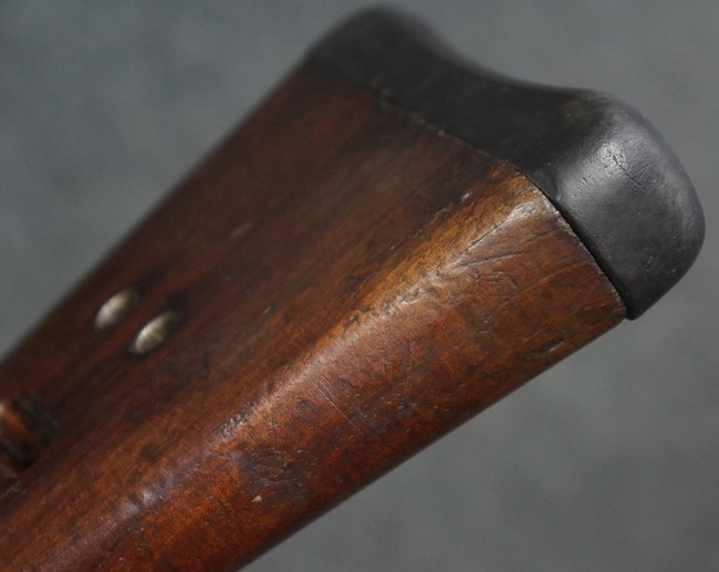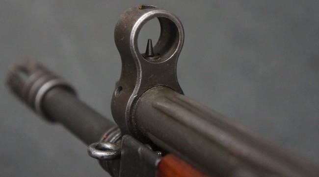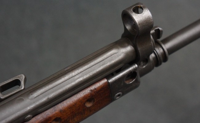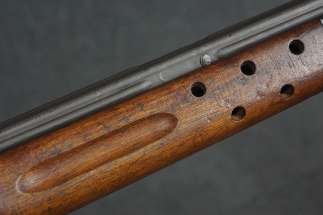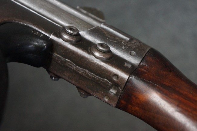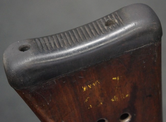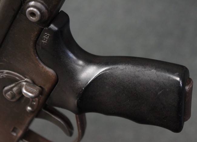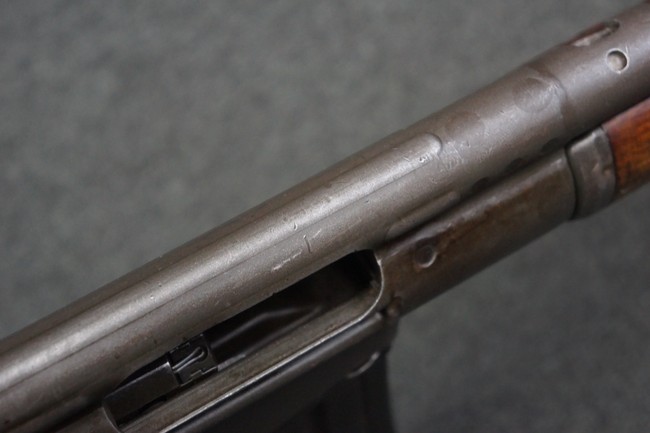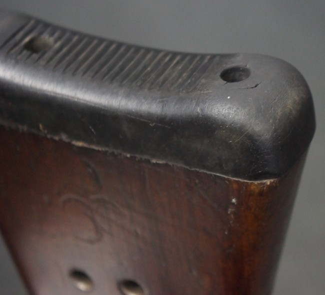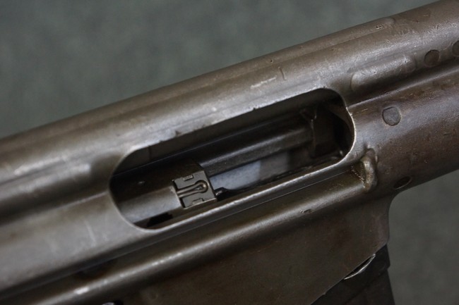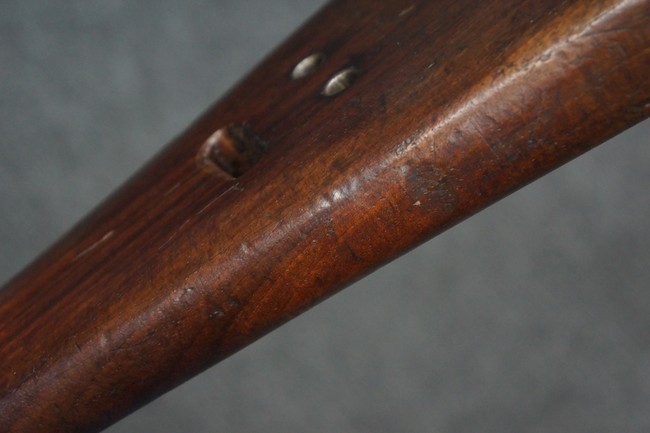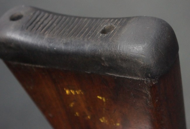 本品は全体に使い込まれたコンディションとなっており、銃身や機関部といった金属部は、全体にやや仕上げが薄くなり、打ち傷や経年による褪色の他、仕上げが落ちて金属の地肌が表れている箇所や若干の表面錆が見られますが、大きな欠損等は見られず、概ねしっかりとした状態が保たれています。 木製のハンドガードやバット・ストックについても、やや打ち傷や線傷が見られる他、バット・ストック基部周辺にヘアライン・クラックが複数見受けられますが、強度的には比較的しっかりとした状態が保たれており、各部の取り付けについても現状目立ったがたつき等は見られません。 傷み易いゴム製のバット・プレート部については、やや打ち傷や若干の摩耗等が見られますが、大きな経年劣化は見受けられません。 樹脂製のグリップについてもやや小傷や擦れは見られるものの、大きな破損や欠損は見られず、取り付けについてもがたつきもなくしっかりとしています。 リア・サイトの切り替えやマガジンの着脱については問題なく行う事が可能です。 付属のマガジンについてもやや小傷や擦れは見られるものの、目立った凹みや変形等は見られず、オリジナルの仕上げも比較的残っています。 尚、マガジン・スプリングは入っていません。 マガジンは取り付け時にやや遊びが見られるものの、ロック自体はしっかりと掛かります。 セレクターの切り替えも可能ですが、トリガーとの連動等は有りません。