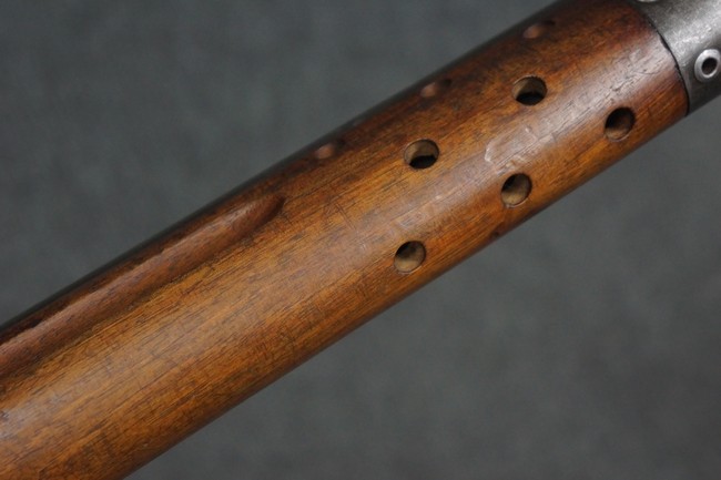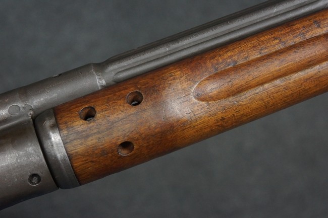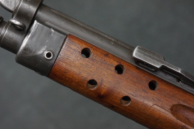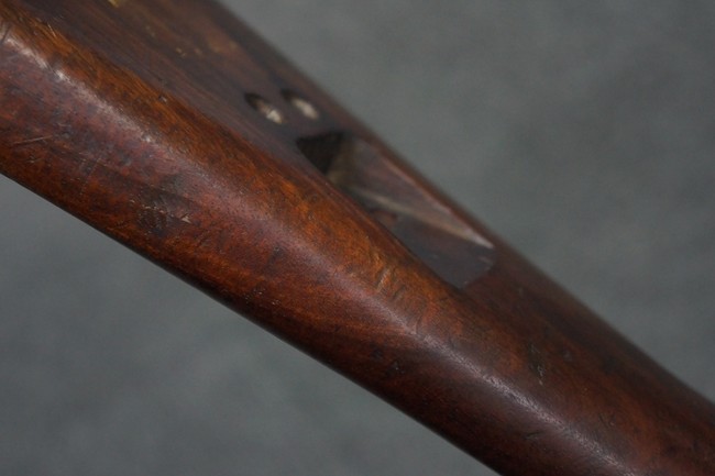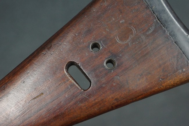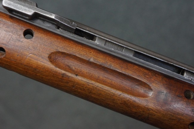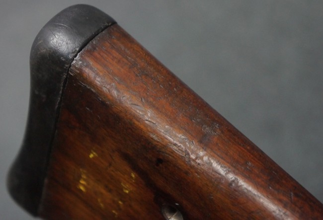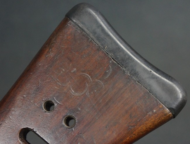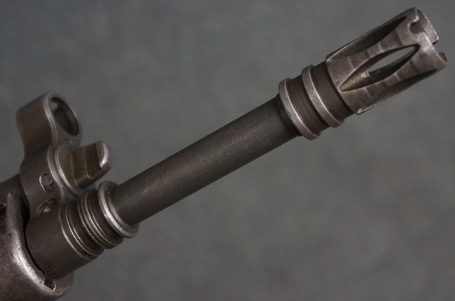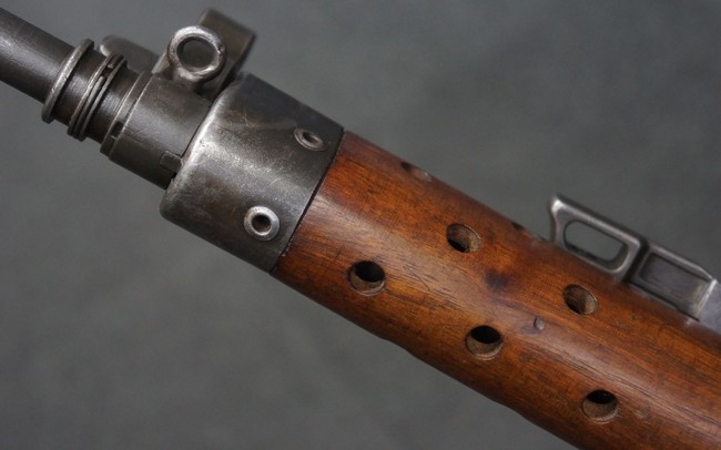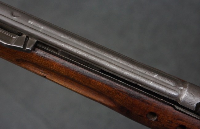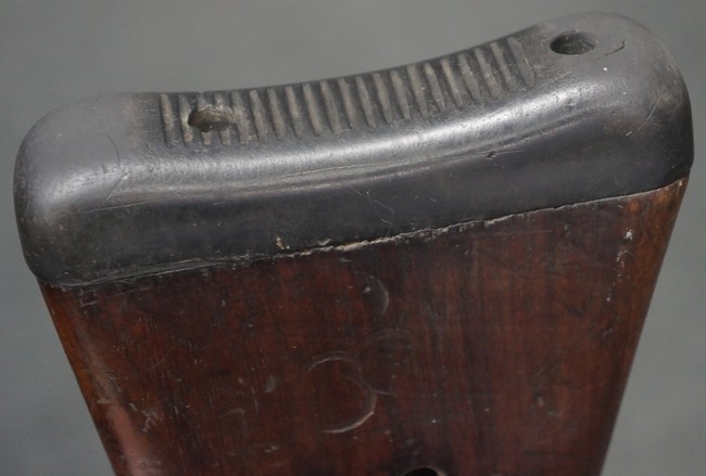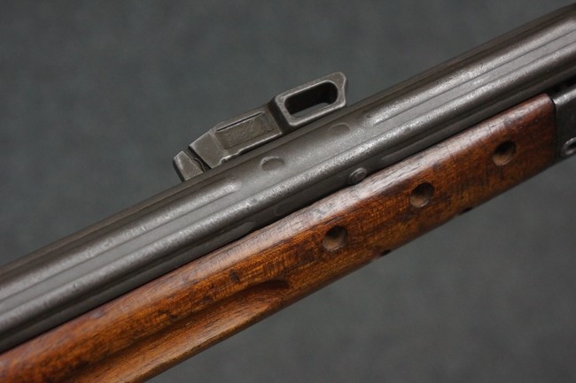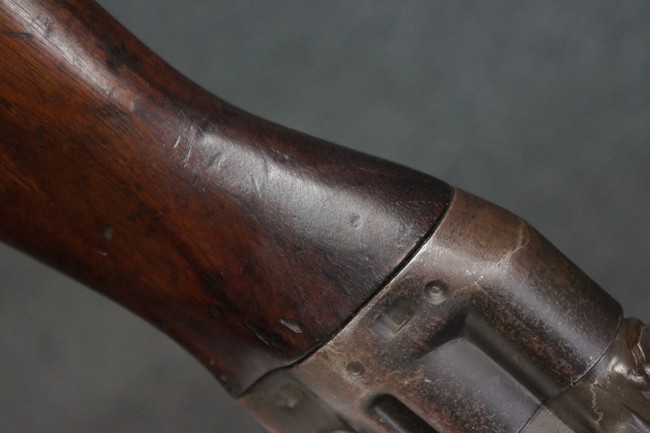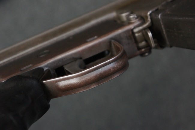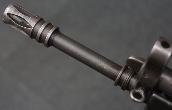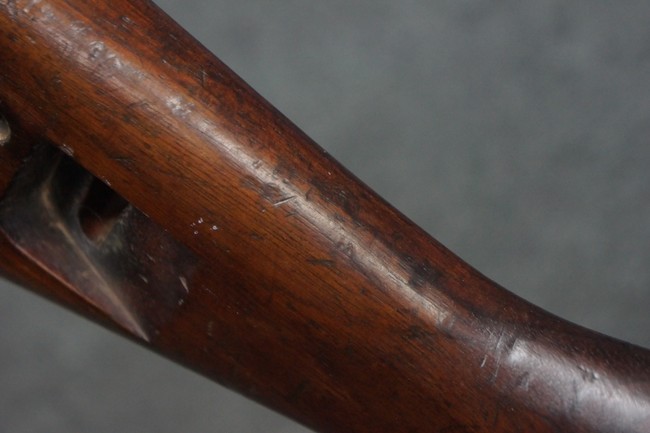 本品は全体に使い込まれたコンディションとなっており、銃身や機関部といった金属部は、全体にやや仕上げが薄くなり、打ち傷や経年による褪色の他、仕上げが落ちて金属の地肌が表れている箇所や若干の表面錆が見られますが、大きな欠損等は見られず、概ねしっかりとした状態が保たれています。 木製のハンドガードやバット・ストックについても、やや打ち傷や線傷が見られる他、バット・ストック基部周辺にヘアライン・クラックが複数見受けられますが、強度的には比較的しっかりとした状態が保たれており、各部の取り付けについても現状目立ったがたつき等は見られません。 傷み易いゴム製のバット・プレート部については、やや打ち傷や若干の摩耗等が見られますが、大きな経年劣化は見受けられません。 樹脂製のグリップについてもやや小傷や擦れは見られるものの、大きな破損や欠損は見られず、取り付けについてもがたつきもなくしっかりとしています。 リア・サイトの切り替えやマガジンの着脱については問題なく行う事が可能です。 付属のマガジンについてもやや小傷や擦れは見られるものの、目立った凹みや変形等は見られず、オリジナルの仕上げも比較的残っています。 尚、マガジン・スプリングは入っていません。 マガジンは取り付け時にやや遊びが見られるものの、ロック自体はしっかりと掛かります。 セレクターの切り替えも可能ですが、トリガーとの連動等は有りません。