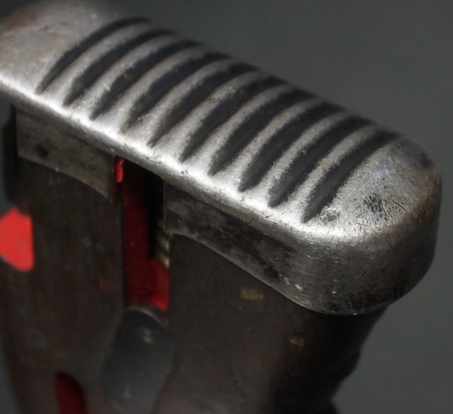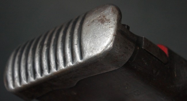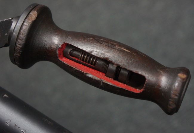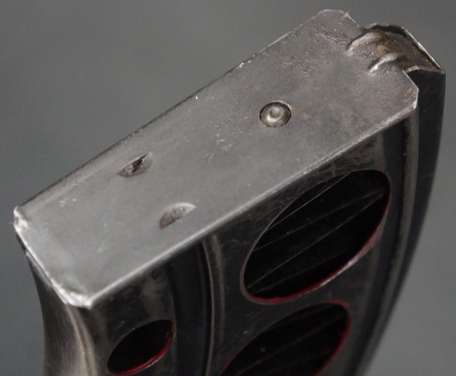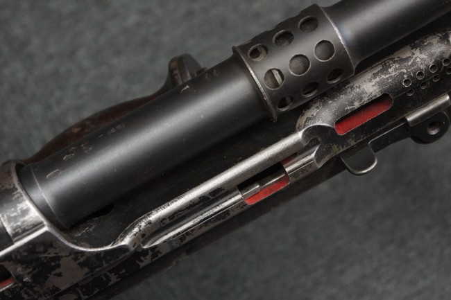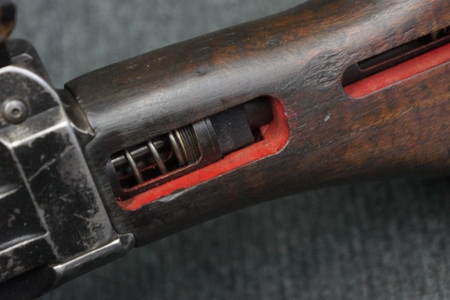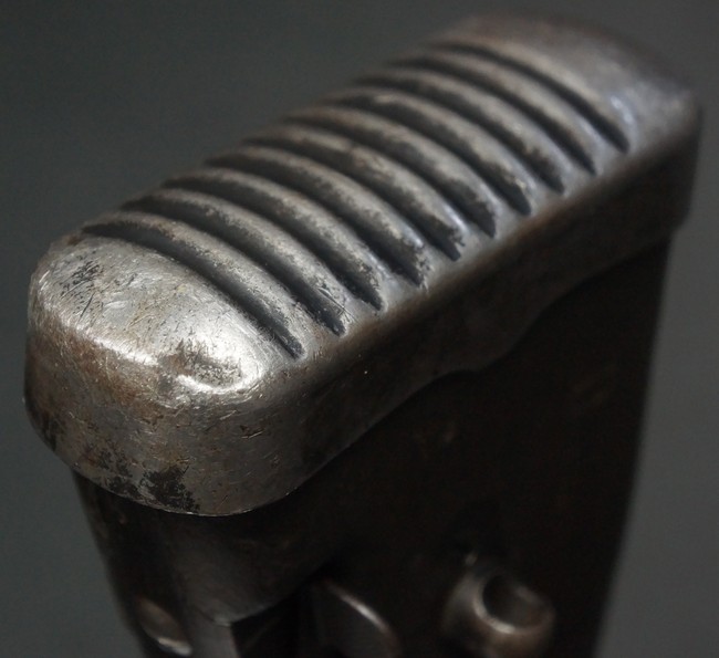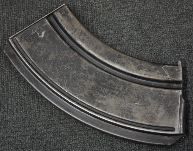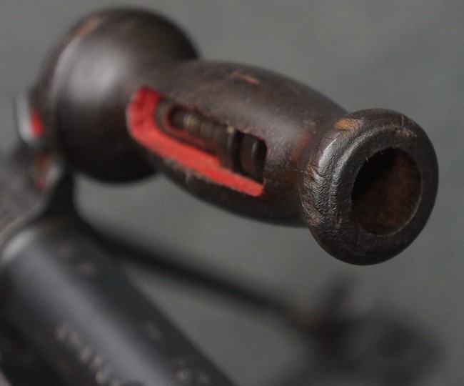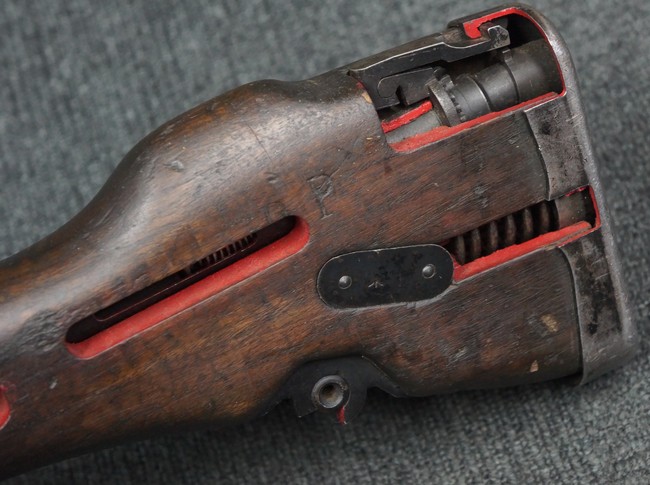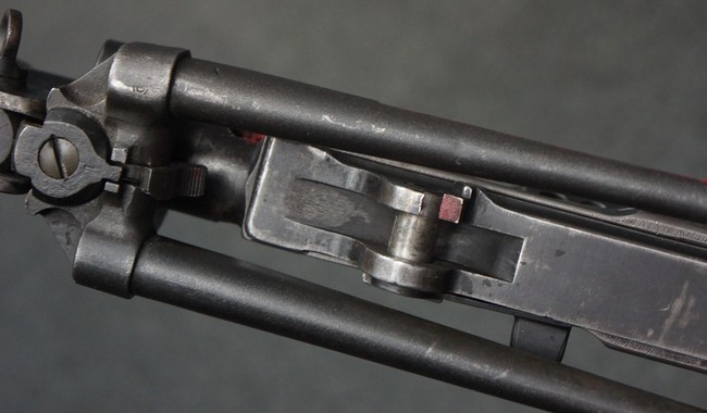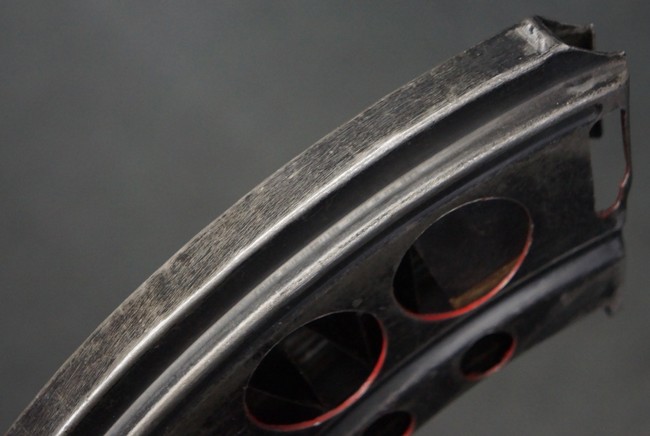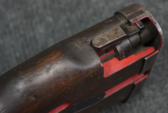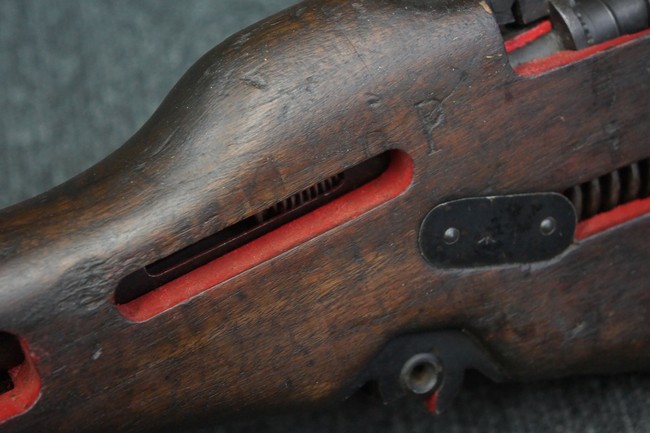 本品は全体に使い込まれたコンディションとなっており、銃身や機関部といった金属部は、やや打ち傷や仕上げの剥落が目立ち、金属の地肌が表れている箇所等も見受けられますが、目立った欠損等は見られず、概ねしっかりとした状態が保たれています。 木製のグリップやキャリング・ハンドル、バット・ストックについても、やや打ち傷や線傷、若干の欠けの他、グリップ基部やバット・ストック基部に一部ひびが見られるものの、こちらも比較的しっかりとした状態が保たれています。 バット・プレートに一部凹みが見られます。