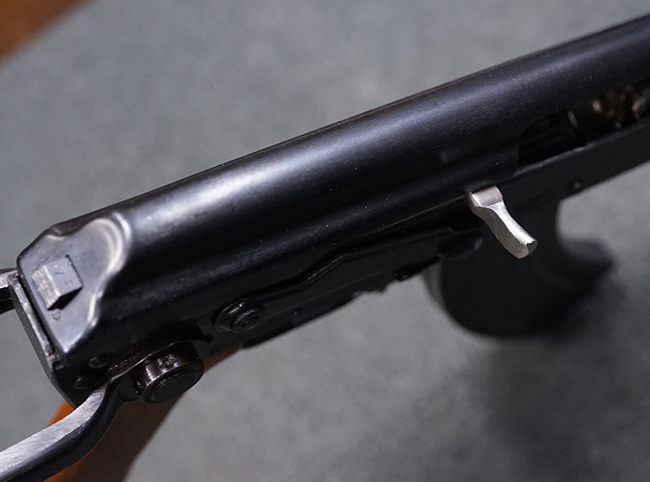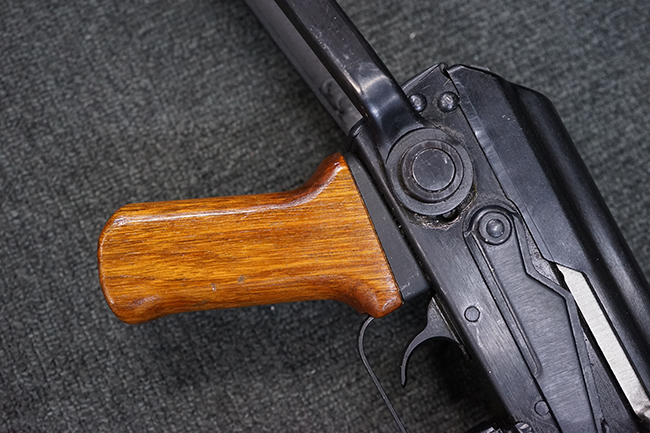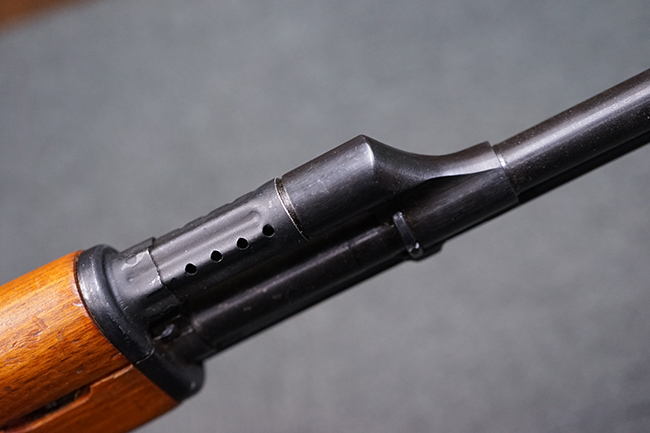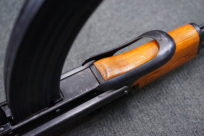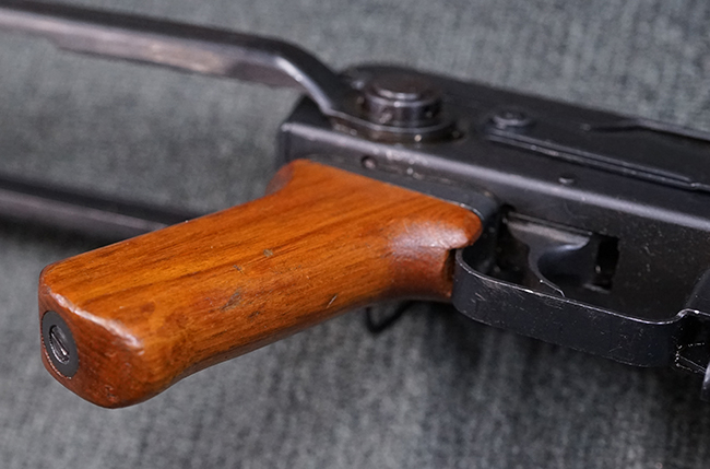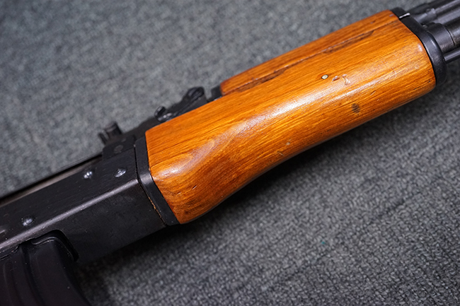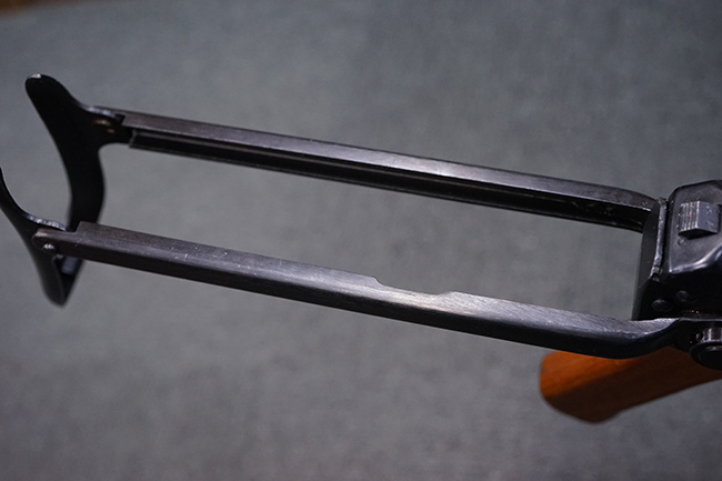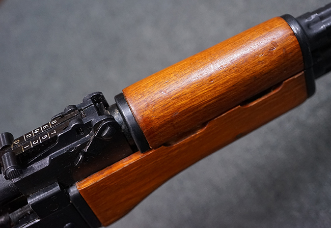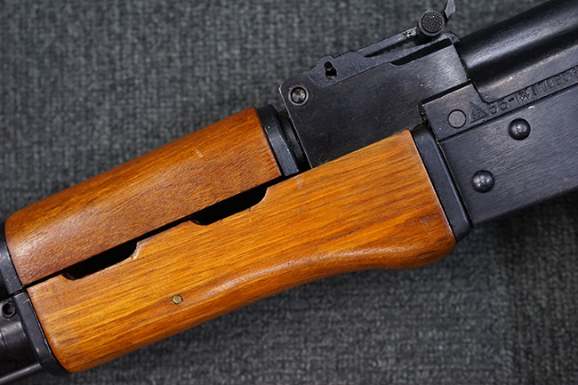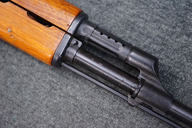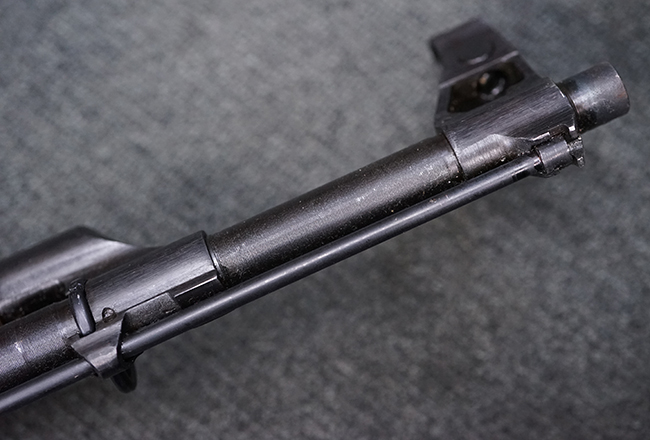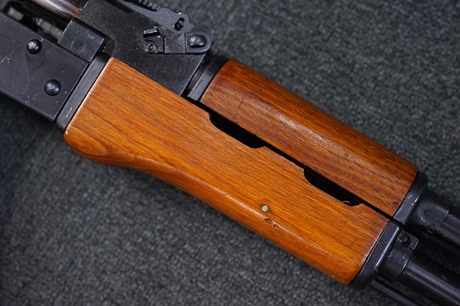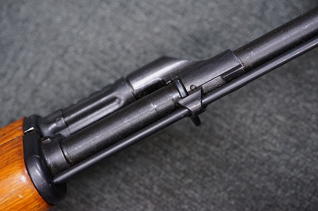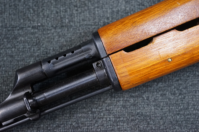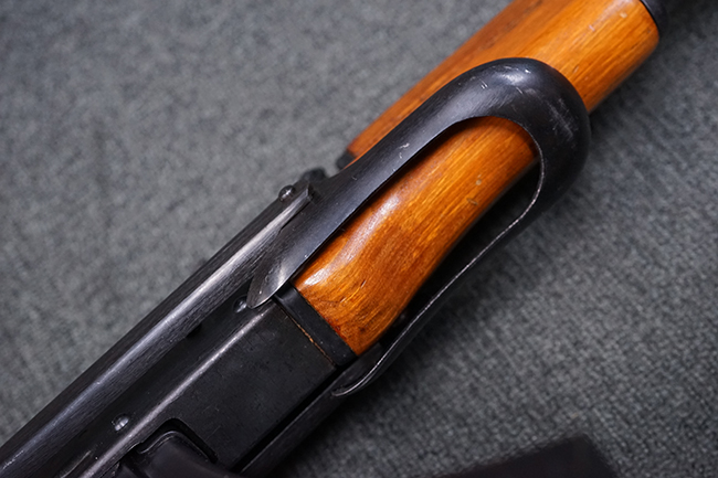 本品は全体的に使用感は少ない印象で、銃身やレシーバーと言った金属部は、多少の小傷が見られますが、目立った損傷は見られません。 アッパー/ロア・ハンドガードやグリップといった木部の色合いはほぼマッチしており、こちらも小さなやや打ち傷や線傷が見られる程度で良い状態を保っています。各部の取り付けもがたつきもなくしっかりとしています。 折り畳みストックについては機能的な問題は見られず、ロックもしっかりと掛かり、折り畳み時及び展開時の遊びも十分許容レベルです。