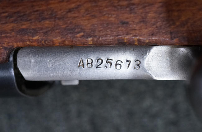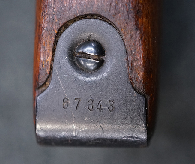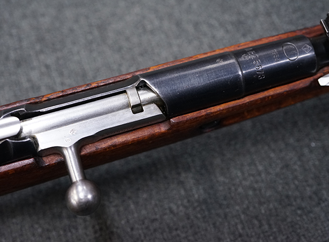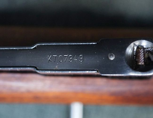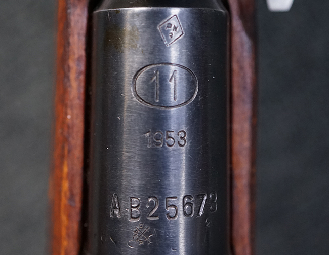 本品はポーランドで製造されたモシンナガン M1944 騎兵銃で、薬室上面にはシリアルNo.の他、楕円形の中に数字の11番が入ったポーランド ラドムのWaltera造兵廠を示す刻印や製造年を示す1953の刻印が入っています。