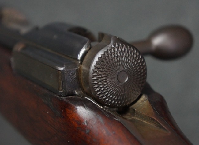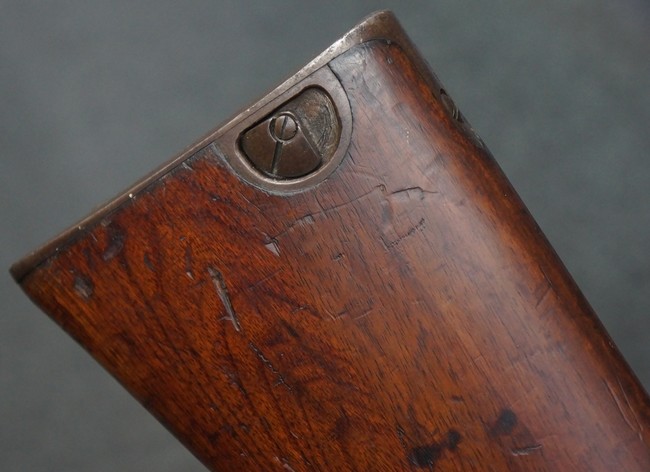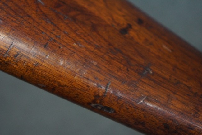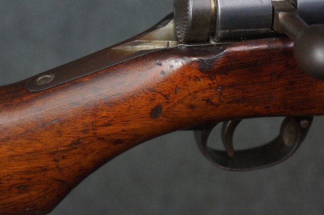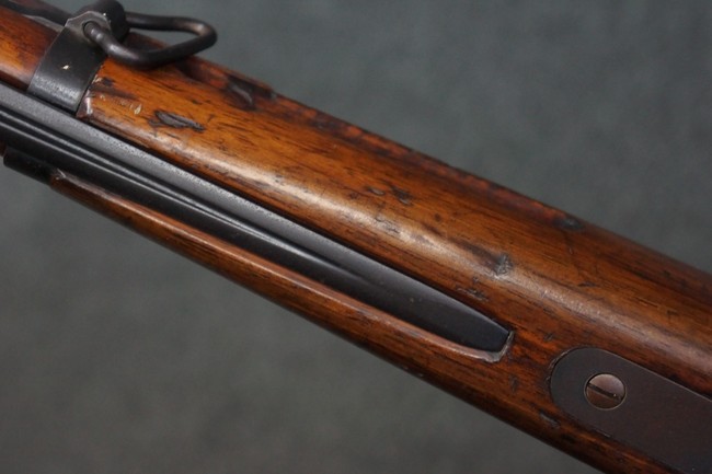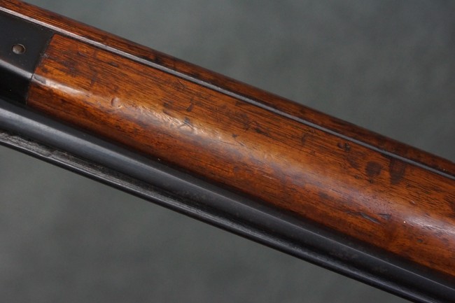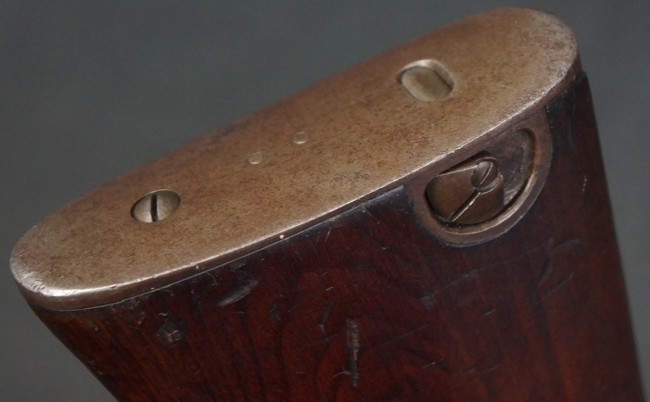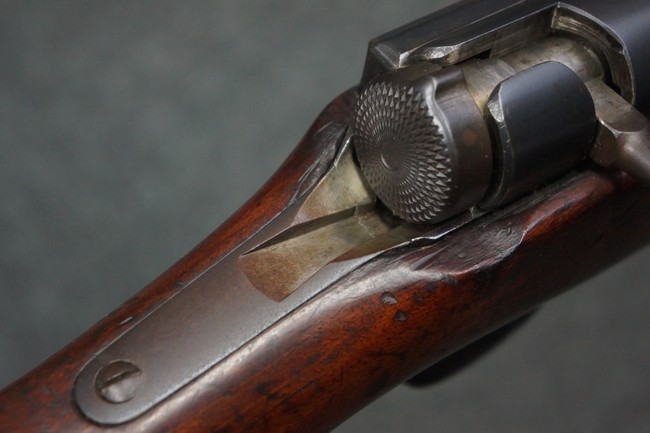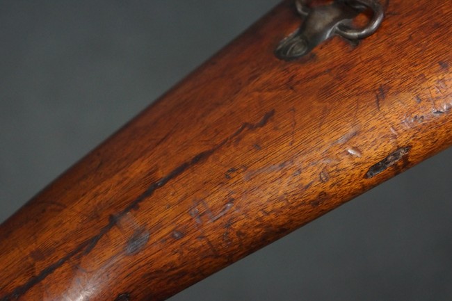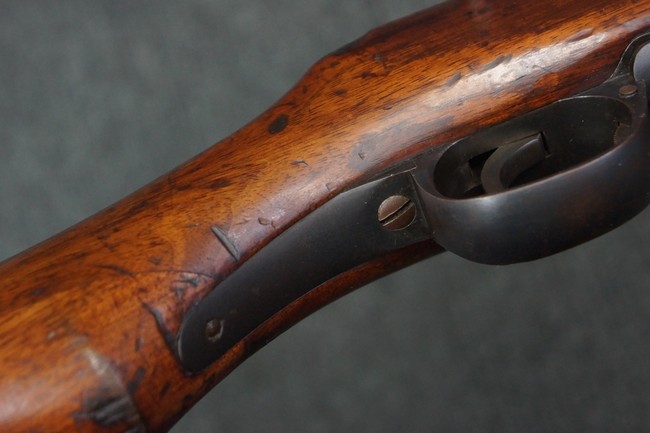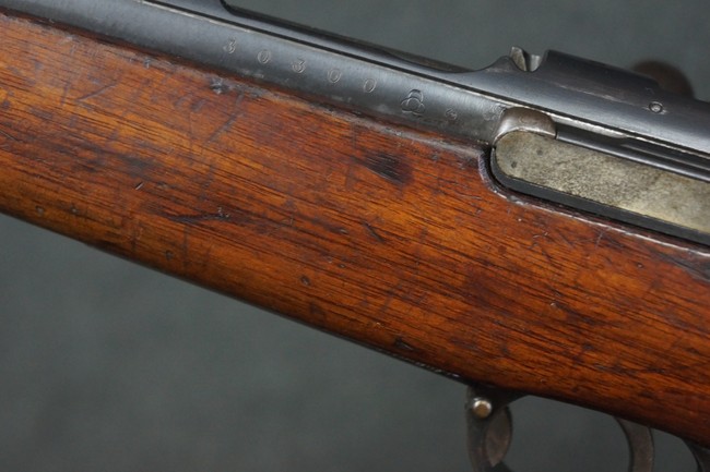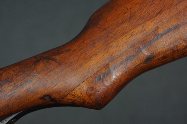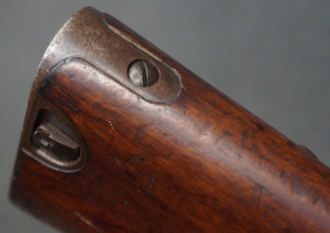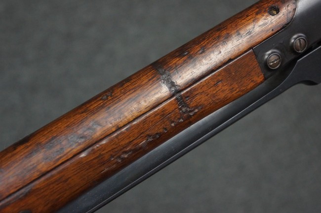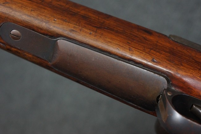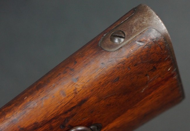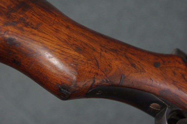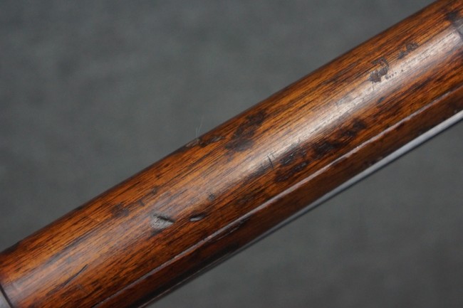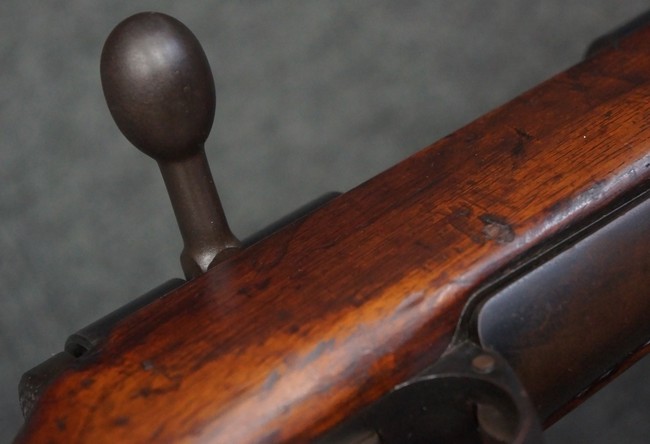 本品の銃身や機関部といった金属部は、やや経年による褪色や若干の時代錆及び表面錆痕が見受けられるものの、目立った欠損等は見受けられず、オリジナルの仕上げも比較的残っています。 木製銃床及び木被については、やや打ち傷や線傷が見られるものの、目立った破損等は見られず、オリジナルの色合いが比較的良好に保たれています。 木被上面には木目に沿って一部ヘアライン・クラックが見受けられますが、あまり気にならないレベルのもので、強度的にもしっかりとした状態が保たれています。 旧軍小銃特有の銃床上下の継ぎ目については、僅かな隙間は見られるものの、十分許容レベルで現状目立ったがたつきは見受けられません。 床尾板については、やや時代錆や表面錆痕、一部仕上げが落ちて金属の地肌が表れている箇所は見られますが、現状目立った朽ち込みや変形等は見られず、さく杖収納部の蓋の開閉機能についても正常です。 照尺の起倒・調整や弾倉底板の着脱については問題なく行う事が可能で、弾倉内の弾受 (フォロワー) 及び発条は入っています。 尚、安全子は固定されています。 銃剣は基部で溶接固定されており、起剣は出来なくなっています。
